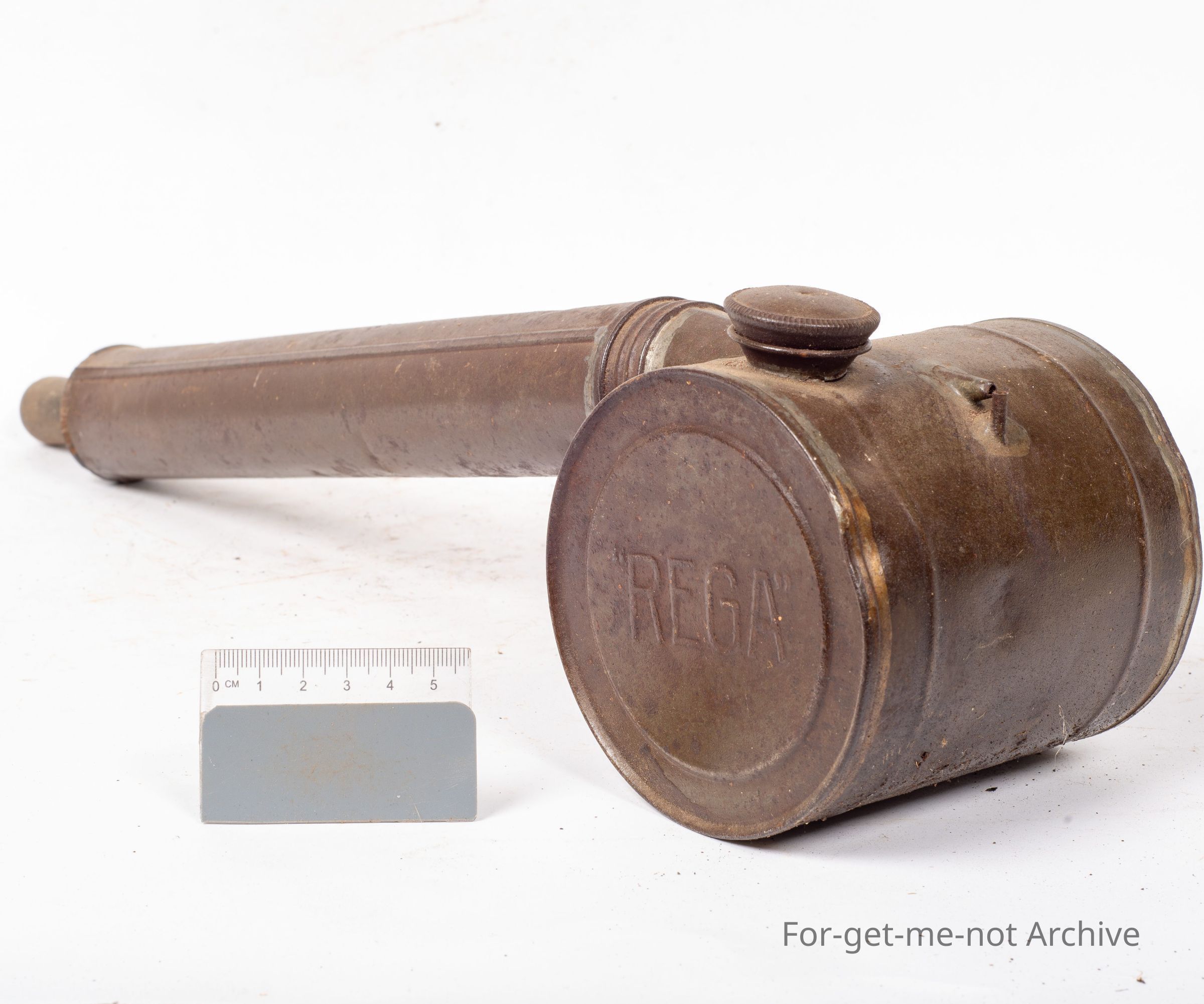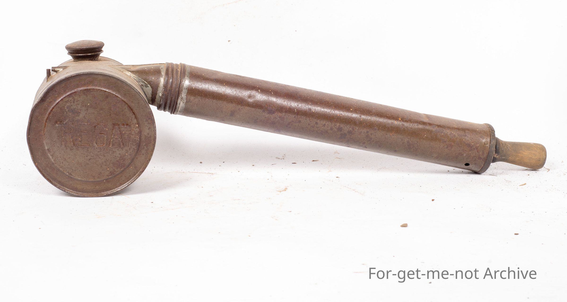 This is a production piece from Rega in Tasmania. This is, definitely manufactured but all made out of tin. Quite possibly through the depression era when there was not much money to purchase anything. So this is made as cheaply as possible. Still in working condition, pumper and everything goes, This is a large scale fly sprayer.Collection