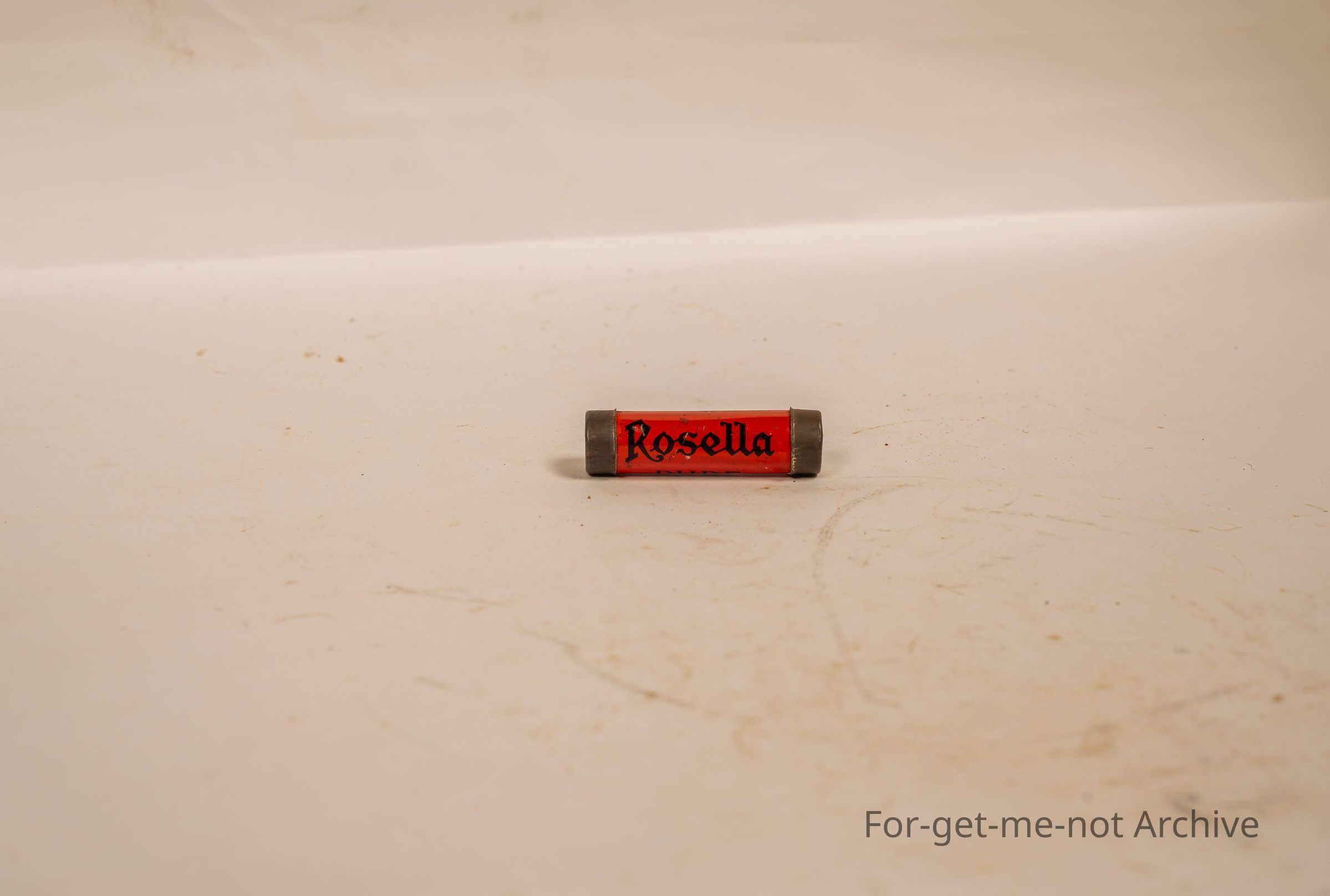 A small tin cylinder with a hole through either end, and a slot, from Rosella, which is typical showbag piece from very early days, pre 1920, had a string where you twirl it round over your head and the sound was very similar to a bird. A real showbag piece, value in very good conditionCollection