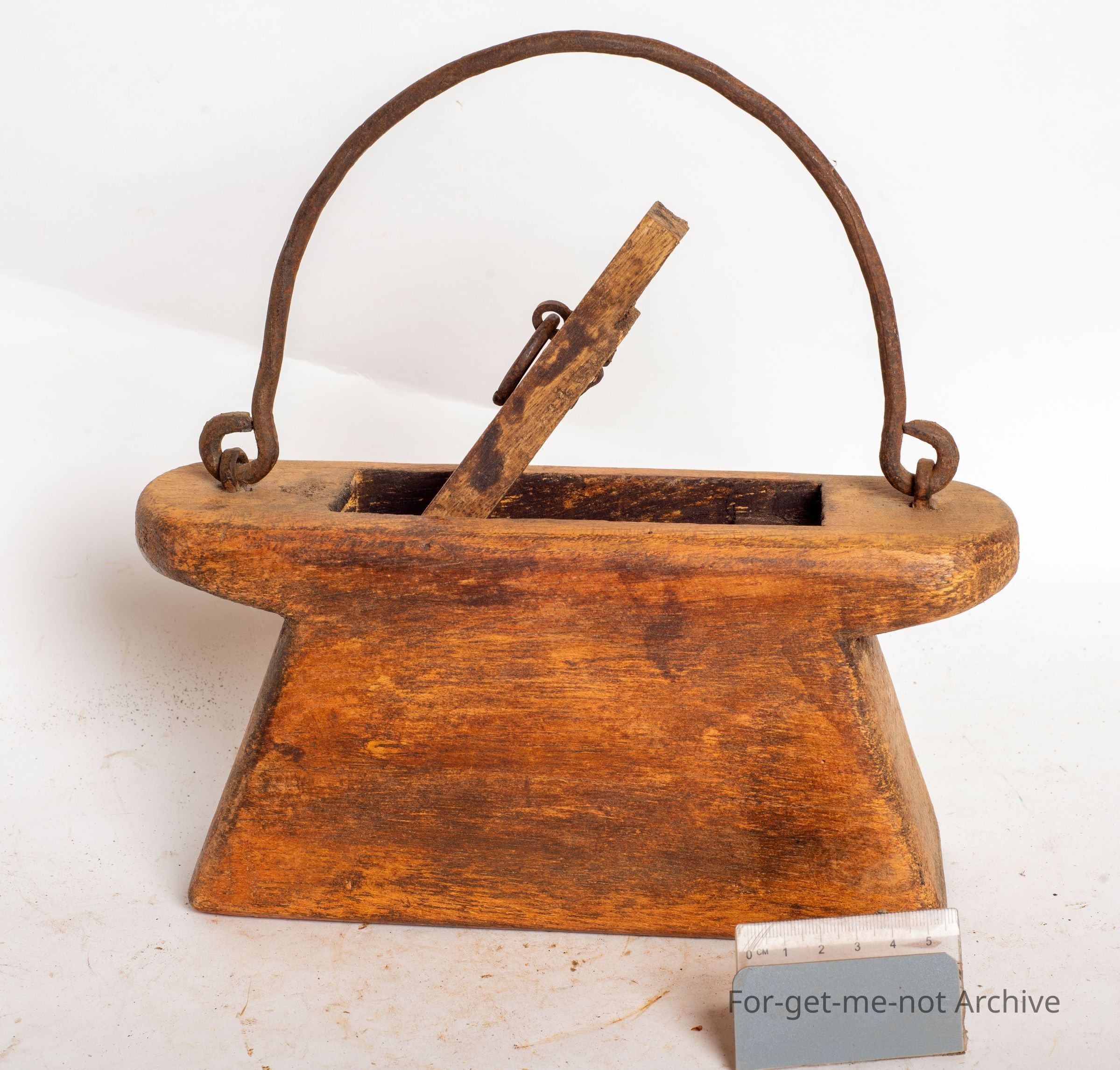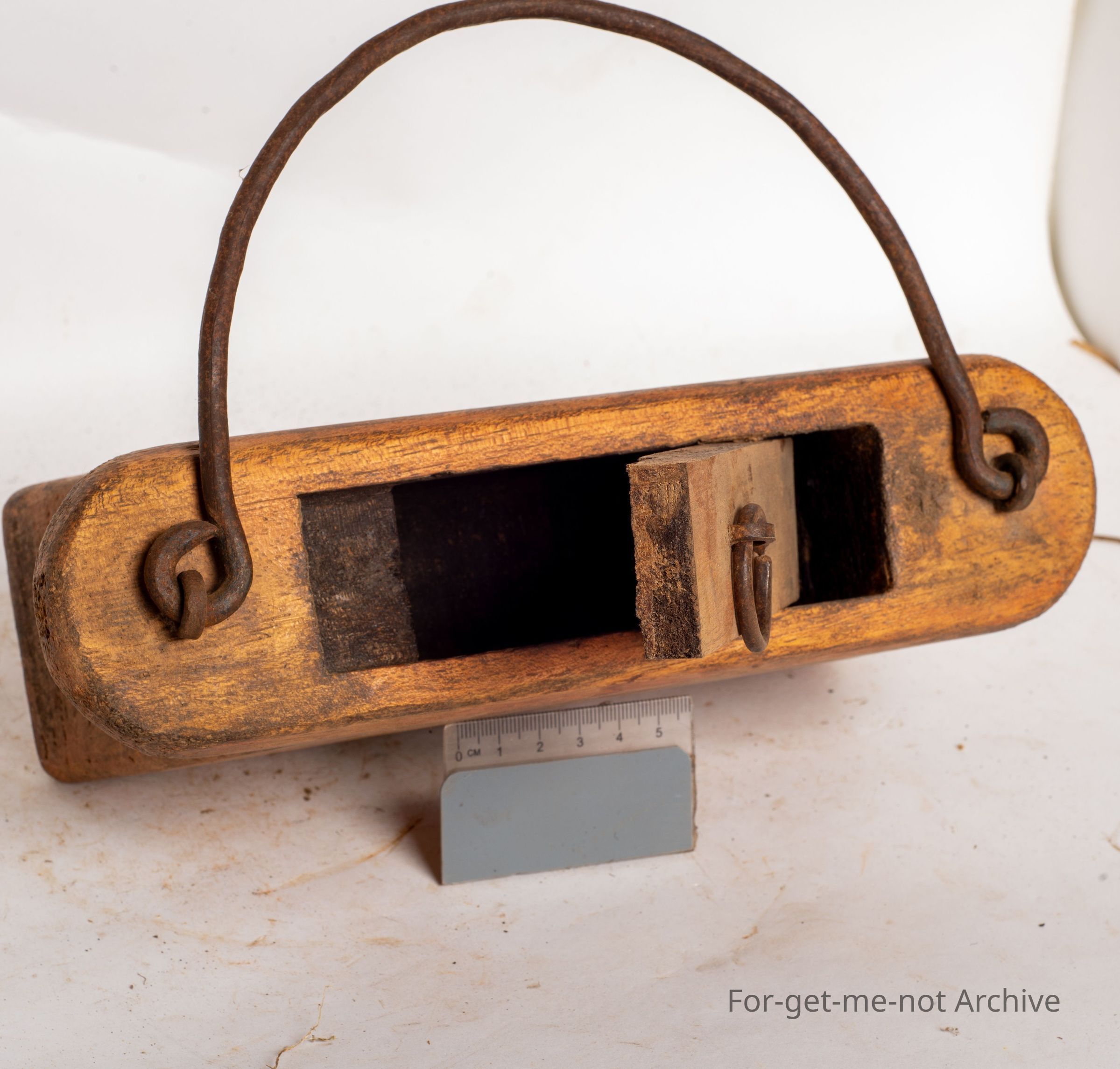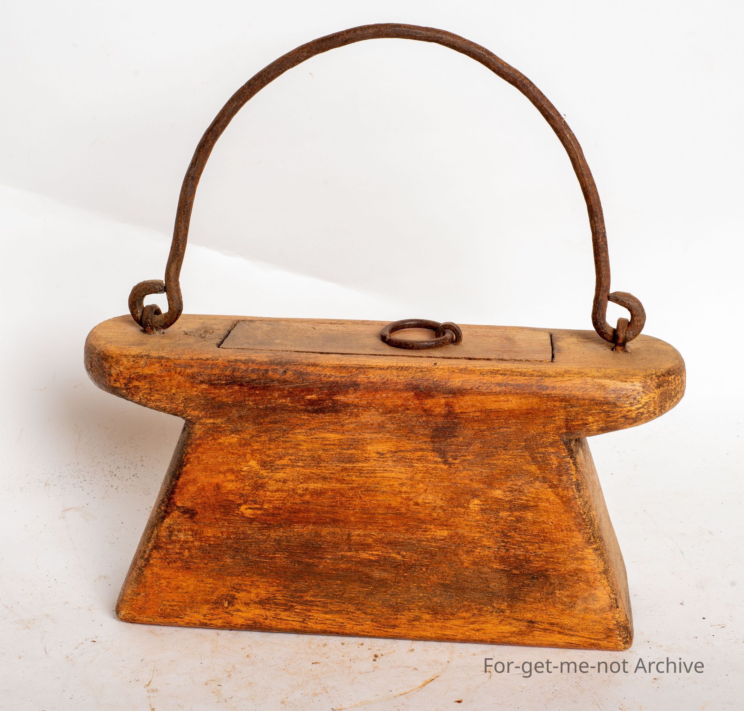 This is, a wooden tinderbox. These boxes held a piece of high carbon steel, a piece of flint and a section of carbonised cotton. By striking the steel onto the flint, sparks were produced which caught in the cotton and that was the means of early fire lighting. These things were always wrapped up in heavy, canvas oil proof, waterproof materials so that the contents never got wet. Extremely hard to find. In good conditionCollection