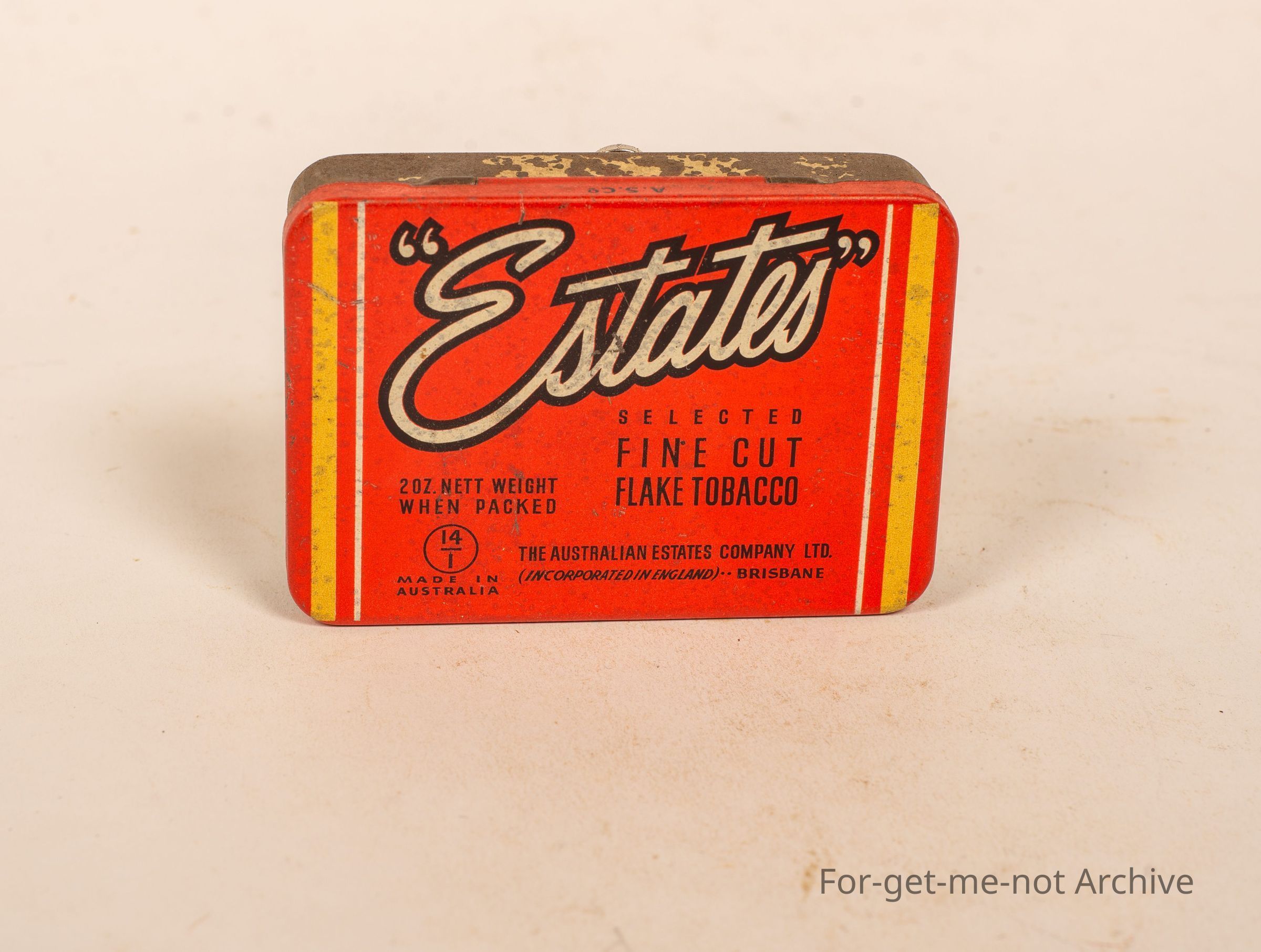 Estates Fine Cut Tobacco, 2 ounce tin, made in Australia. This is a Queensland tin from Brisbane,