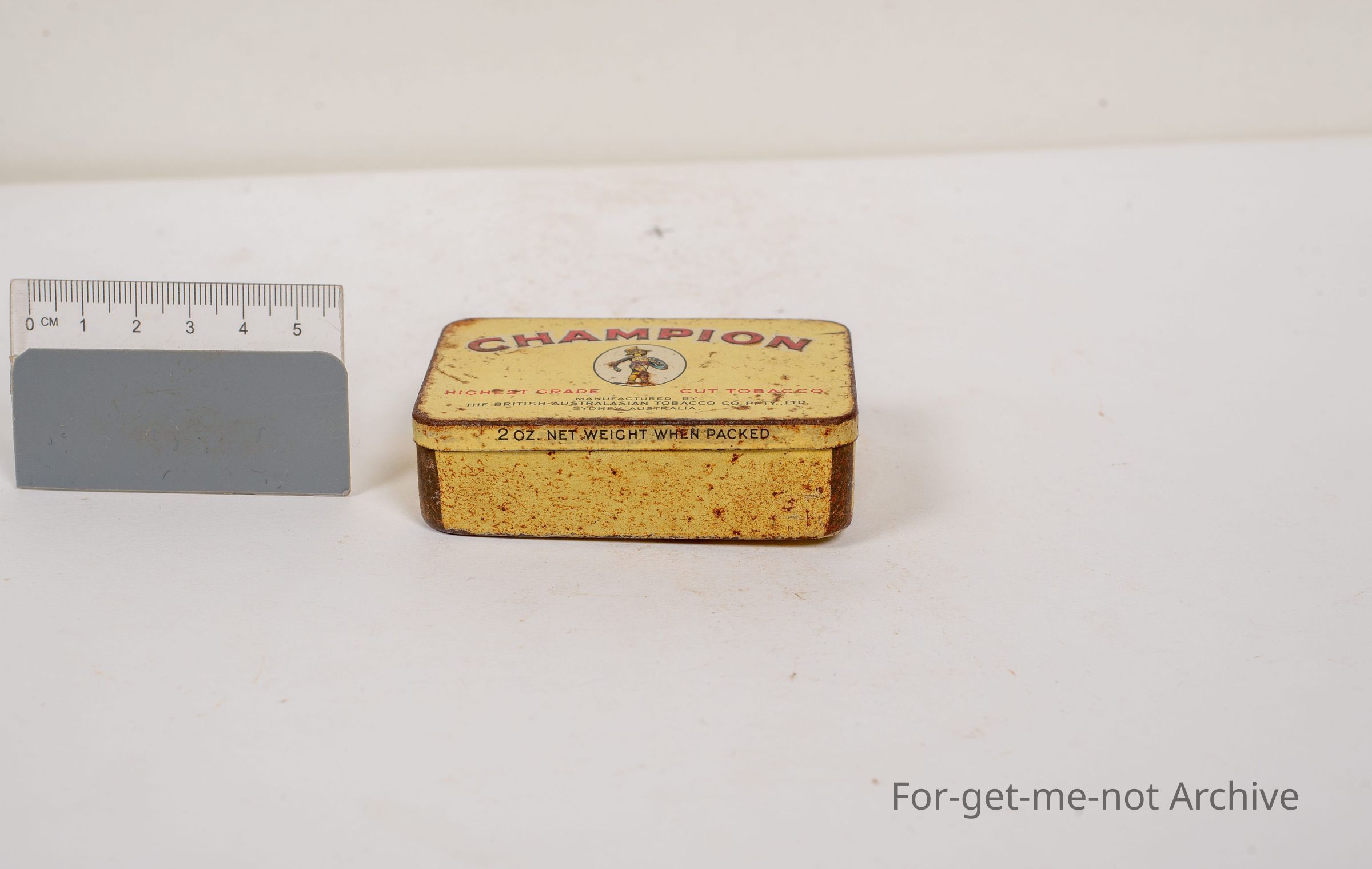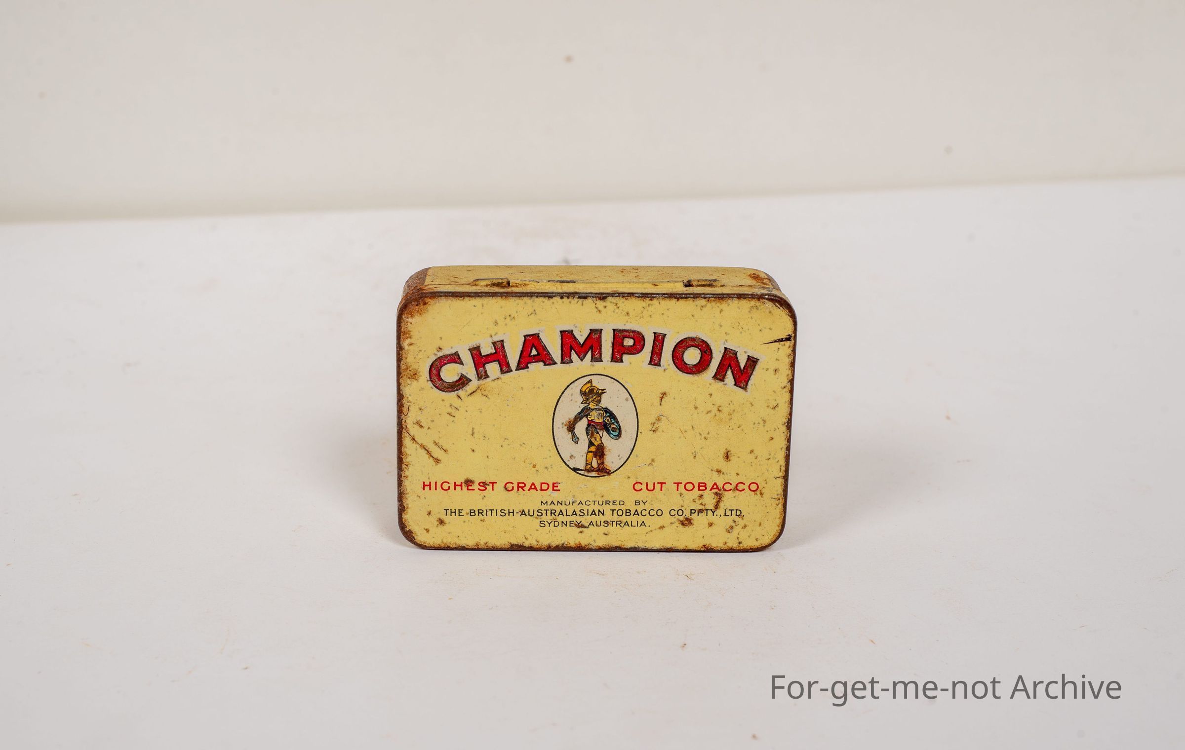 A tin of champion tobacco, Not a particularly old one. 2 ounce net, British Australasian,