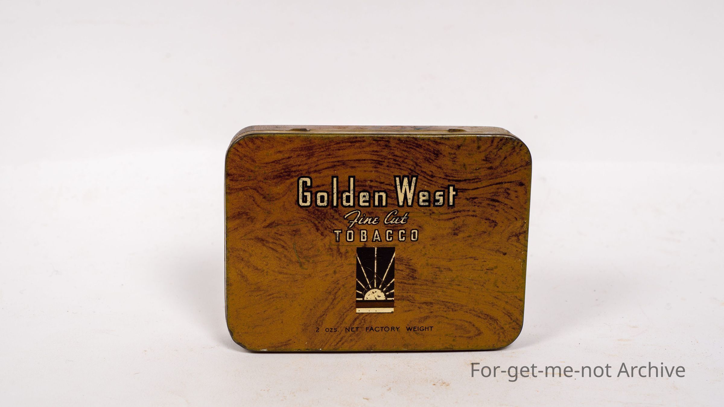 Tin of Golden West Fine Cut Tobacco, 2 ounce capacity, packed by Michael 80s Perth.