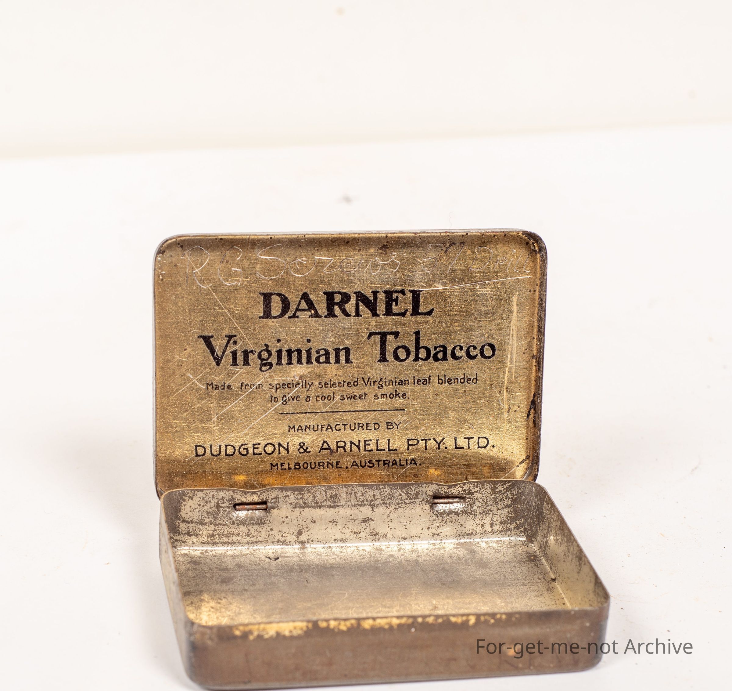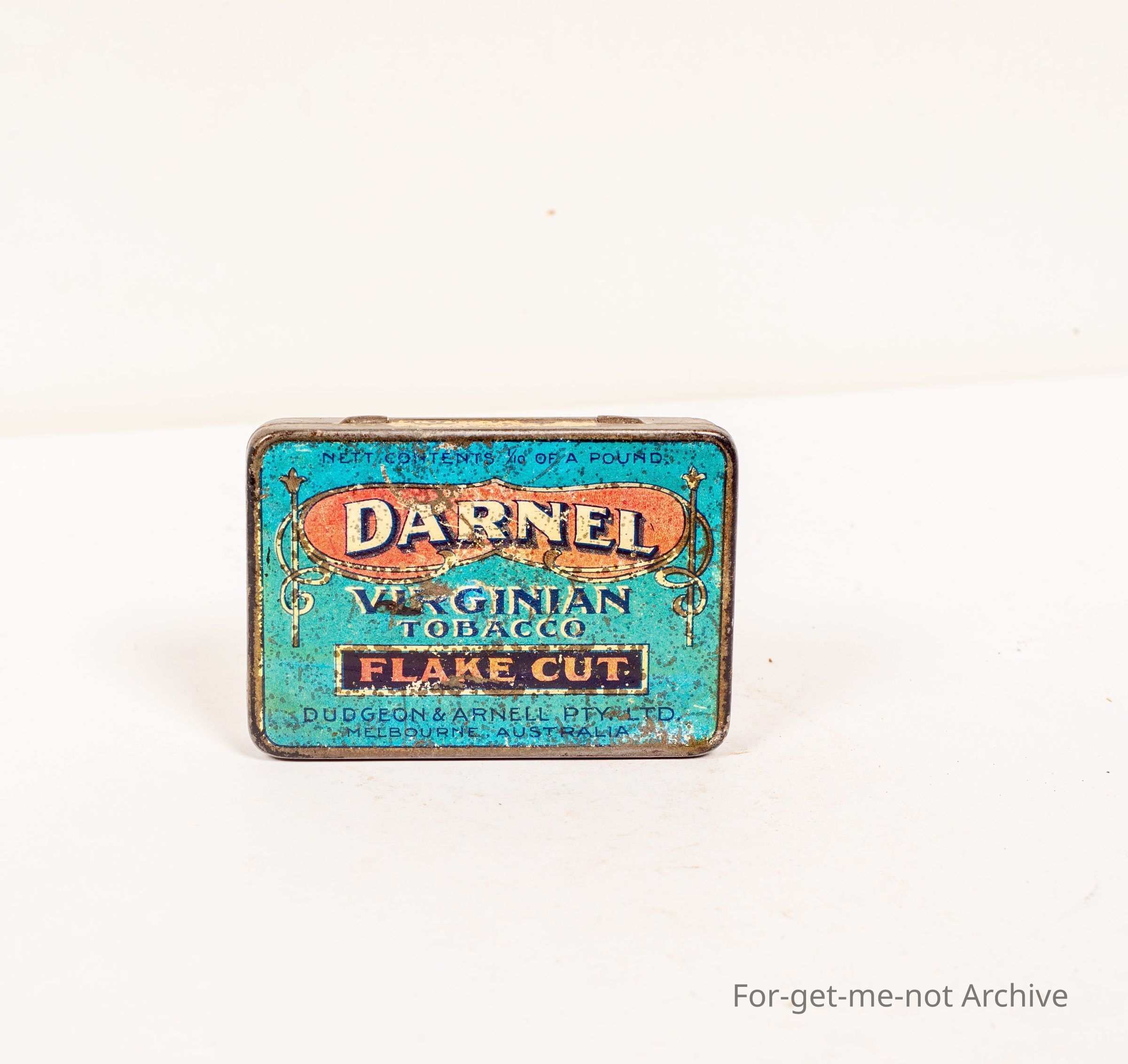 Lovely early Australian tin tobacco called Darnell Virginia Tobacco Flake Cut, Darnell and Dungeon and Darnell Arnel Melbourne. One net contents, 1 tenth of a pound.
