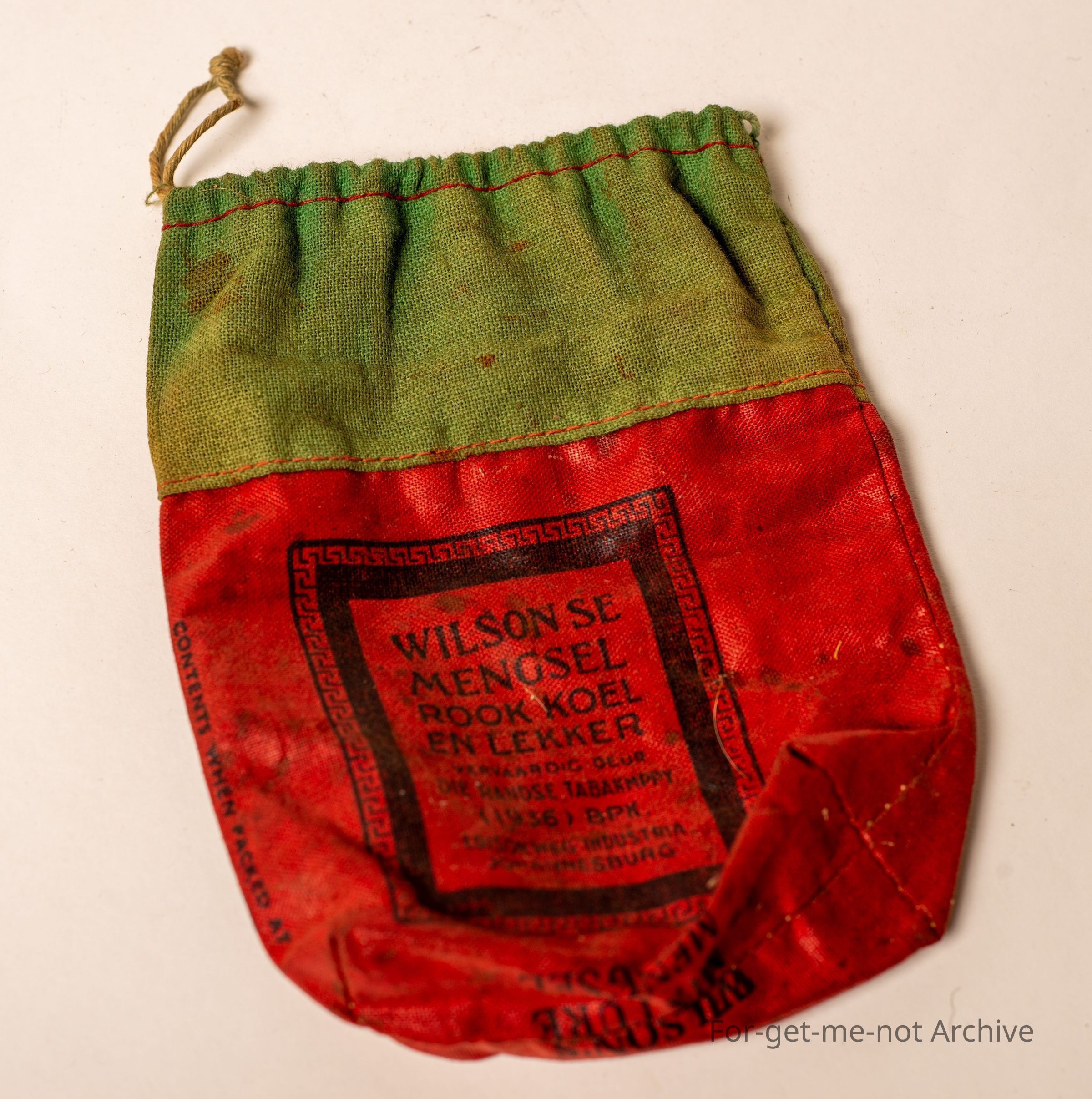 A colour coded tobacco bag for Wilson Mixture. This is a South African bag from Johannesburg, packed 1936, so in remarkable order.
