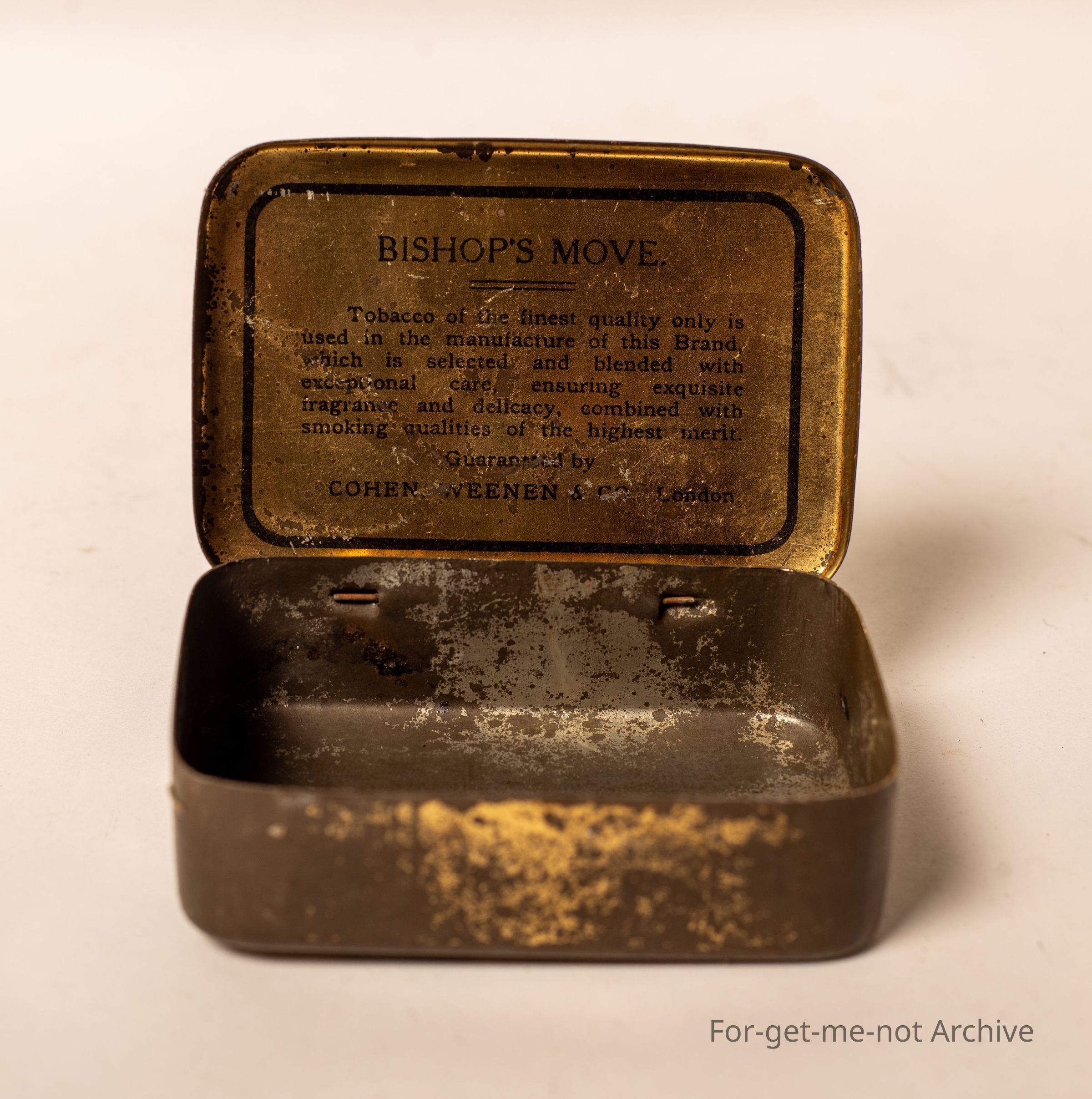 Bishop's Move Tobacco, unique blend of rare quality. 2 ounce tin, I would say.