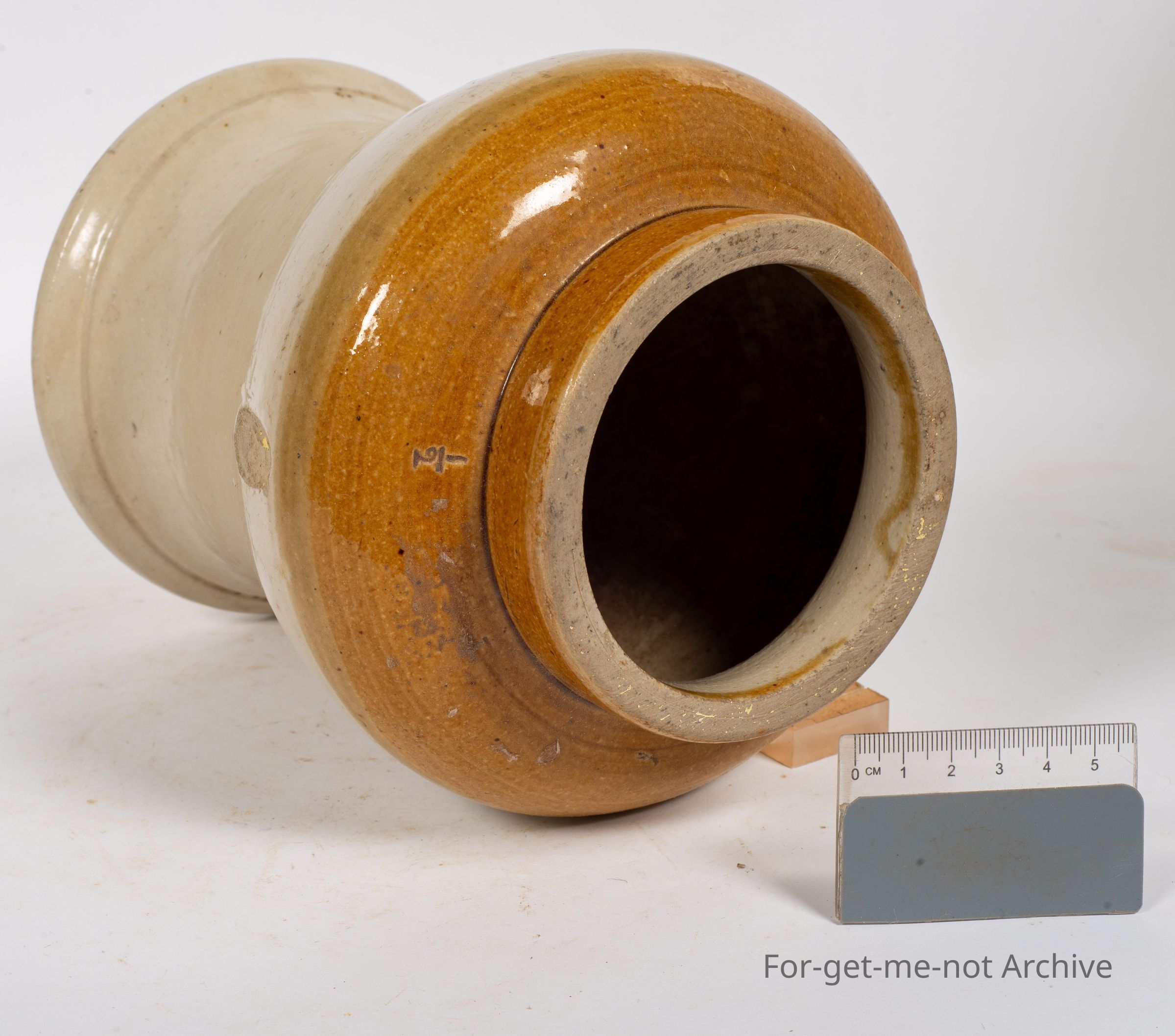 Stoneware jar. This time, in the classical, tobacco jar shape, flared base. This would be This one's in very good order. Half gallon NARC on it, it has a kiln kiss on one side but other than that, it's flawless. A nice example.Collection