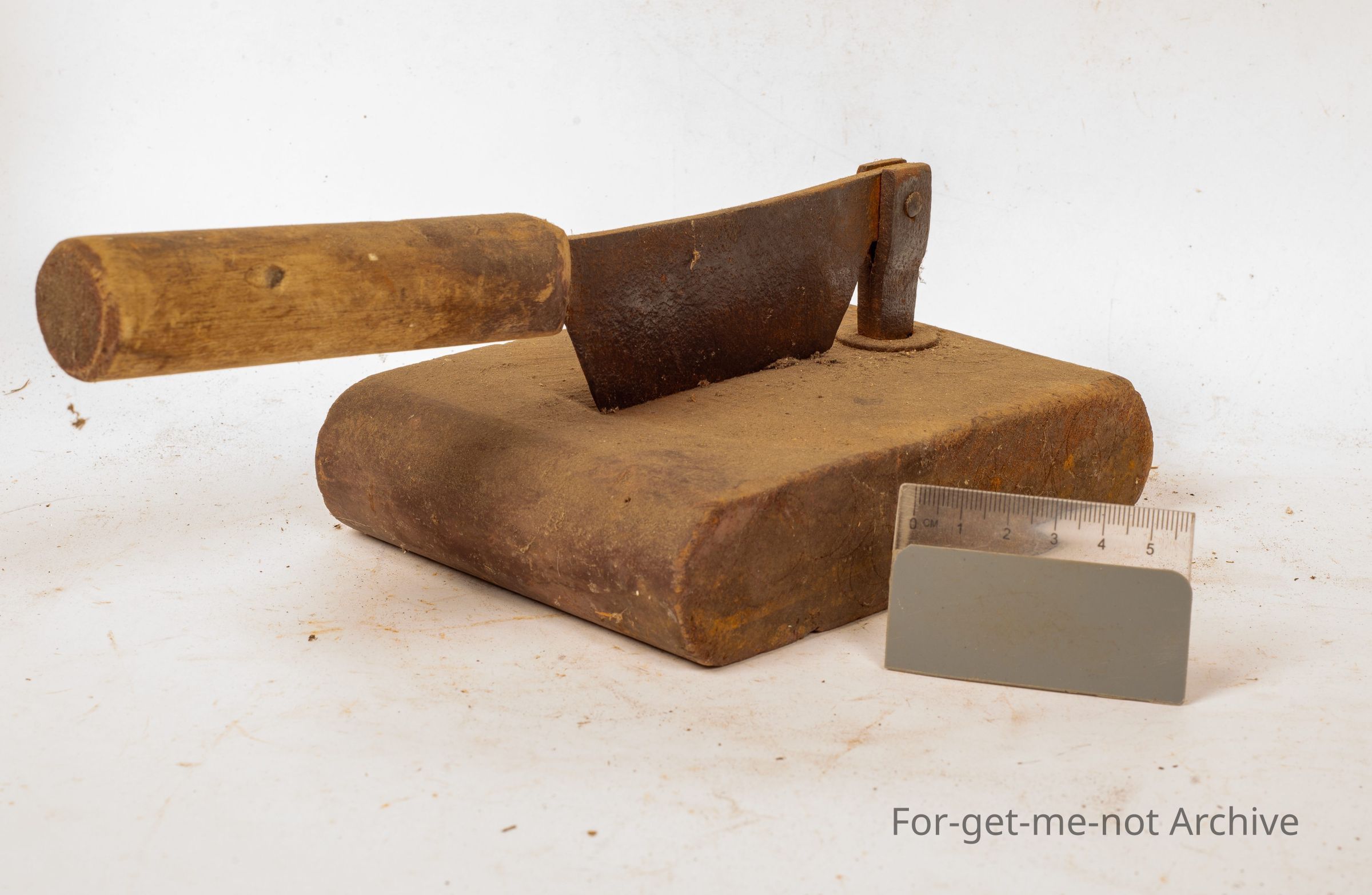 This piece is an improvised homemade tobacco plug cutter, piece of heavy wood with a handled piece of steel that pivots and cuts the plug into, a fineness for either cigarettes or pipes. A lovely piece from the depression.Collection