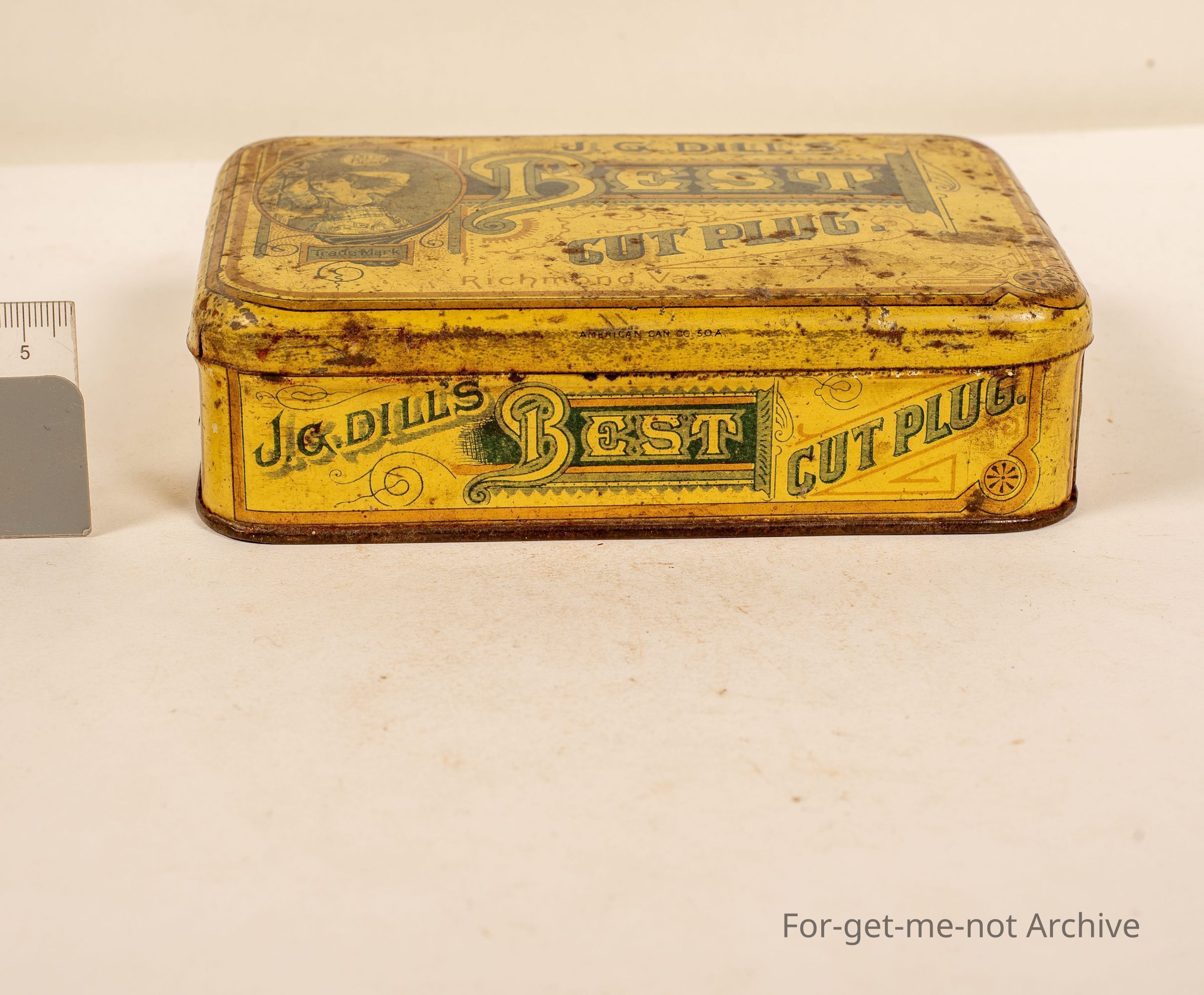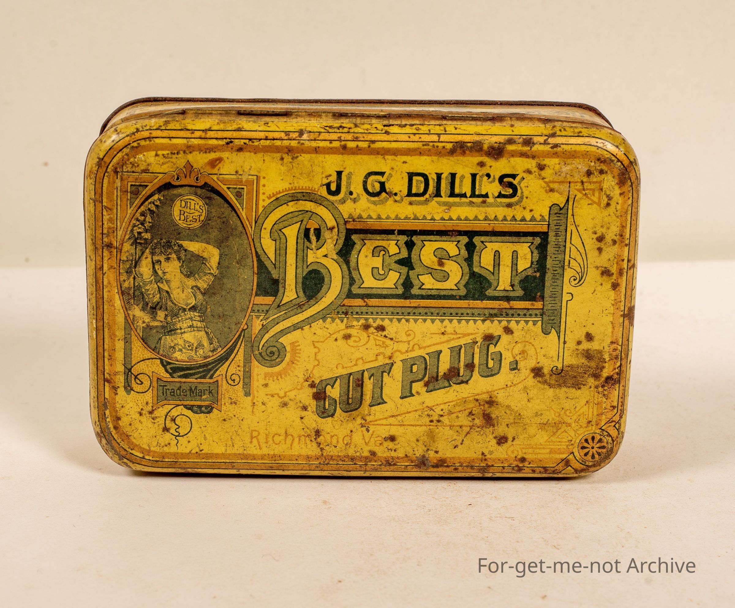 JD Dills best cut plug Richmond, Graphic of a Girl, Very American Tin, with some contents