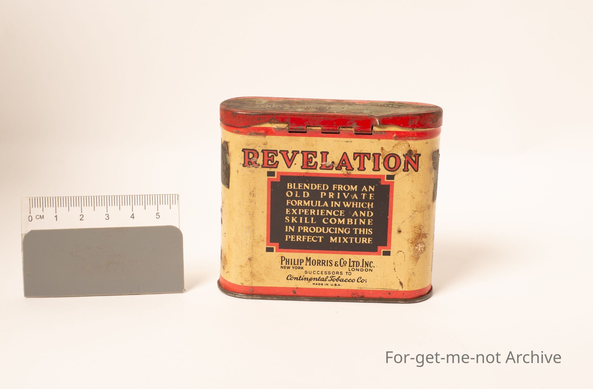 Pocket tin, Revelation Smoking Mix. Perfect Pipe Tobacco, Philip Morris London.