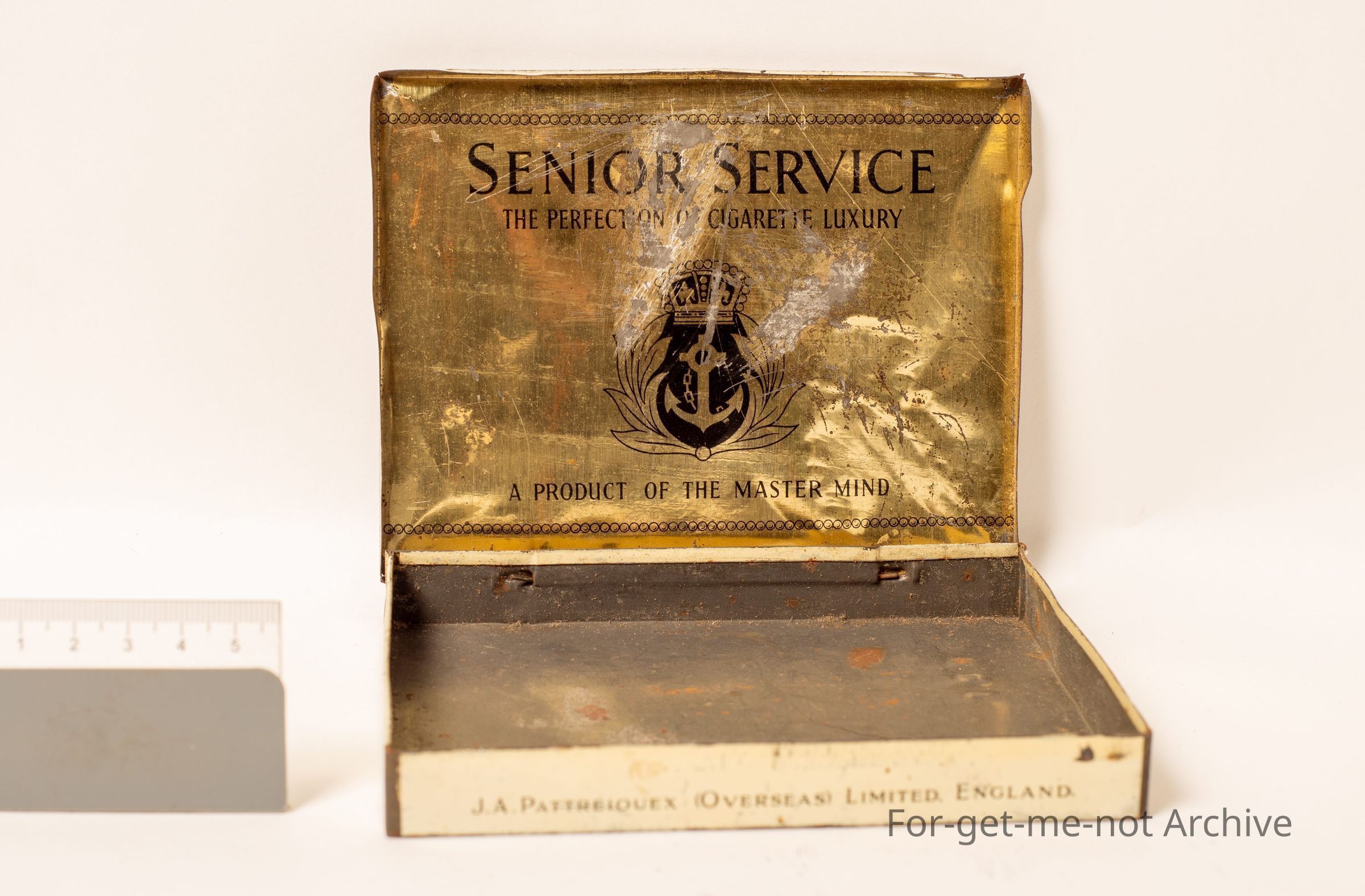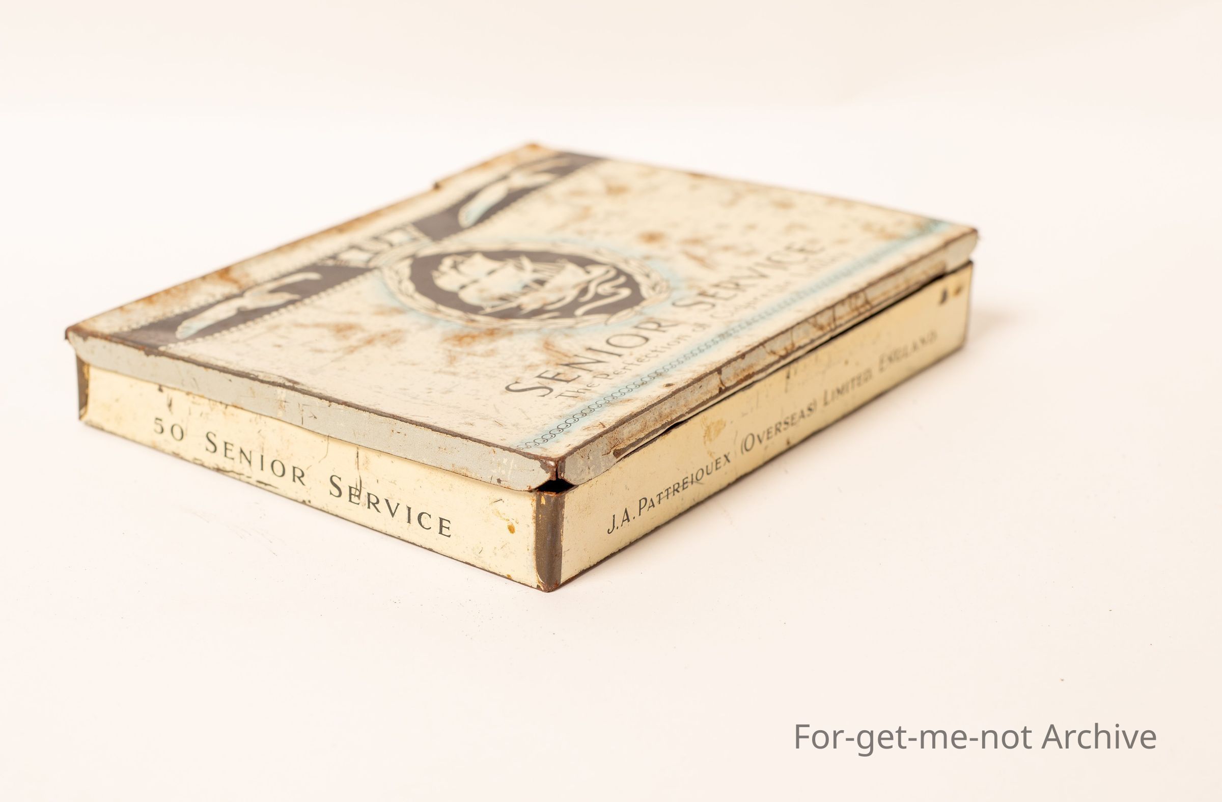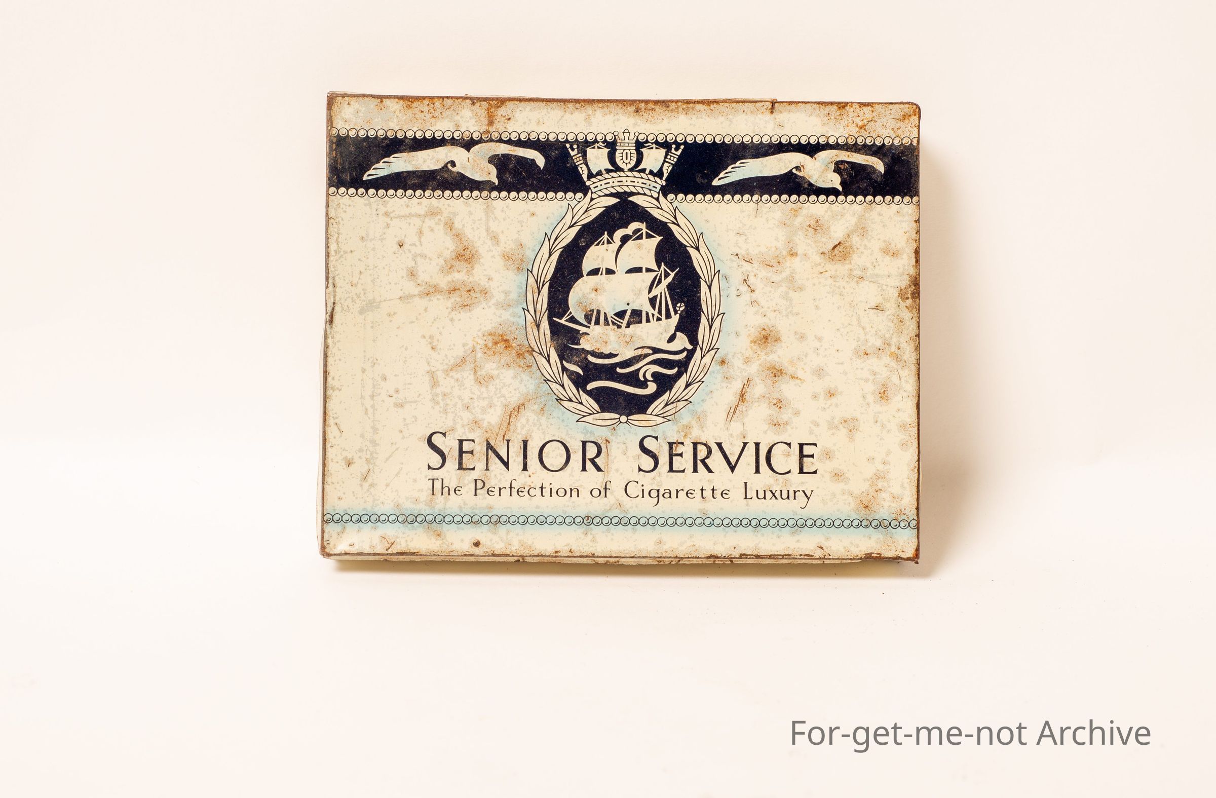 A 50 cigarette tin called Senior Service with a sailing ship and 2 seagulls,