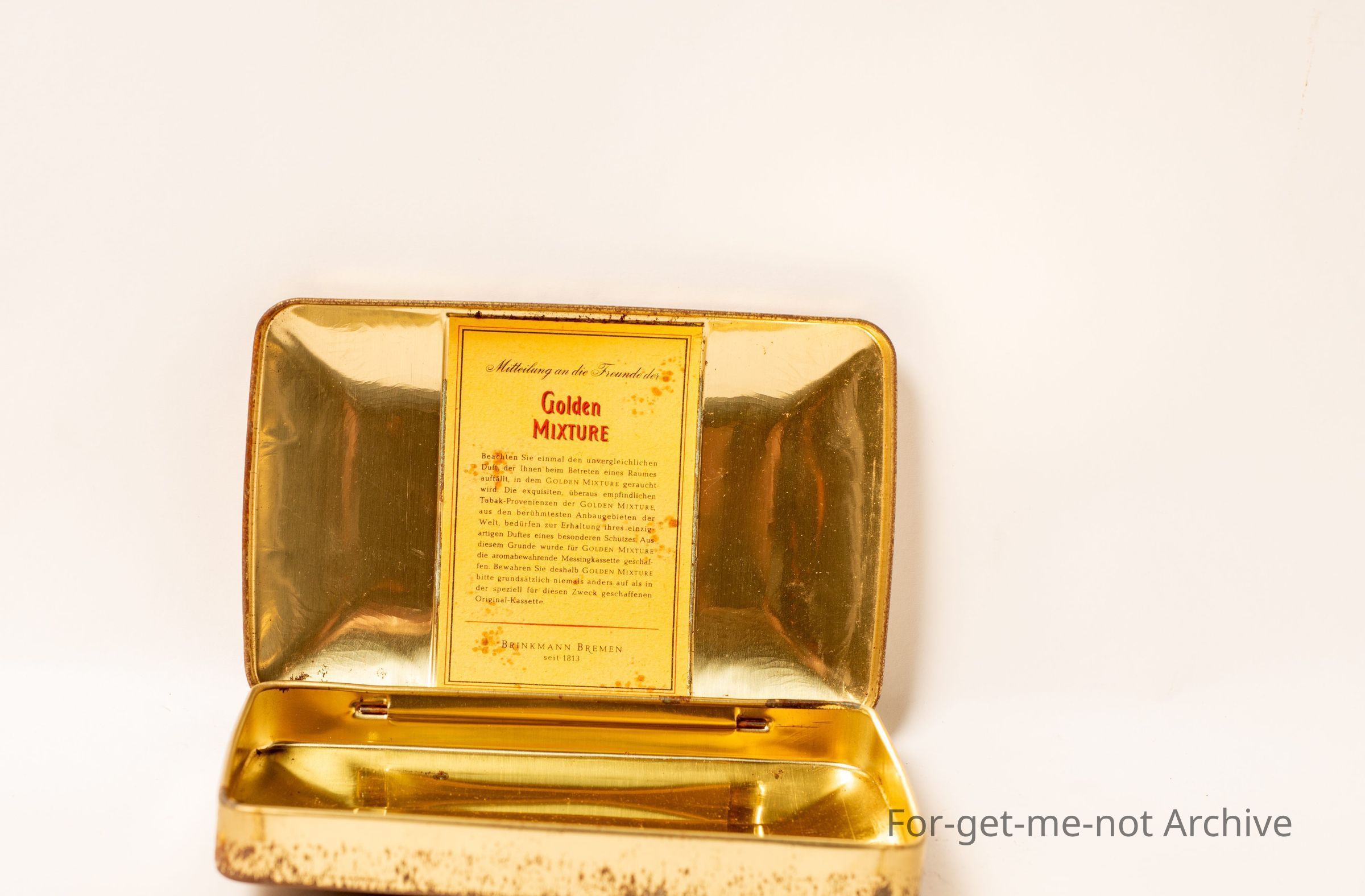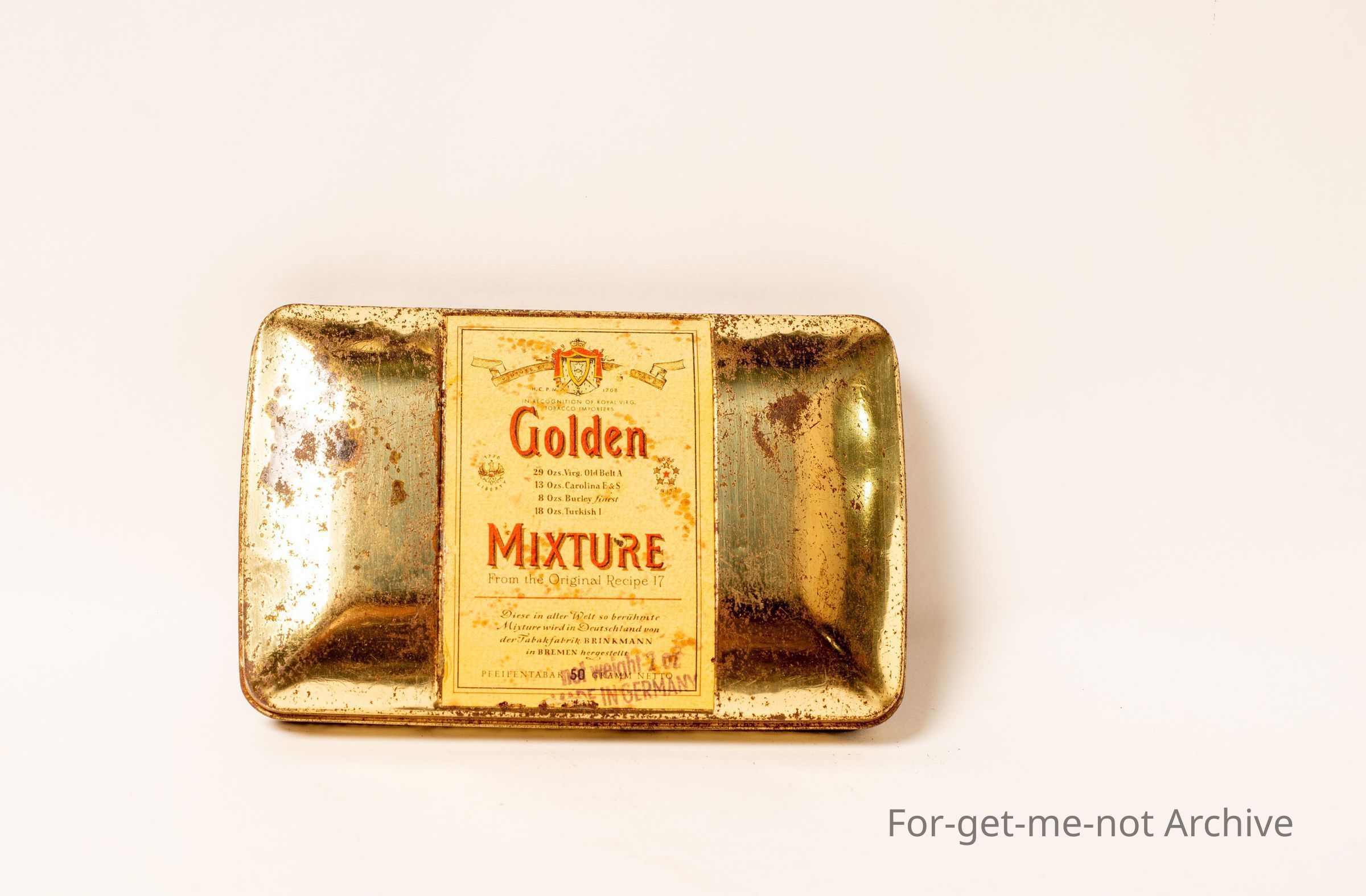 Golden mixture, tobacco. Net weight of 50gms, This is a German tin. Not in bad order.