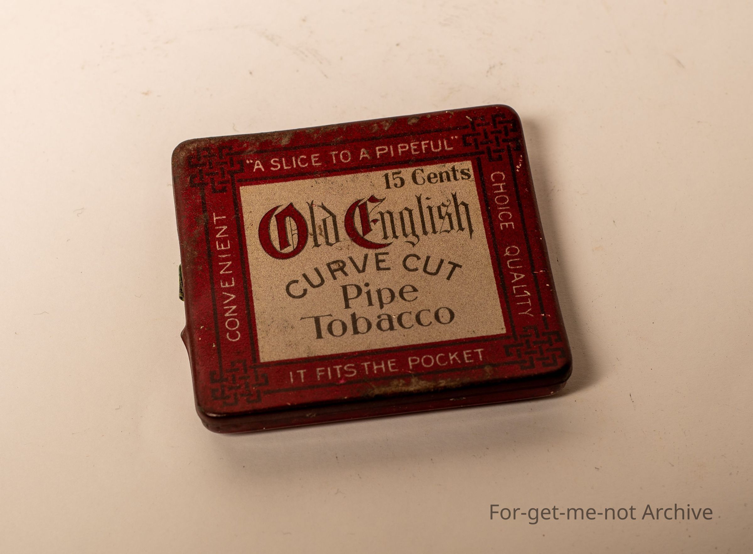 A pocket tin, curved, old English, curve cut pipe tobacco. Fits the pocket. A slice to a pipe full. Packaged by the American Tobacco Company.