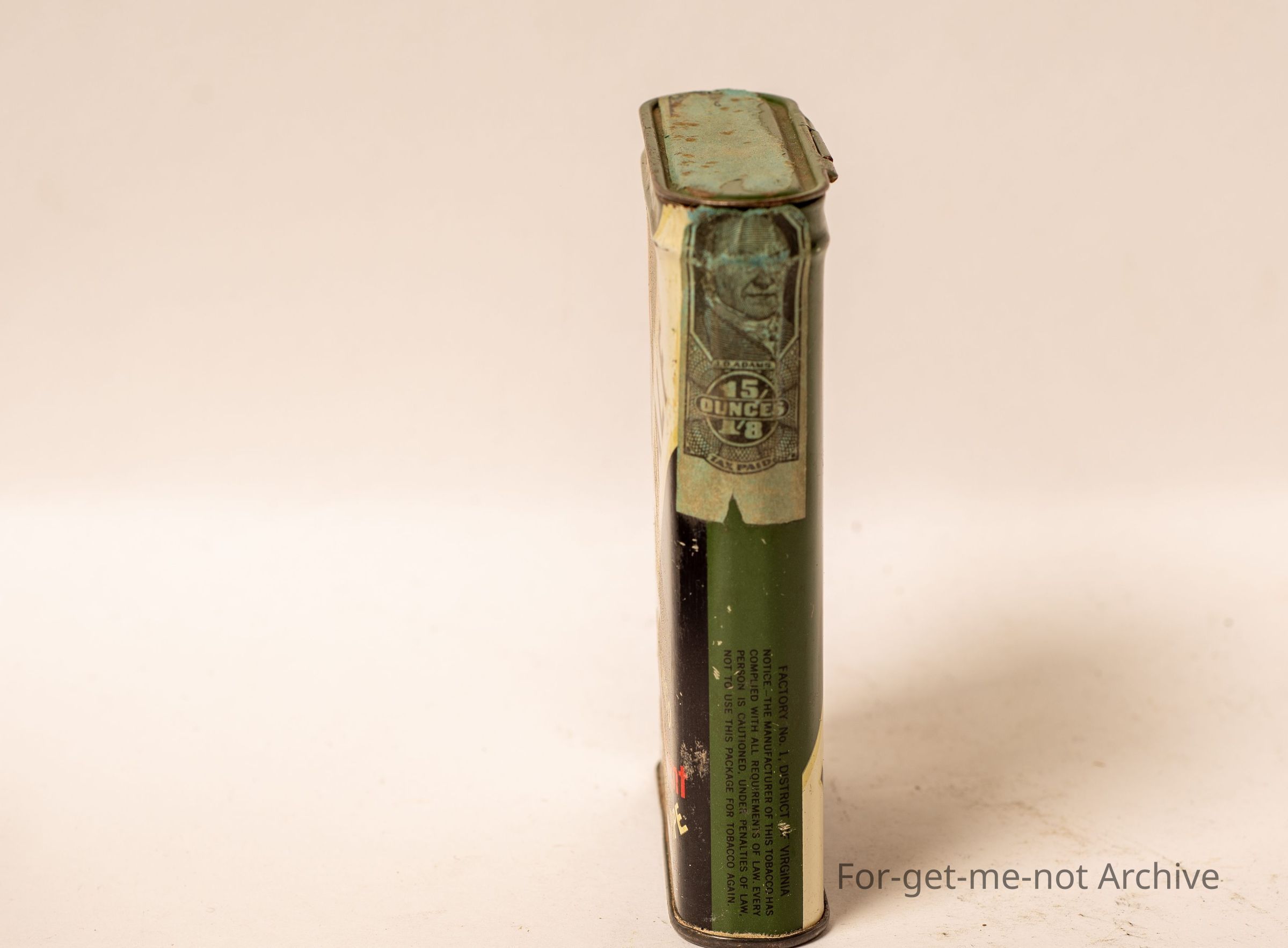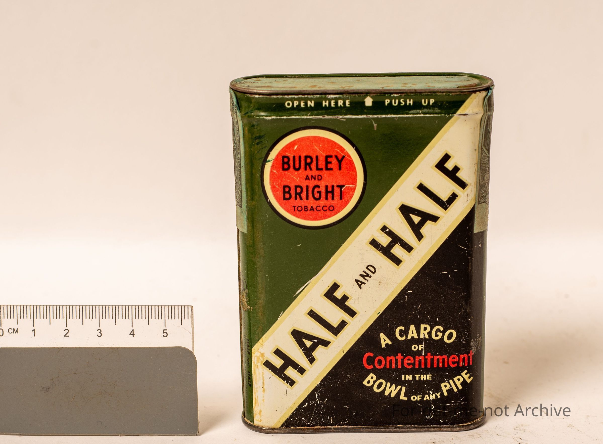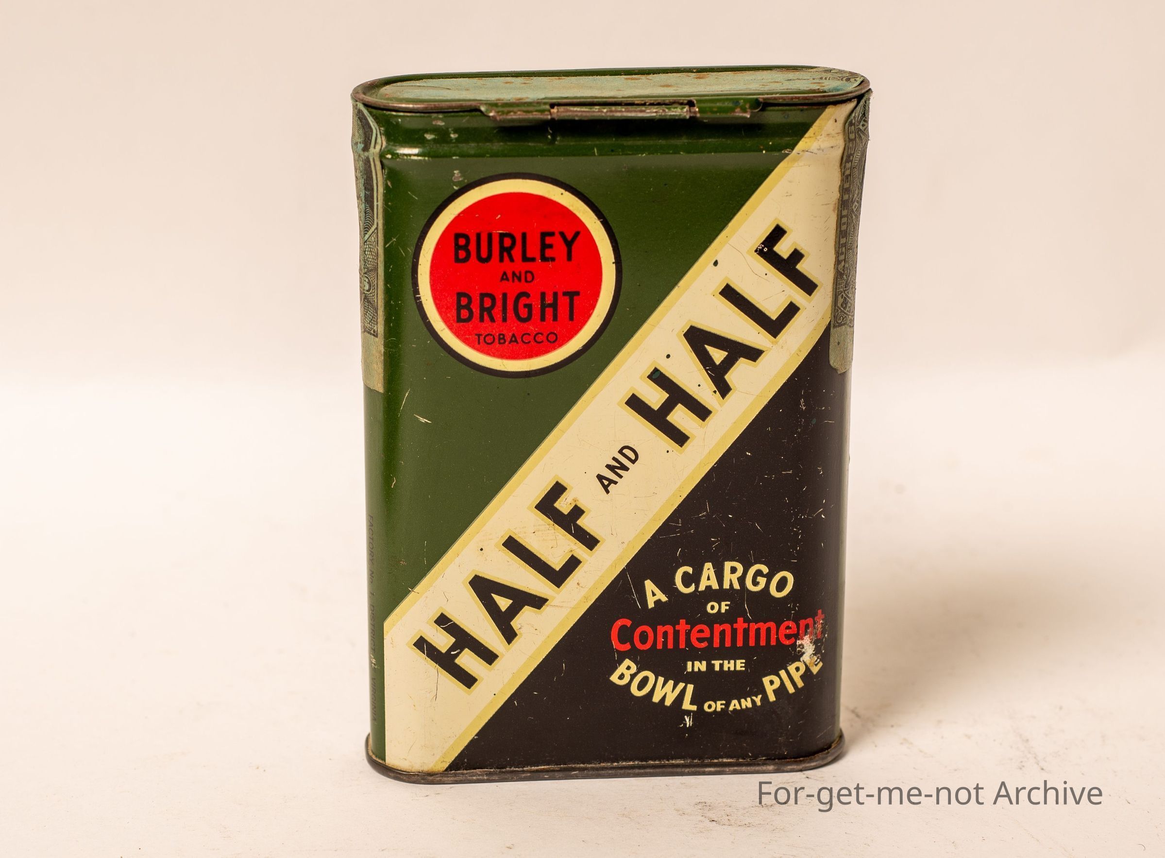 Burley and Bright Tobacco, "Half and Half". Once again, a pocket tin. A cargo of contentment in the bowl of any pipe. Very good order. American Tin,