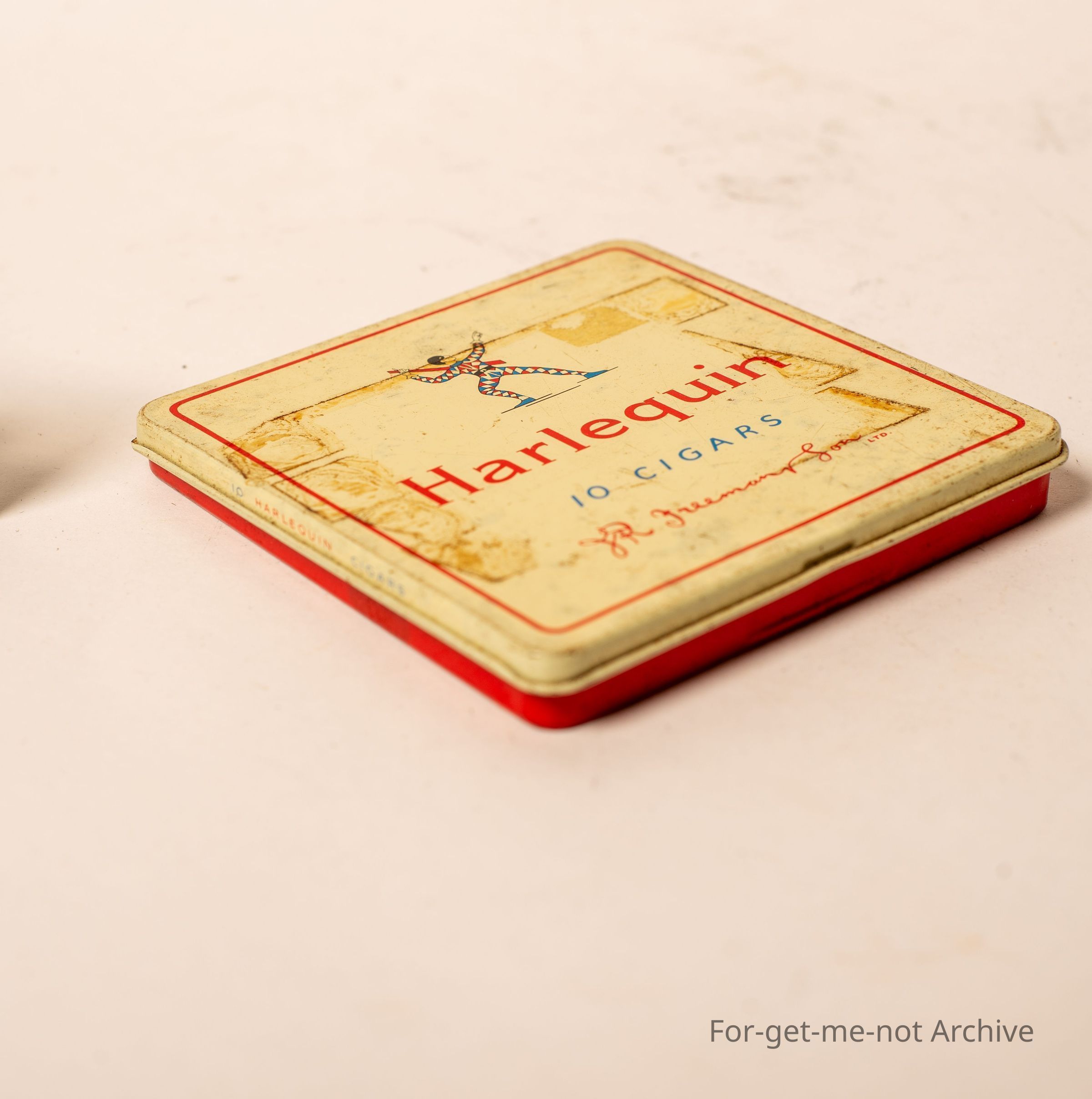 Not a very old tin, but called the Harlequin 10 cigars. Made in the United Kingdom.