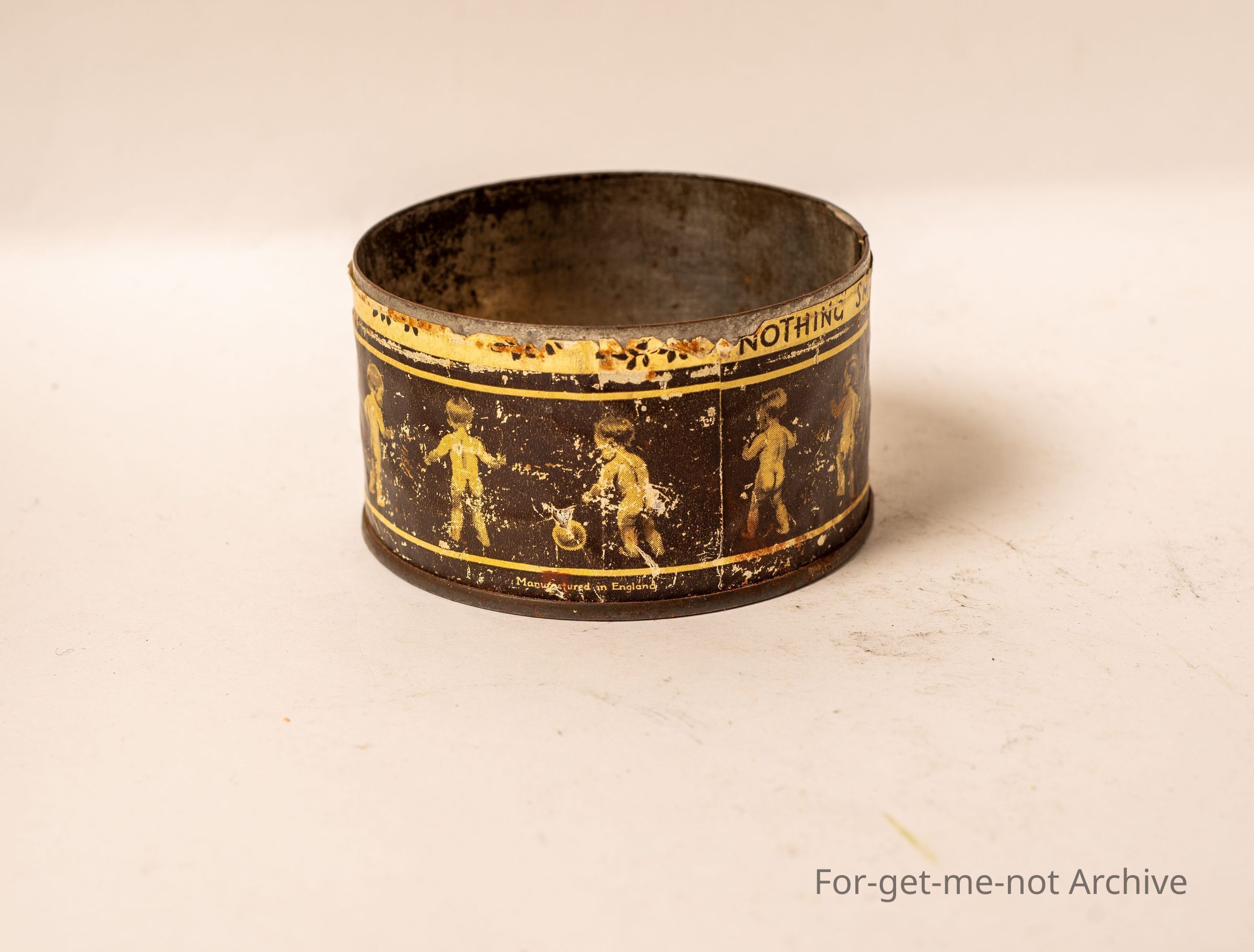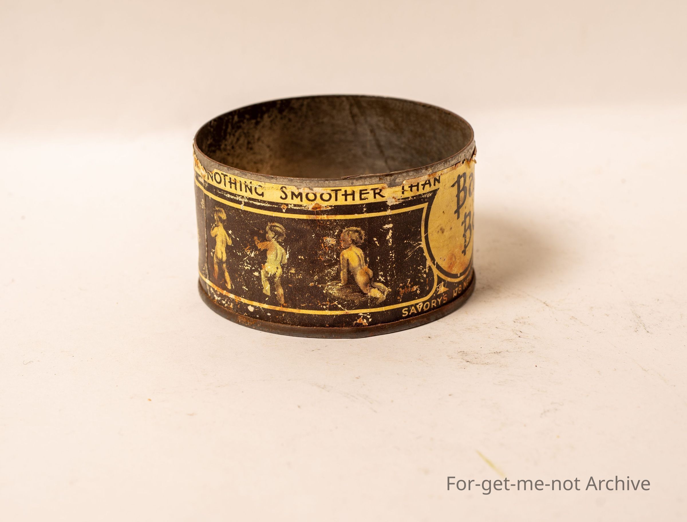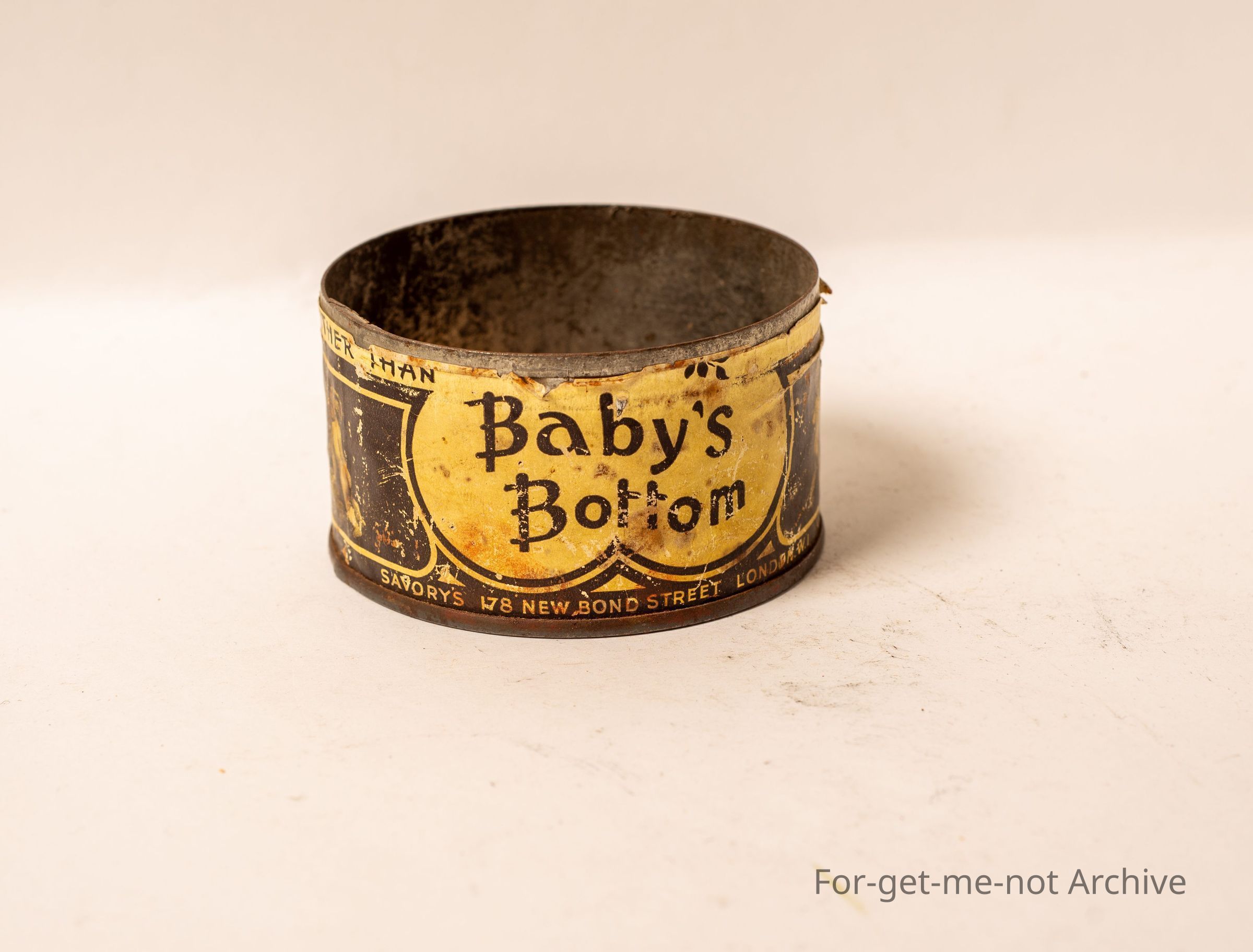 This is baby's bottom, cigarettes or maybe tobacco. Features of naked babies, Not in very good order. From Bond Street London.