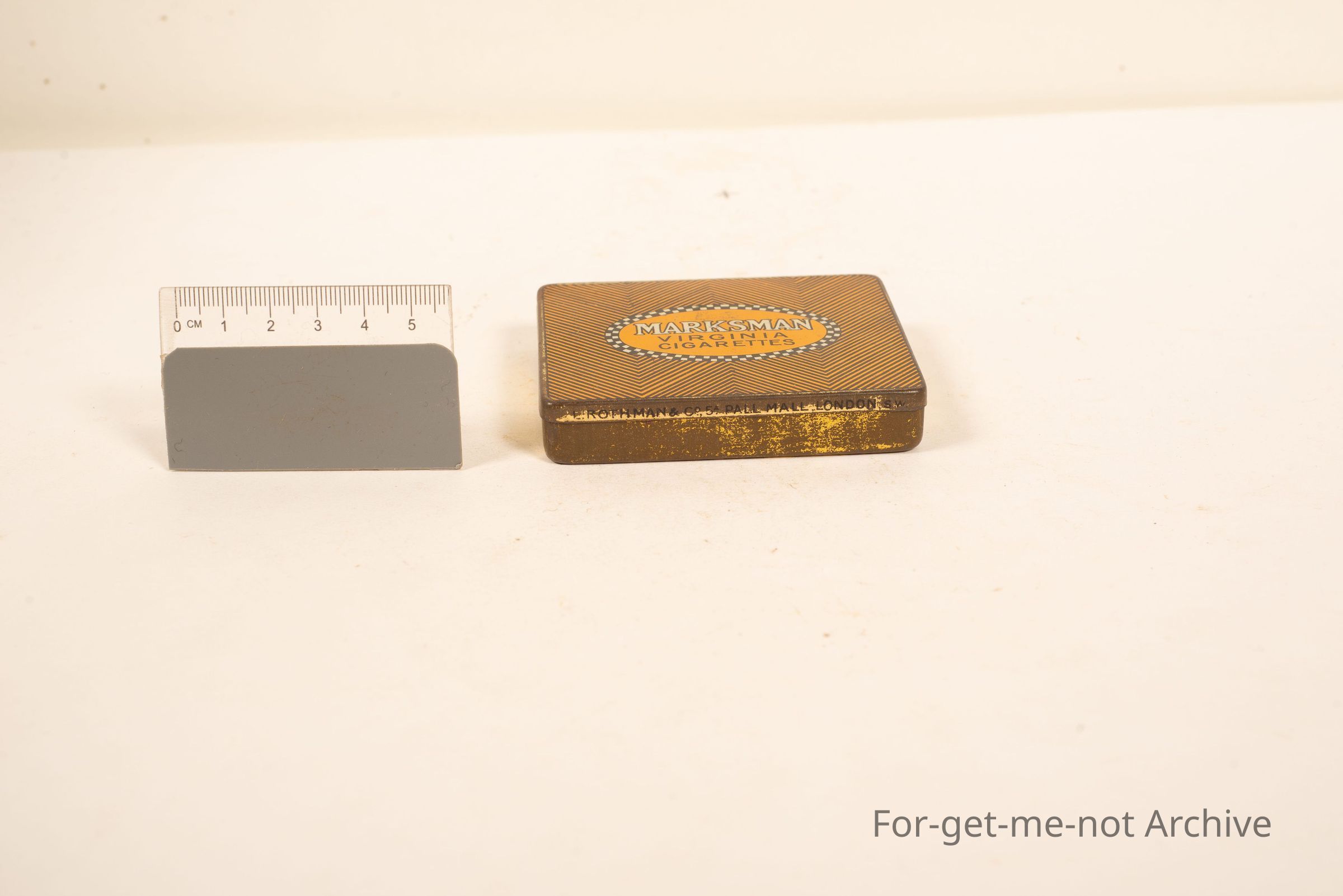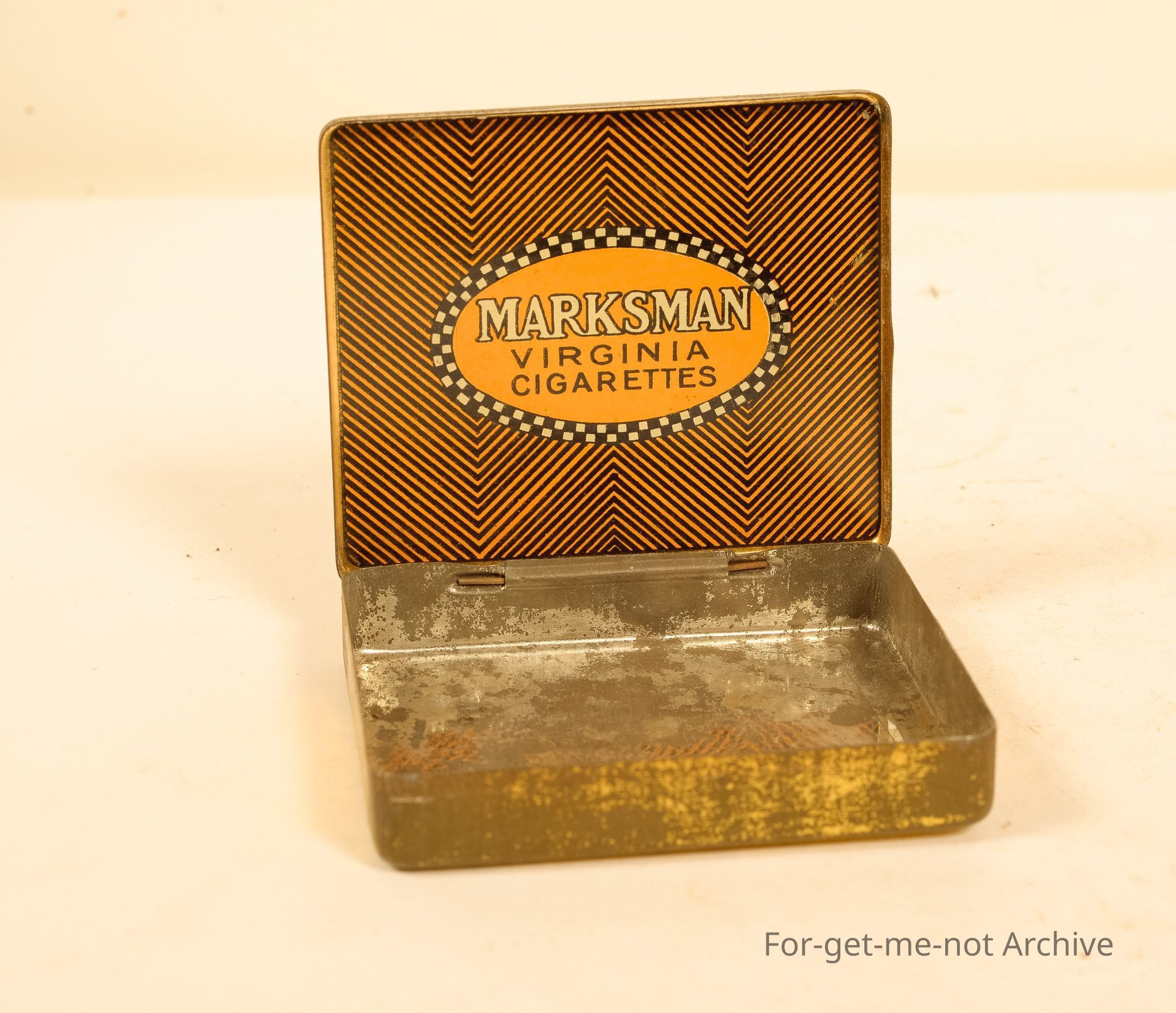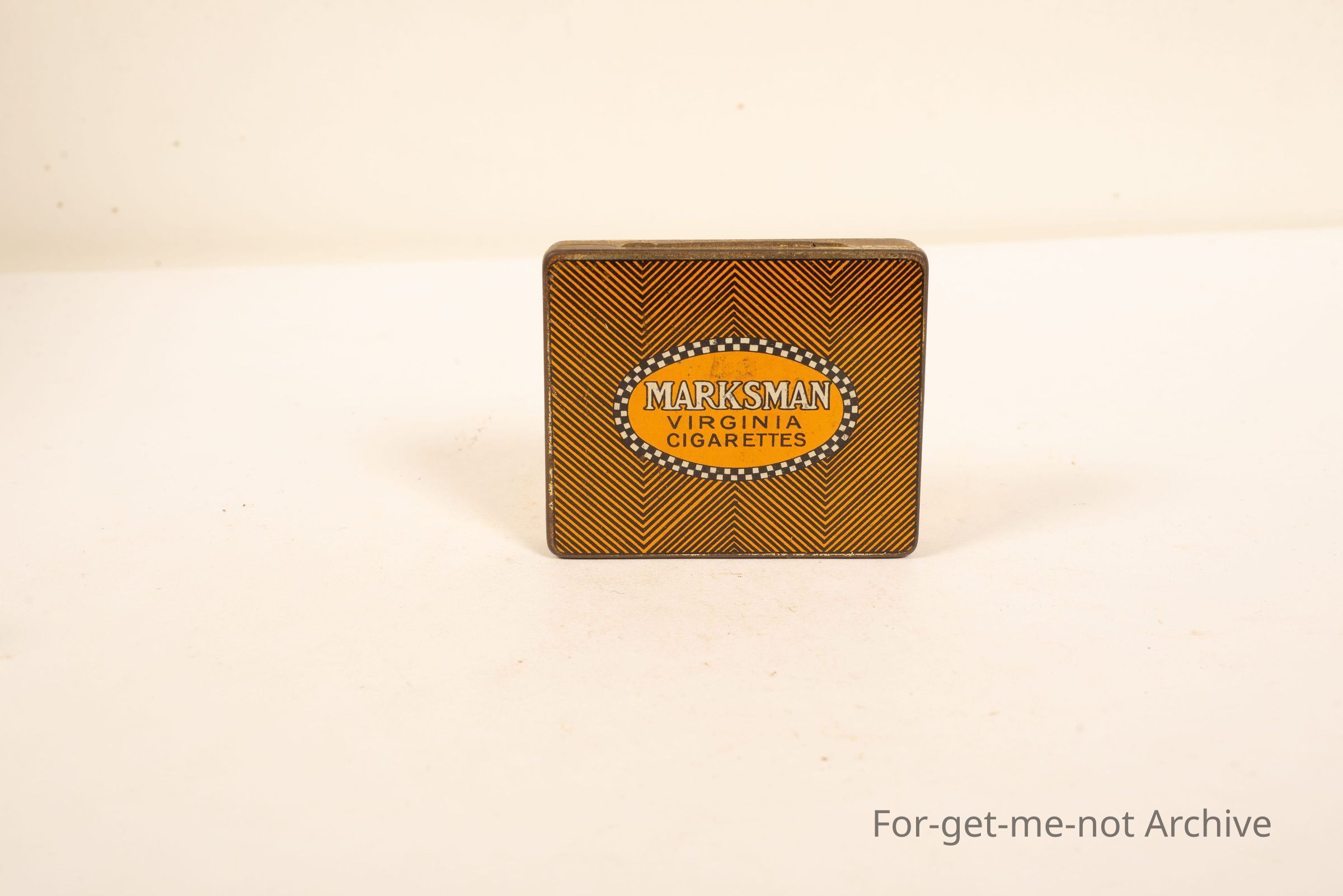 A tin of Marksman Virginia Cigarettes. Nice decorative, thing. Last man, Pall Mall London.