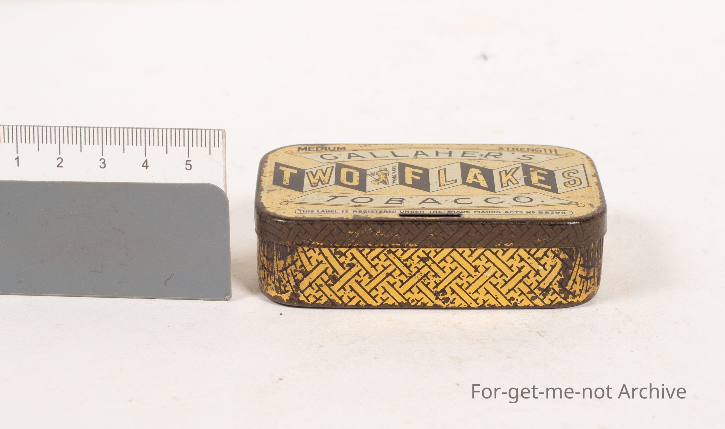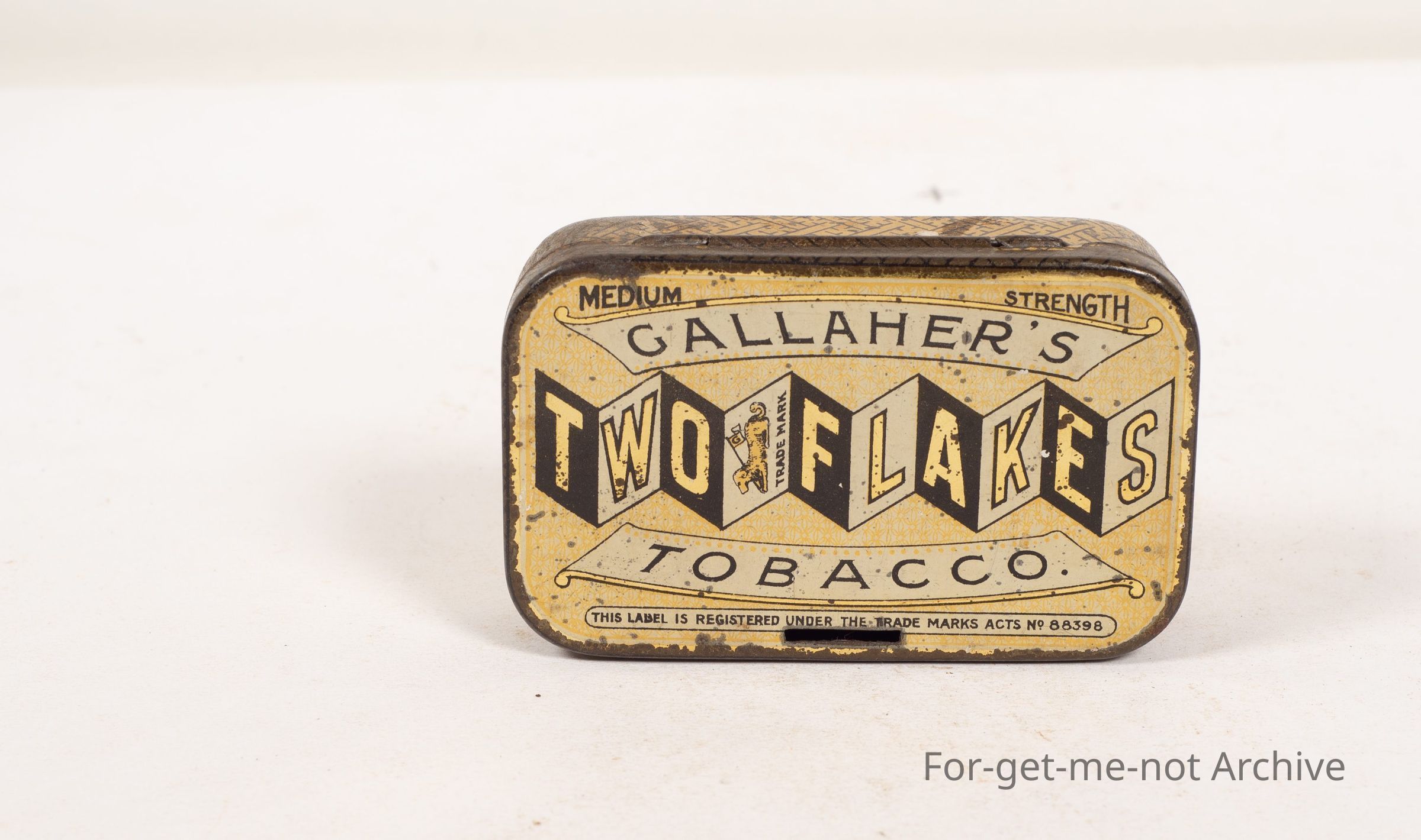 Gallagher's medium strength tobacco, Two flakes, beautiful graphics, attractive tin,