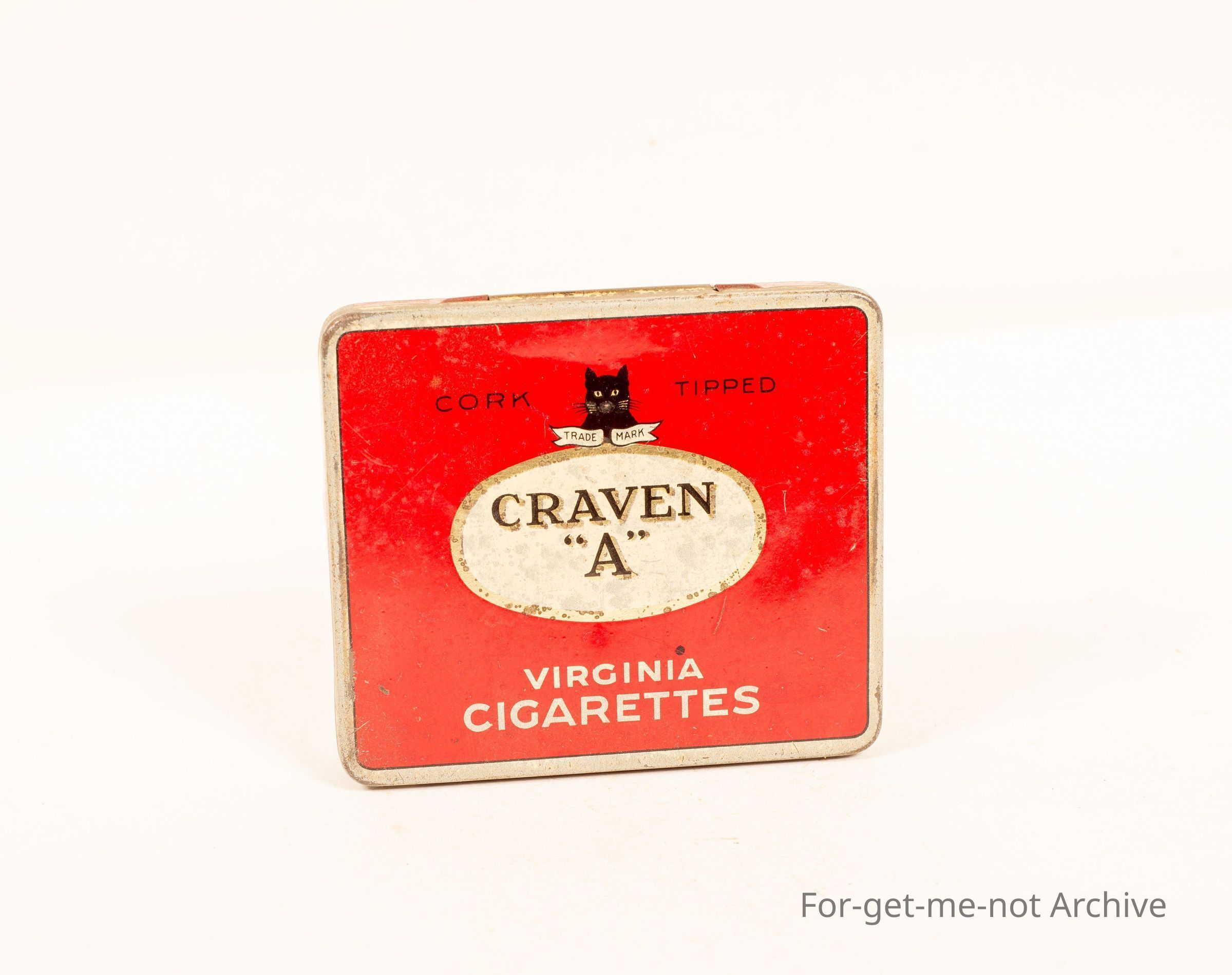 A tin of Craven A cork tip with a trade mark cat image.