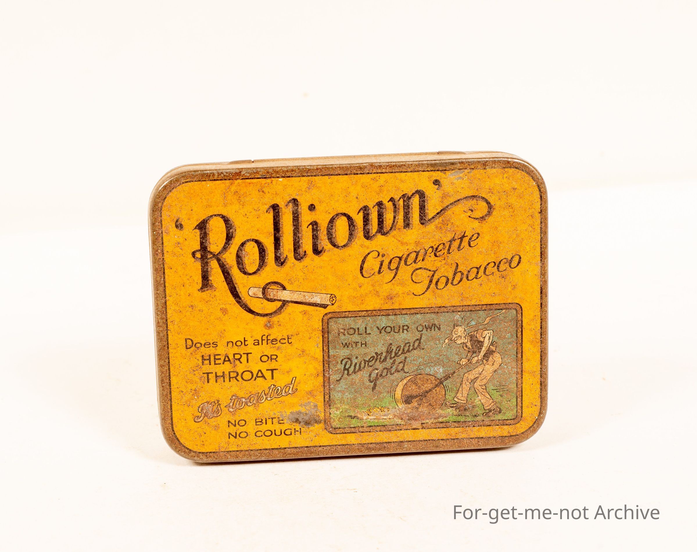 Another tin of the famous, Rolliown cigarette tobacco, made by a National Tobacco Company New Zealand. This one down a bit
