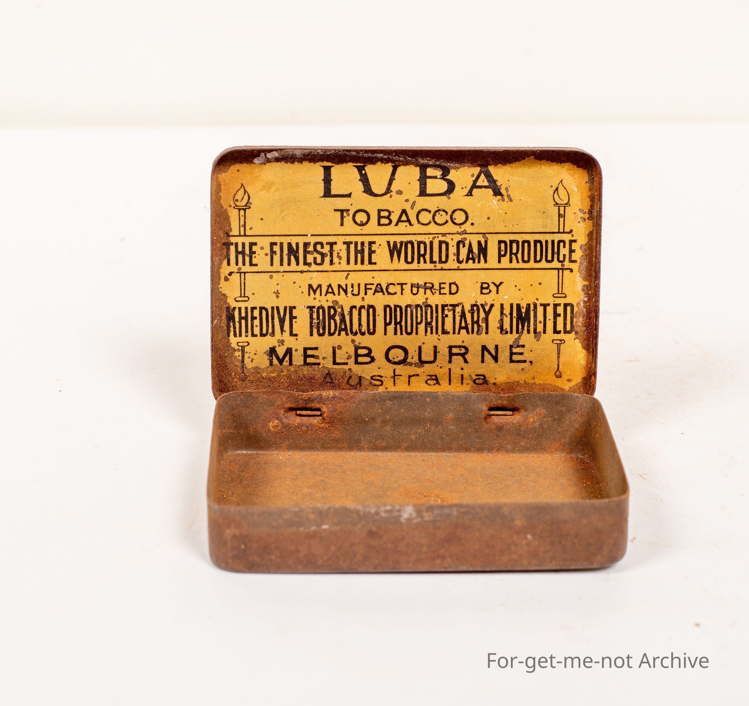 A very scarce Australian Tobacco tin called " LUBA Tobacco". Quite down condition, but still an example of, manufactured by Khudive Tobacco Proprietary, Melbourne.