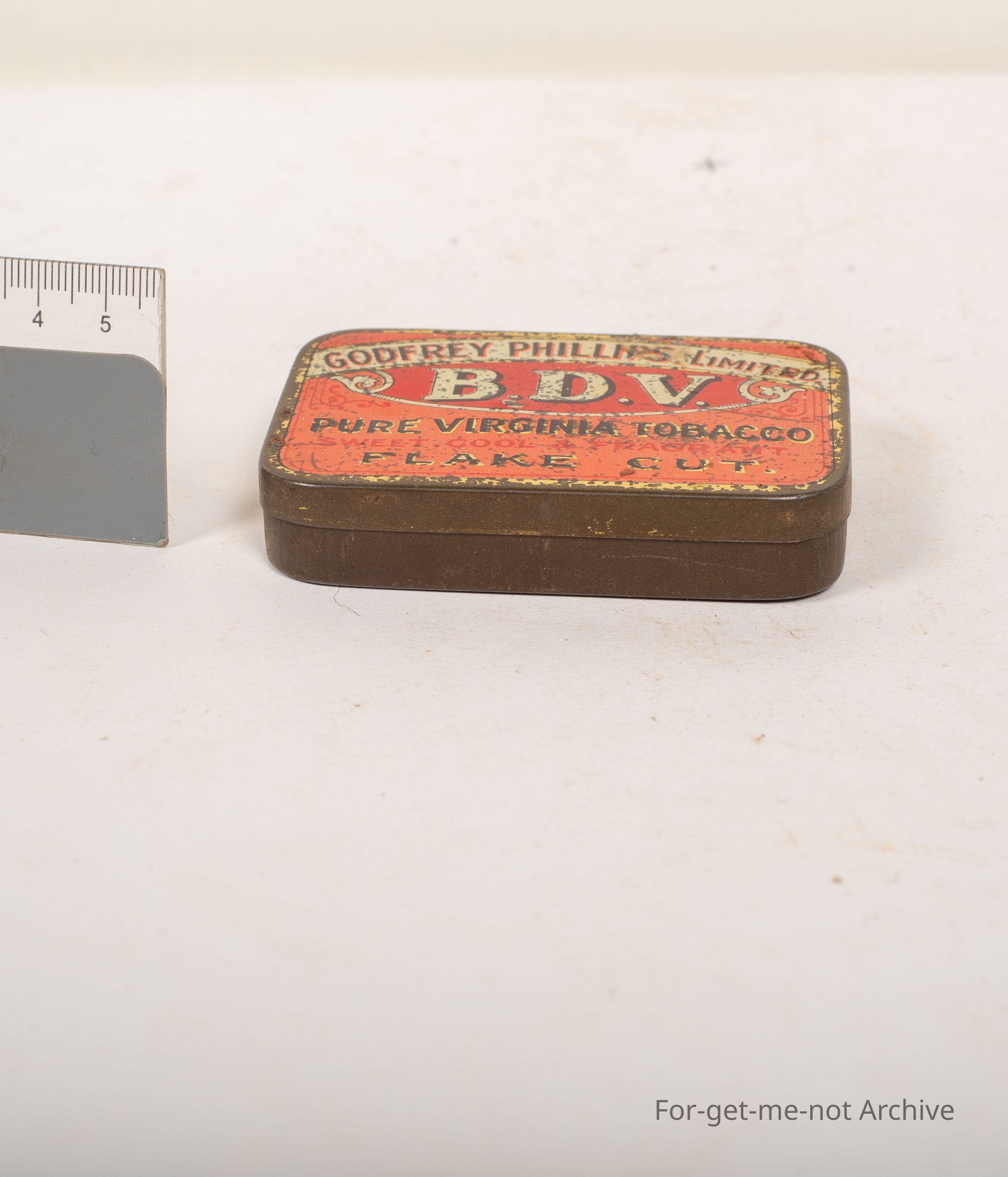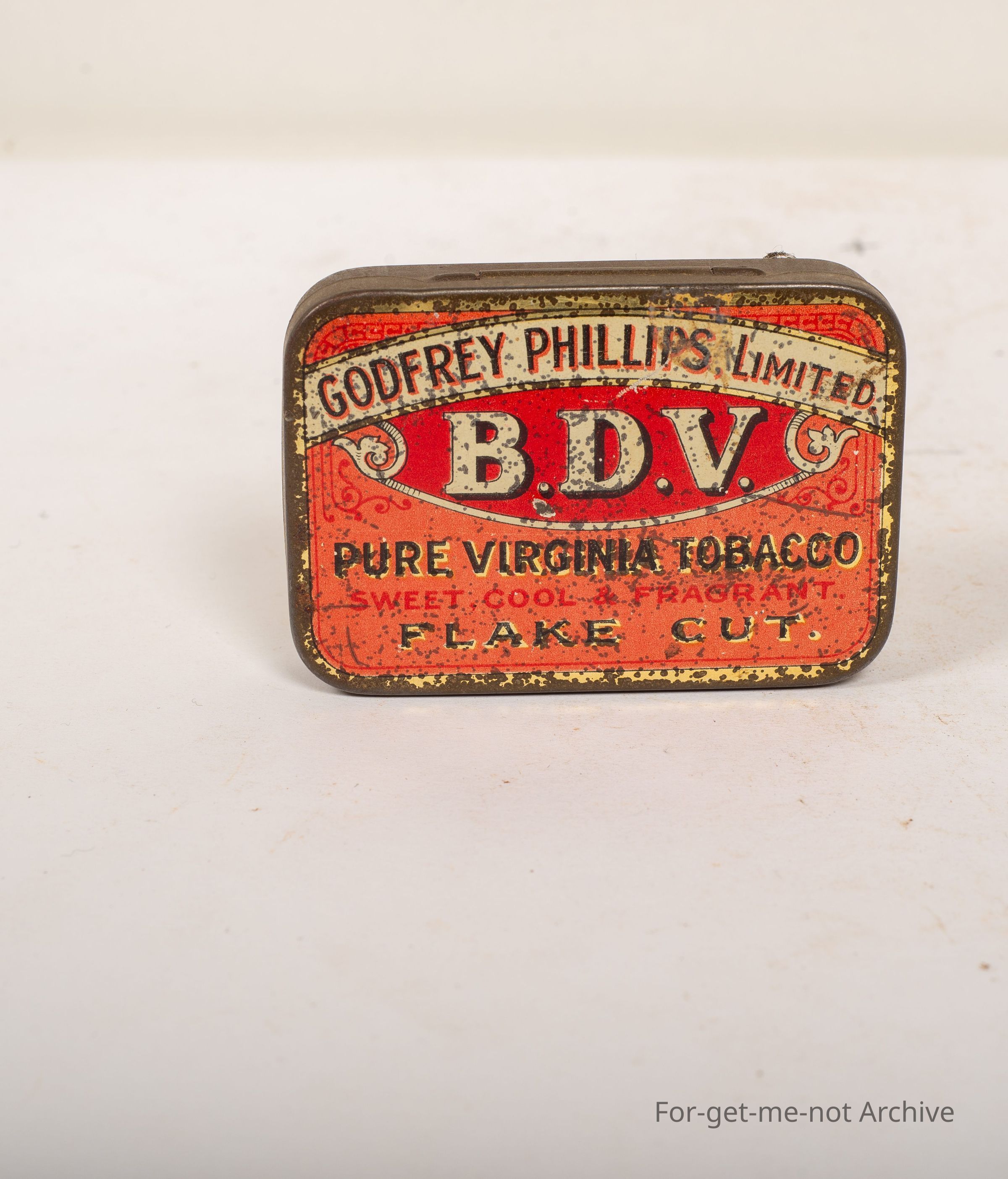 Probably a 2 ounce tin, BDV Flake Cut Tobacco Godfrey Phillips,