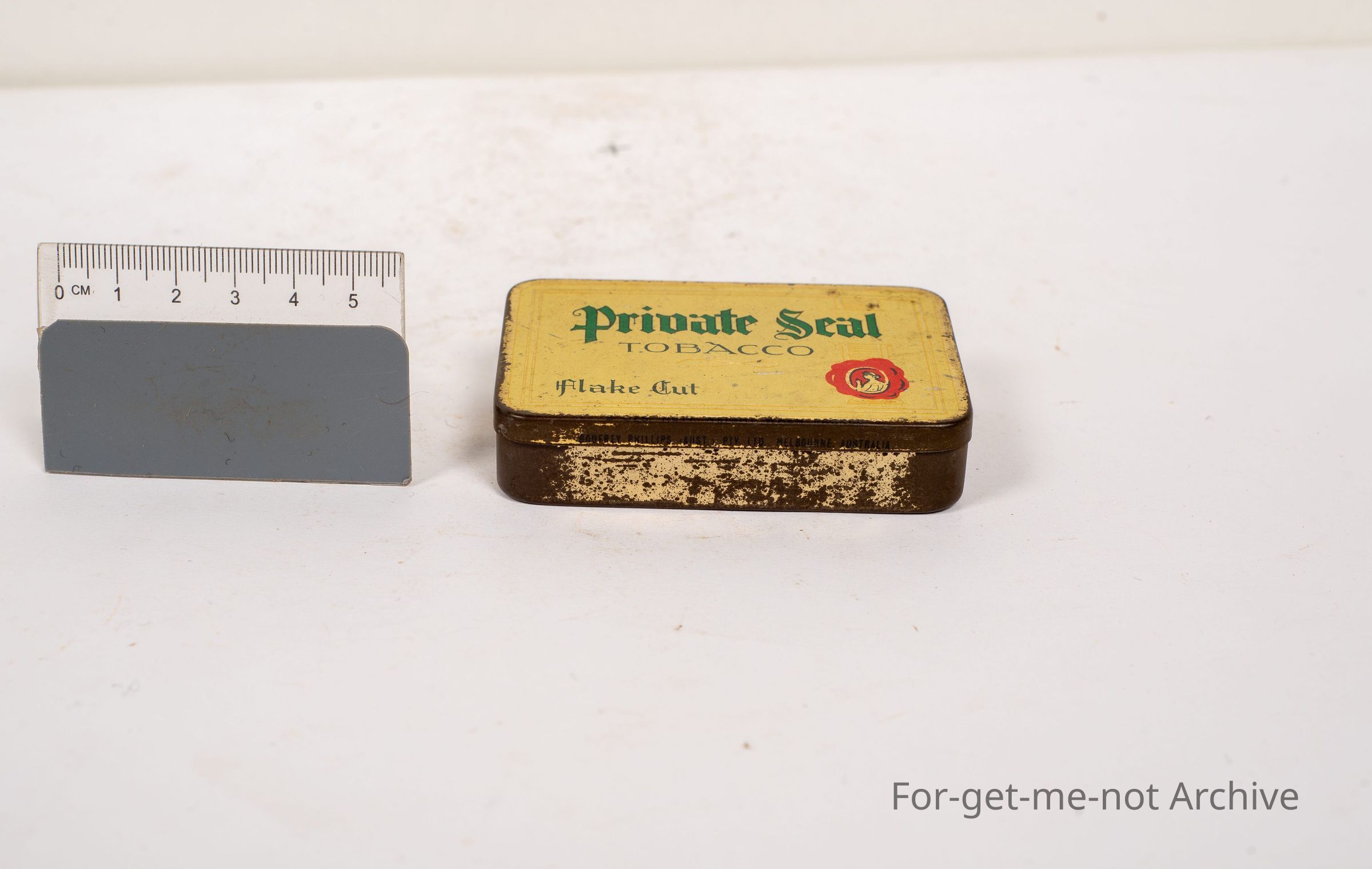 Tin of private sealed tobacco, packed in Melbourne by, Godfrey Phillips.