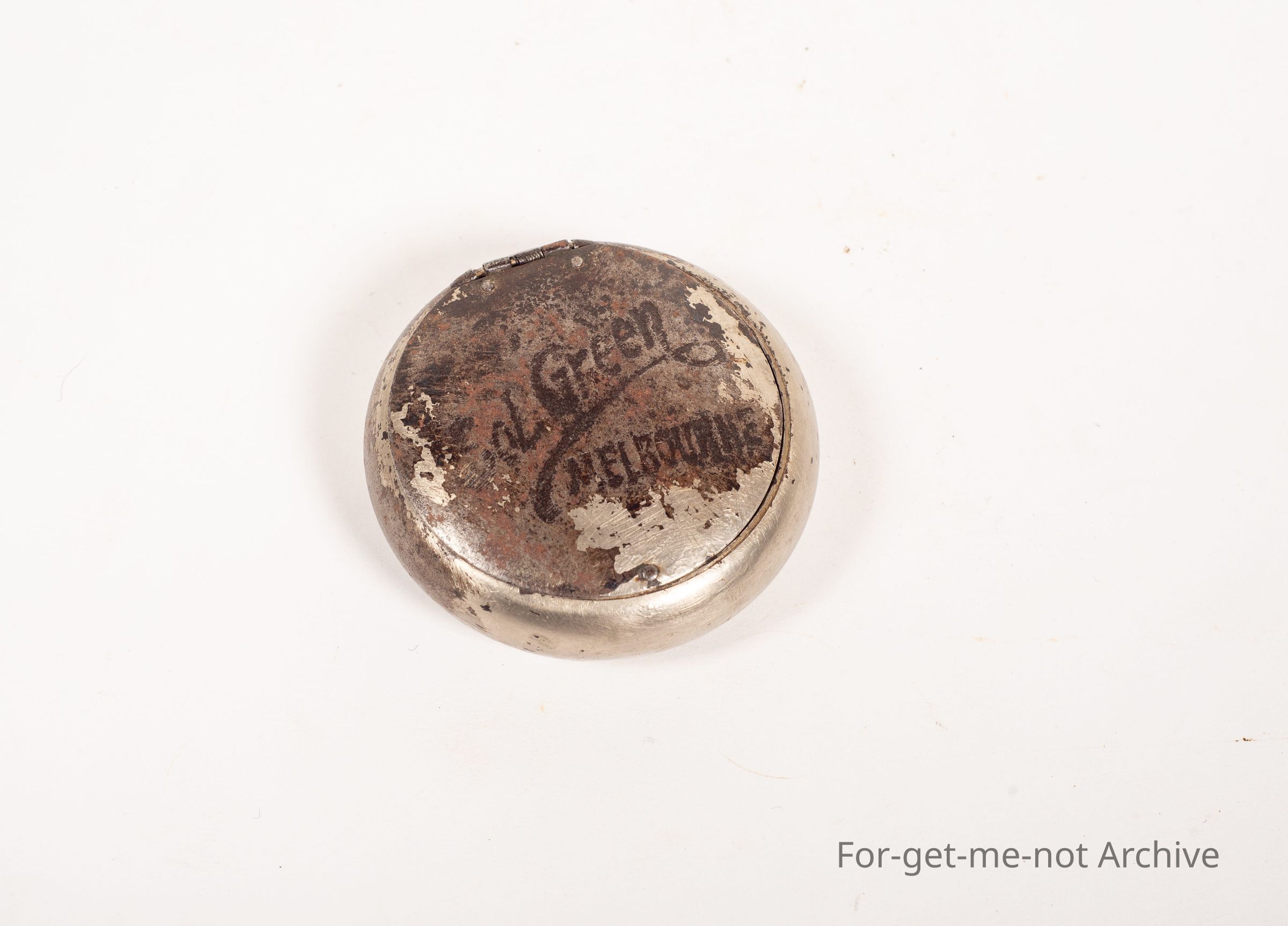 A metal tobacco pouch from Sol Green Melbourne. Probably very old