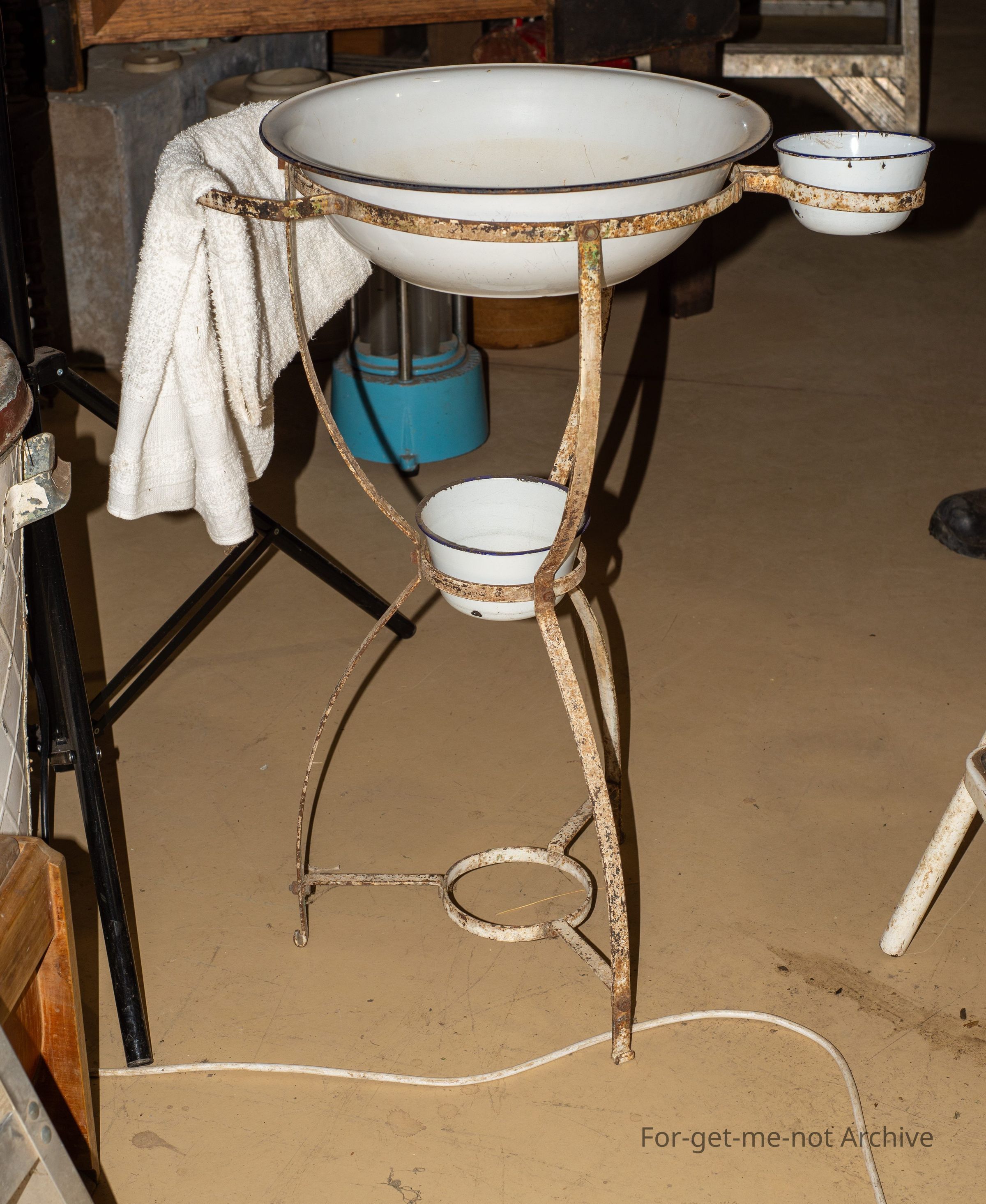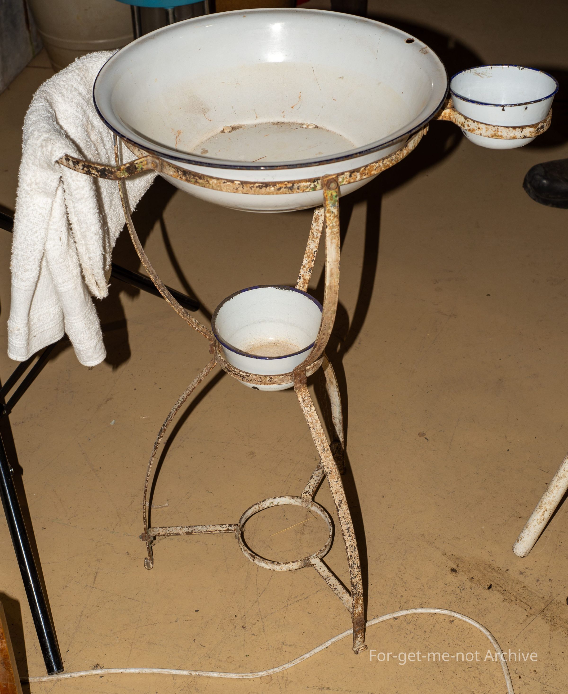 This is like a toiletry stand. Large wash basin, 2 smaller ones on the side with a little towel rack. These, found usually in South Australia. They've been made over There. Delightful little things. They come in all different forms, sizes, and shapes.Collection