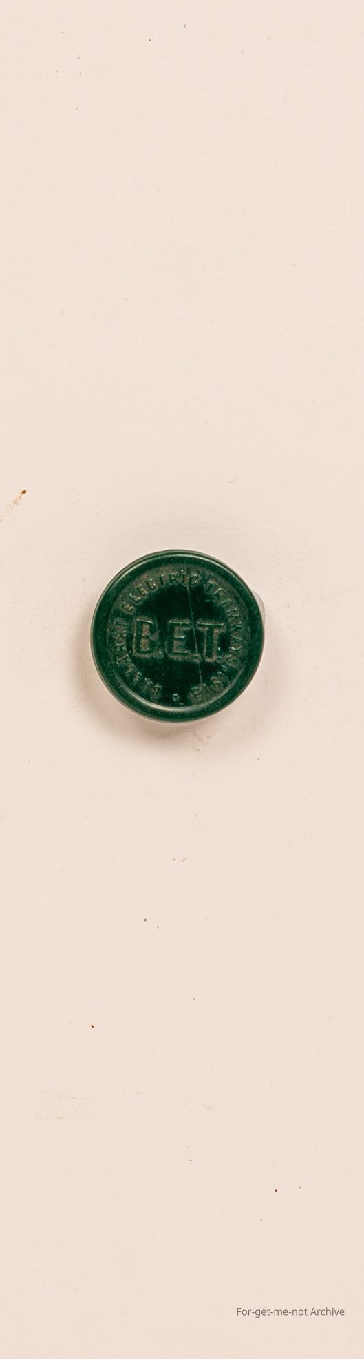 Plastic B E T Token which was Ballarat Electric Tramways. 1913. This is an unused token. No hole in token. The hole indicated they had been used.