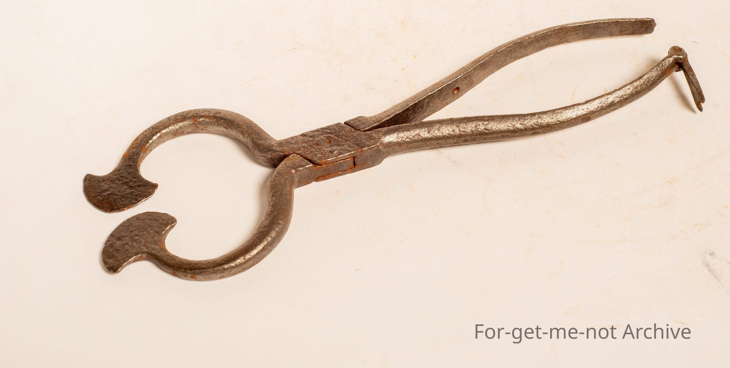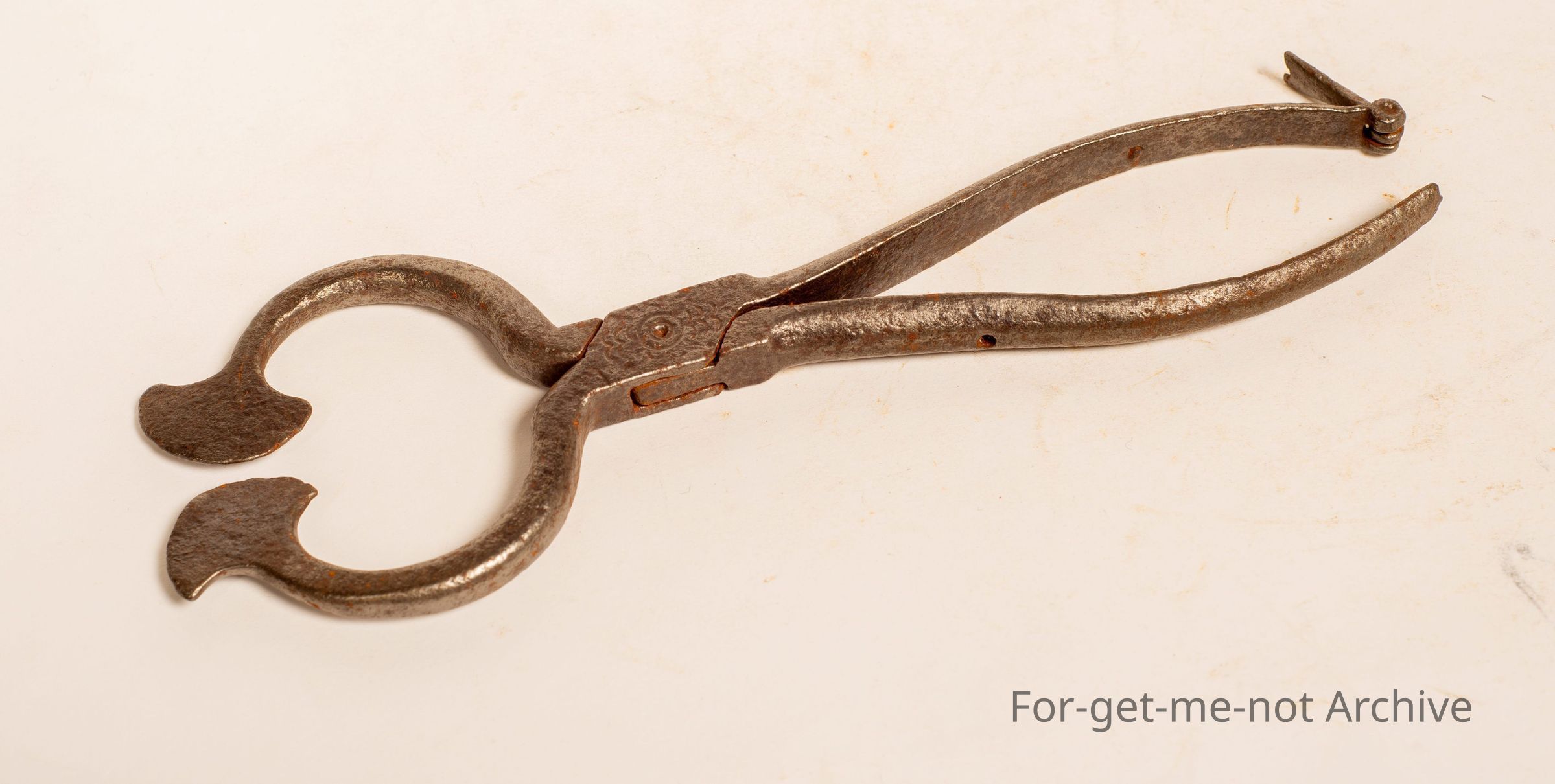 Are a pair of metal, very early sugar tongs with cutters. These have been quite decorative, had a lot of abuse.