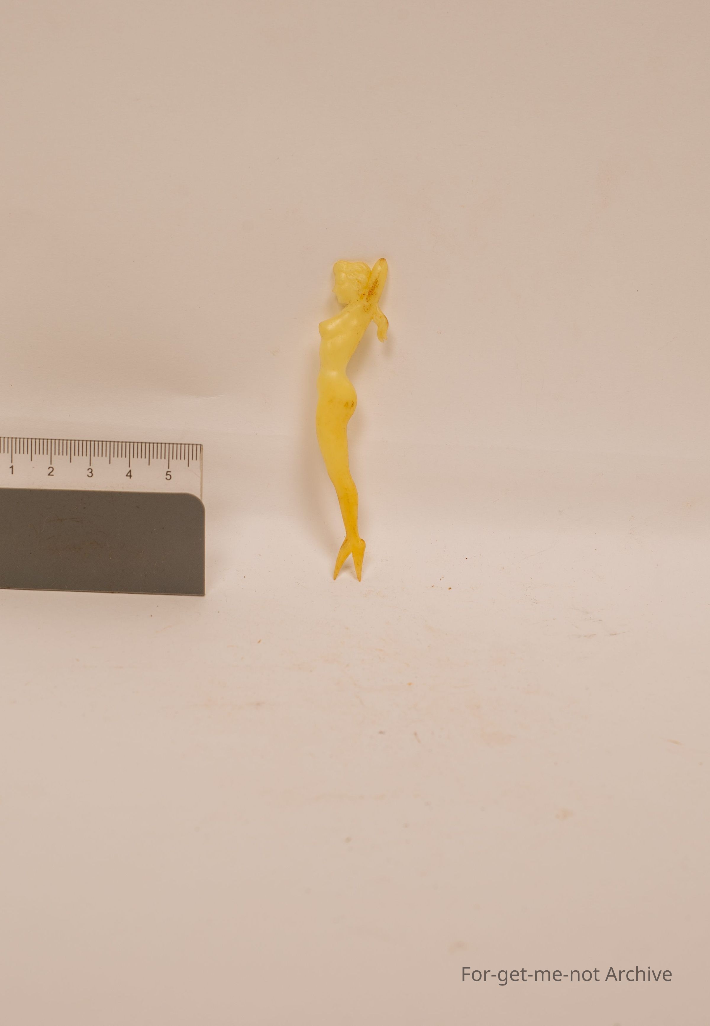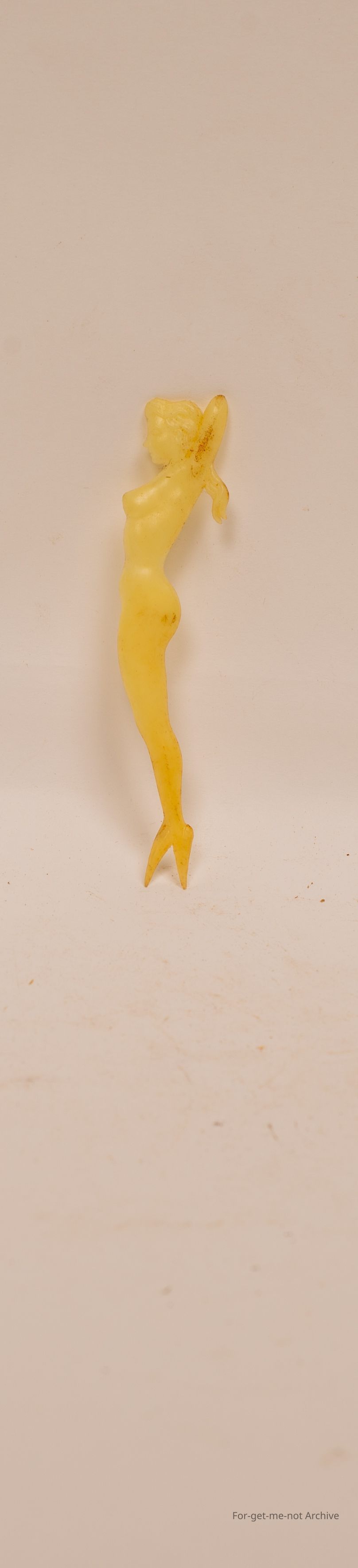 Small plastic, image of a naked woman having a stretch. Has been a pick for food / H'orderves
