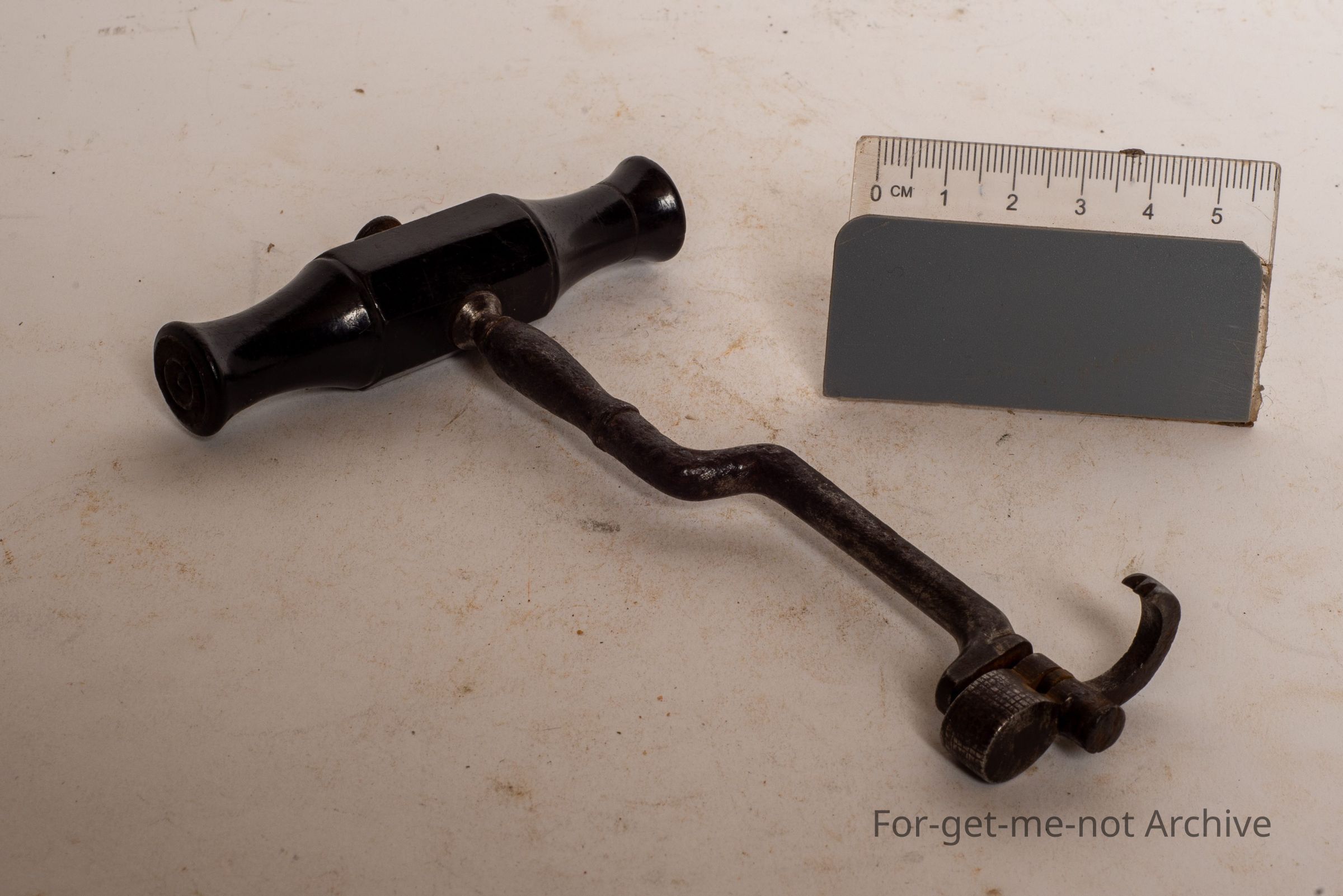 This is a very crude, tooth remover, which just wraps around the tooth and is pulled out with brute strength. Beautiful turned wooden handle of ebony, very old, very rare value