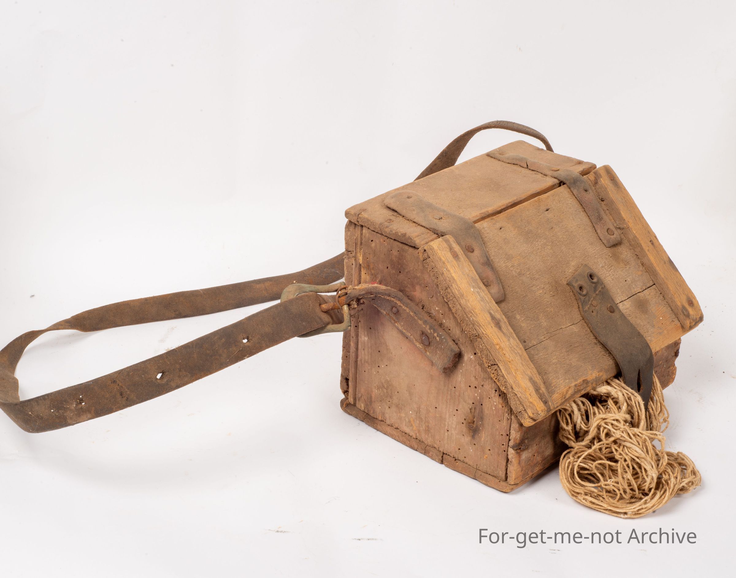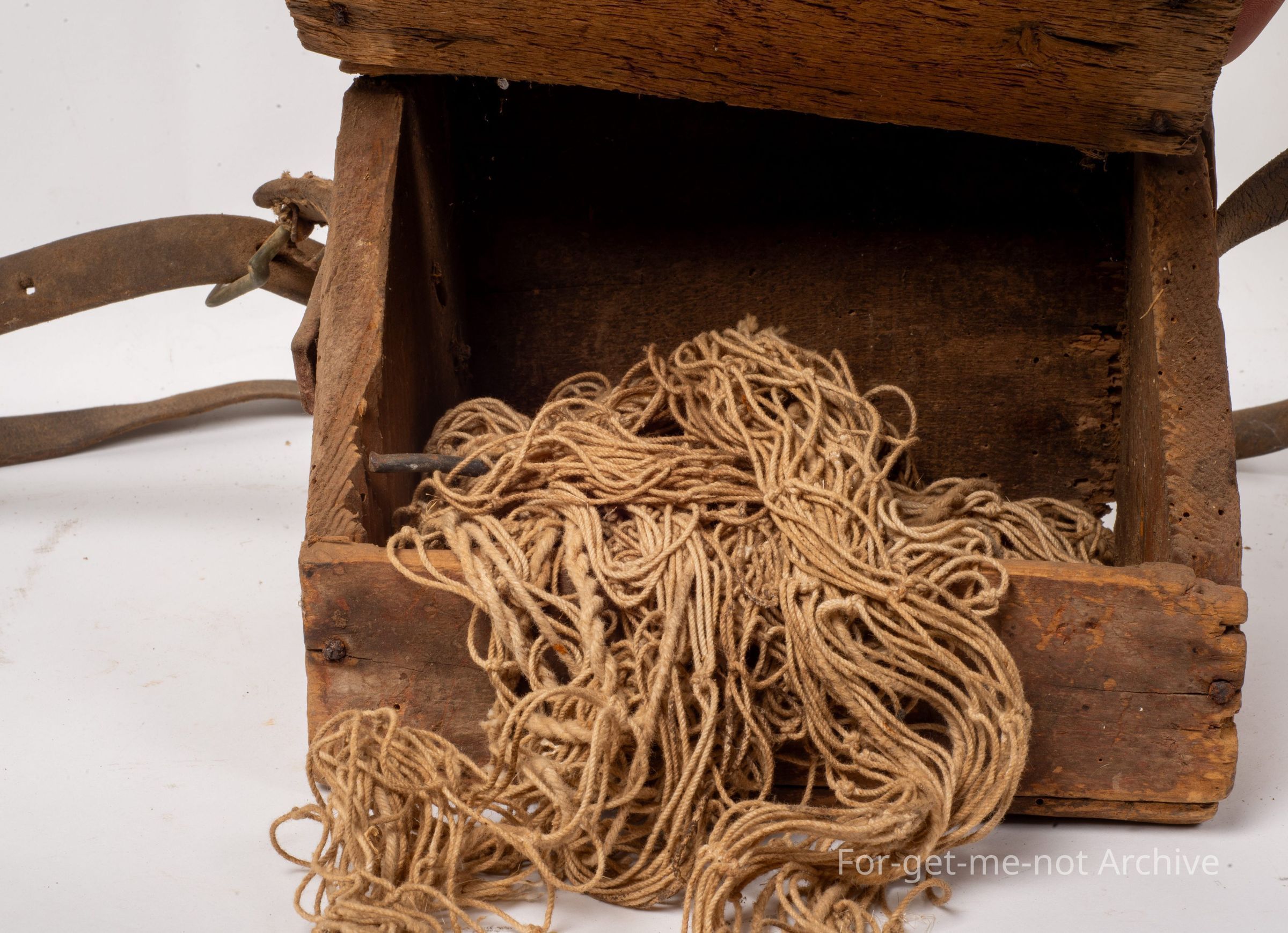 Is a completely homemade, ferret box with nets. This is made with a leather strap for over the shoulder, leather straps for the hinges on the lid, leather for the catch to keep the lid shut. This would have given some kid a great deal of joy, fair bit of bore attack on it, but a lovely piece, from an earlier time,Collection
