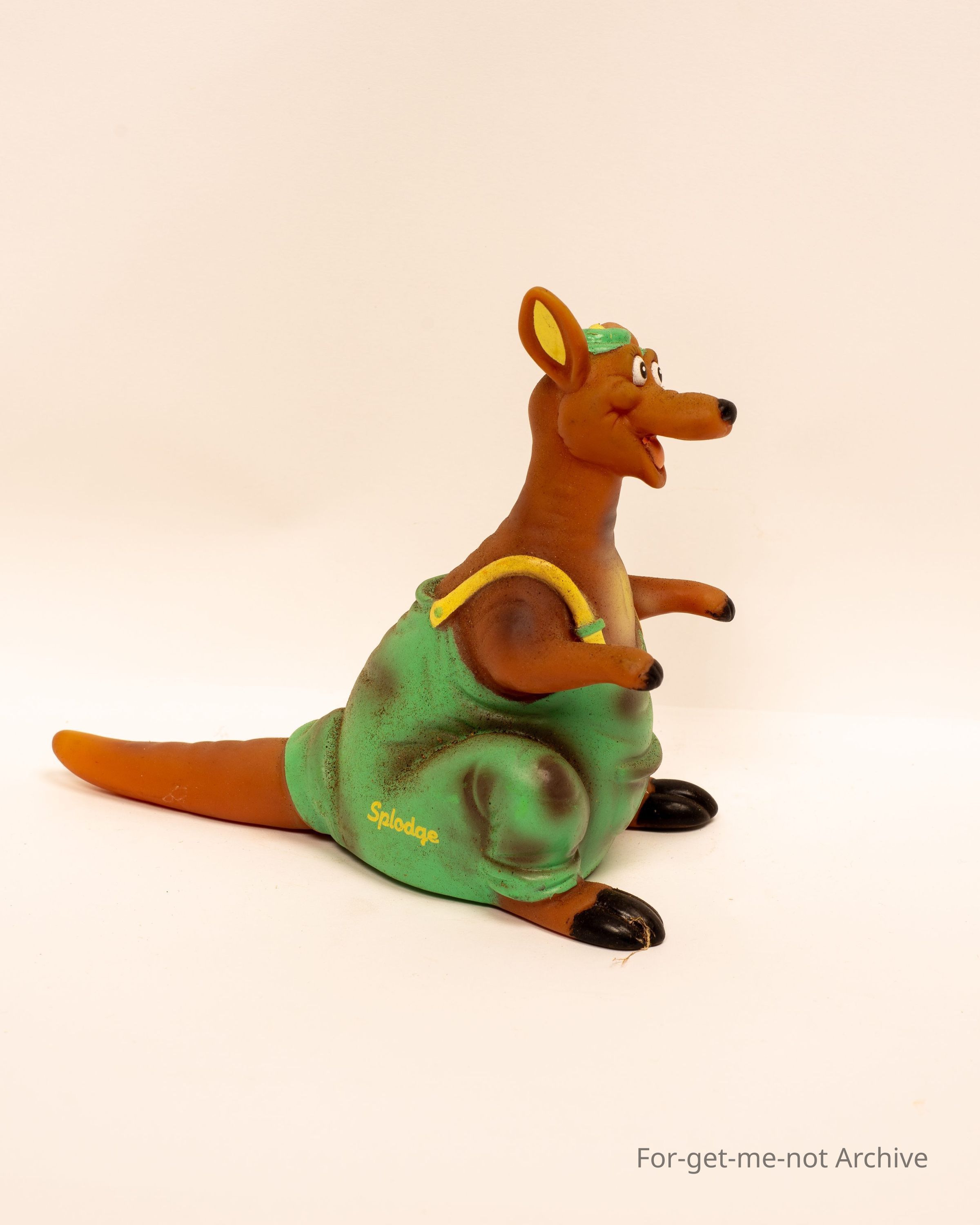 A rubber kids toy in the shape of a Joyful Kangaroo branded splodge
