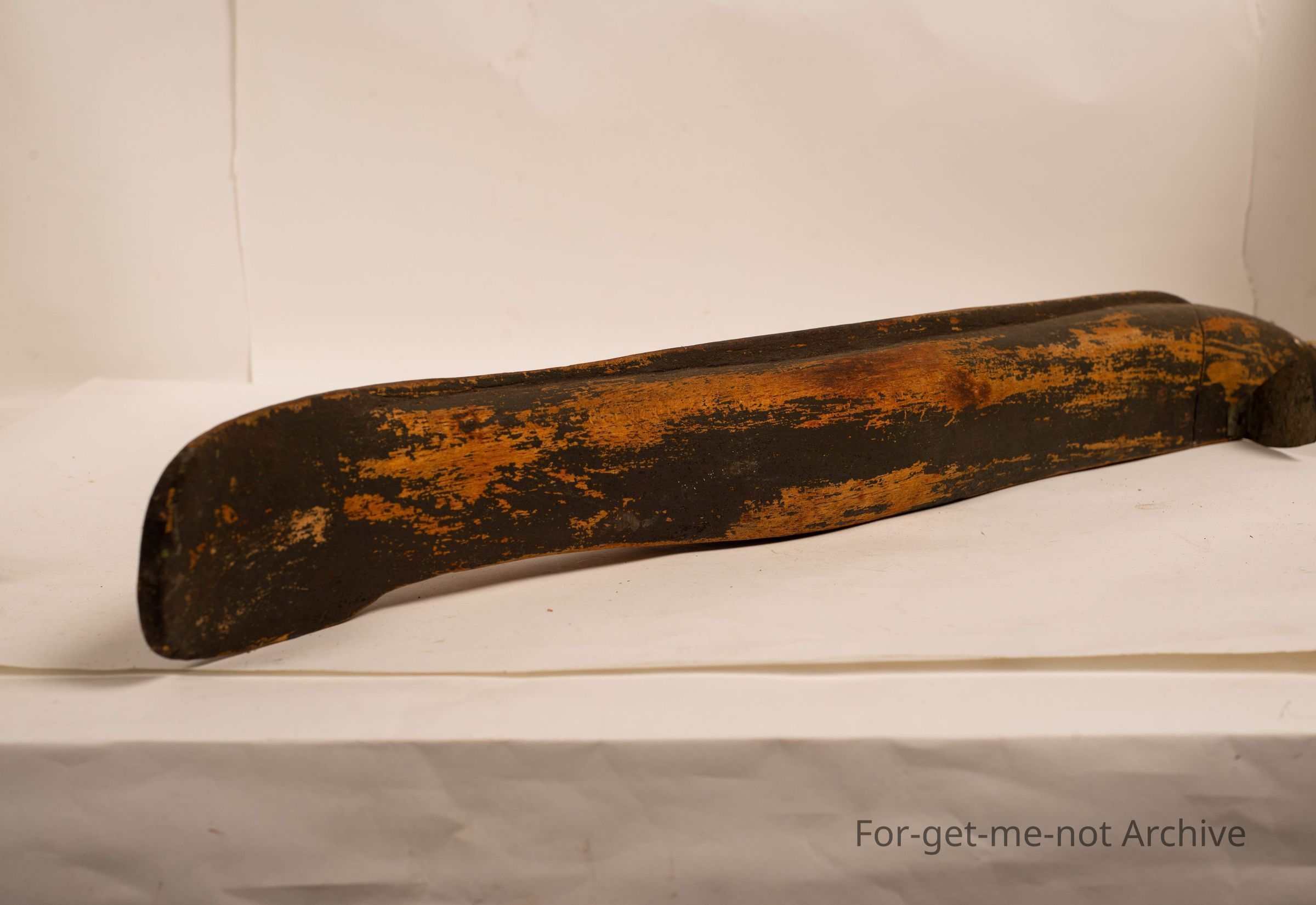 A wooden eel. Very light wood with fins, eyes, feelers, and mouth.