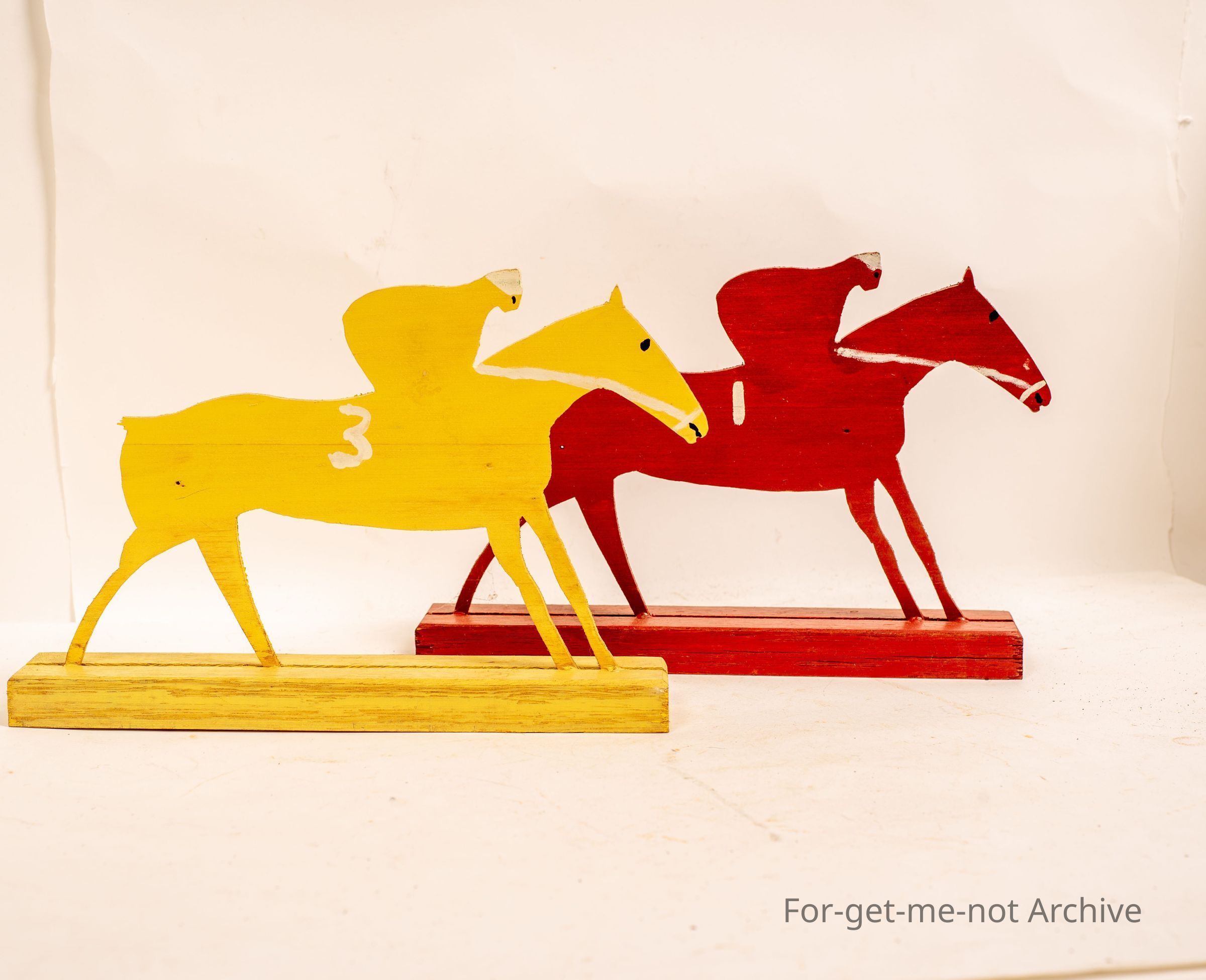 2 Fretwork waste horses in a stand, number 1 and number 3. Obviously, part of some toy. per pair.