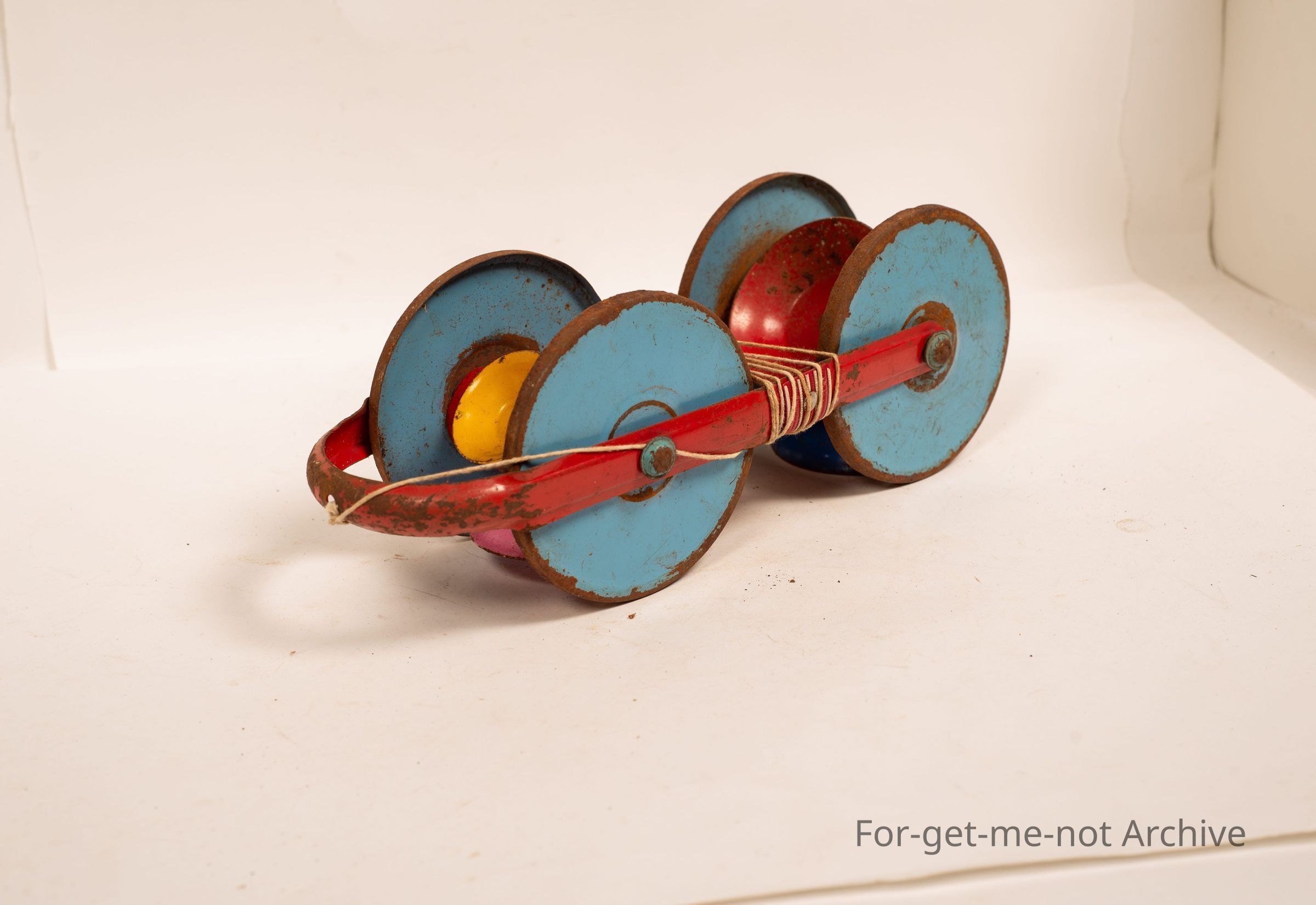 Is a tin, all along toy with revolving wheels, a string attached. What are you going to call this?