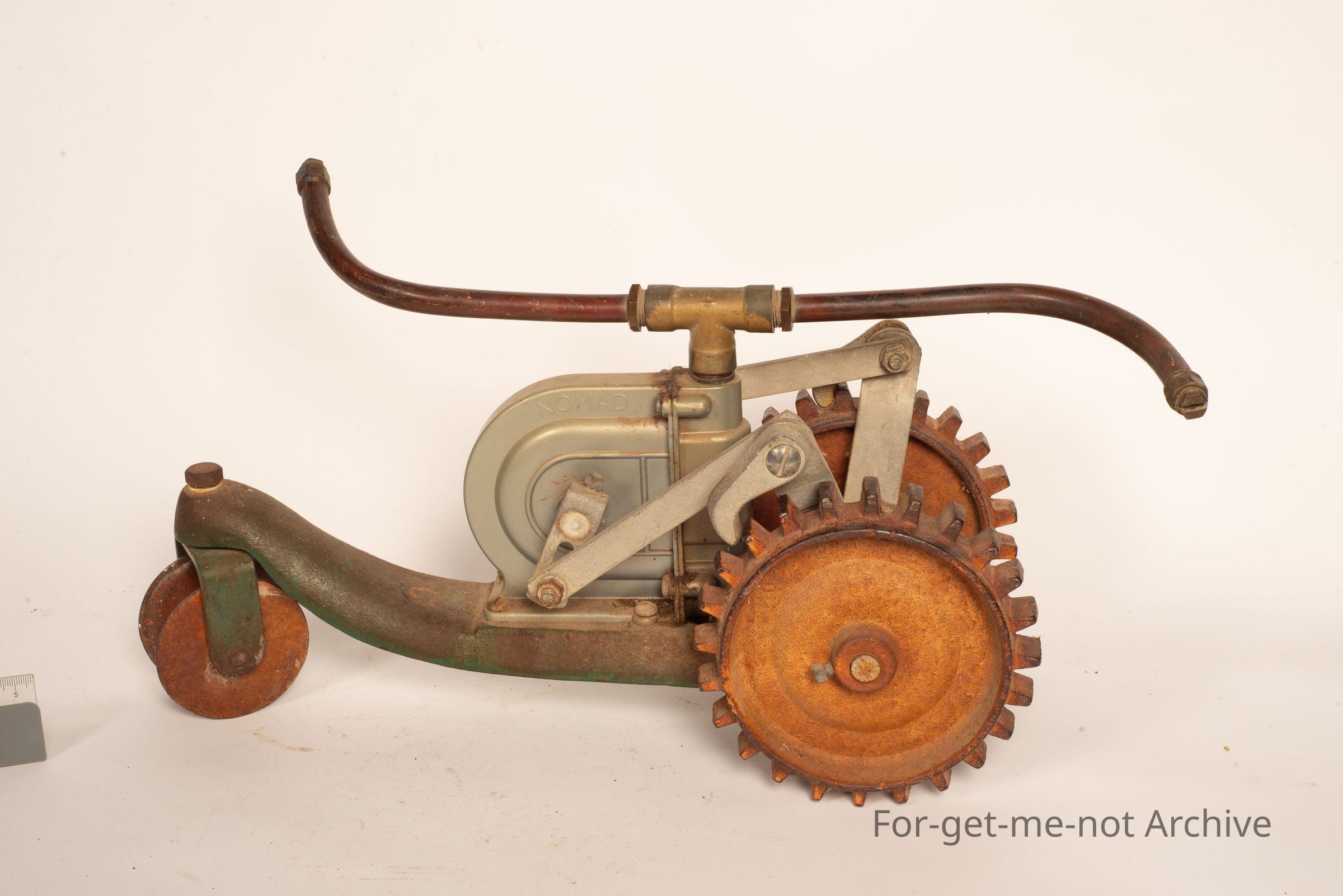 Works on cogs, and the spire wire tight says it moves along under its own power. Made entirely in Western Australia. Very collectible and hard to find these original ones. These are referred to as the Nomad lawn tractor.Collection
