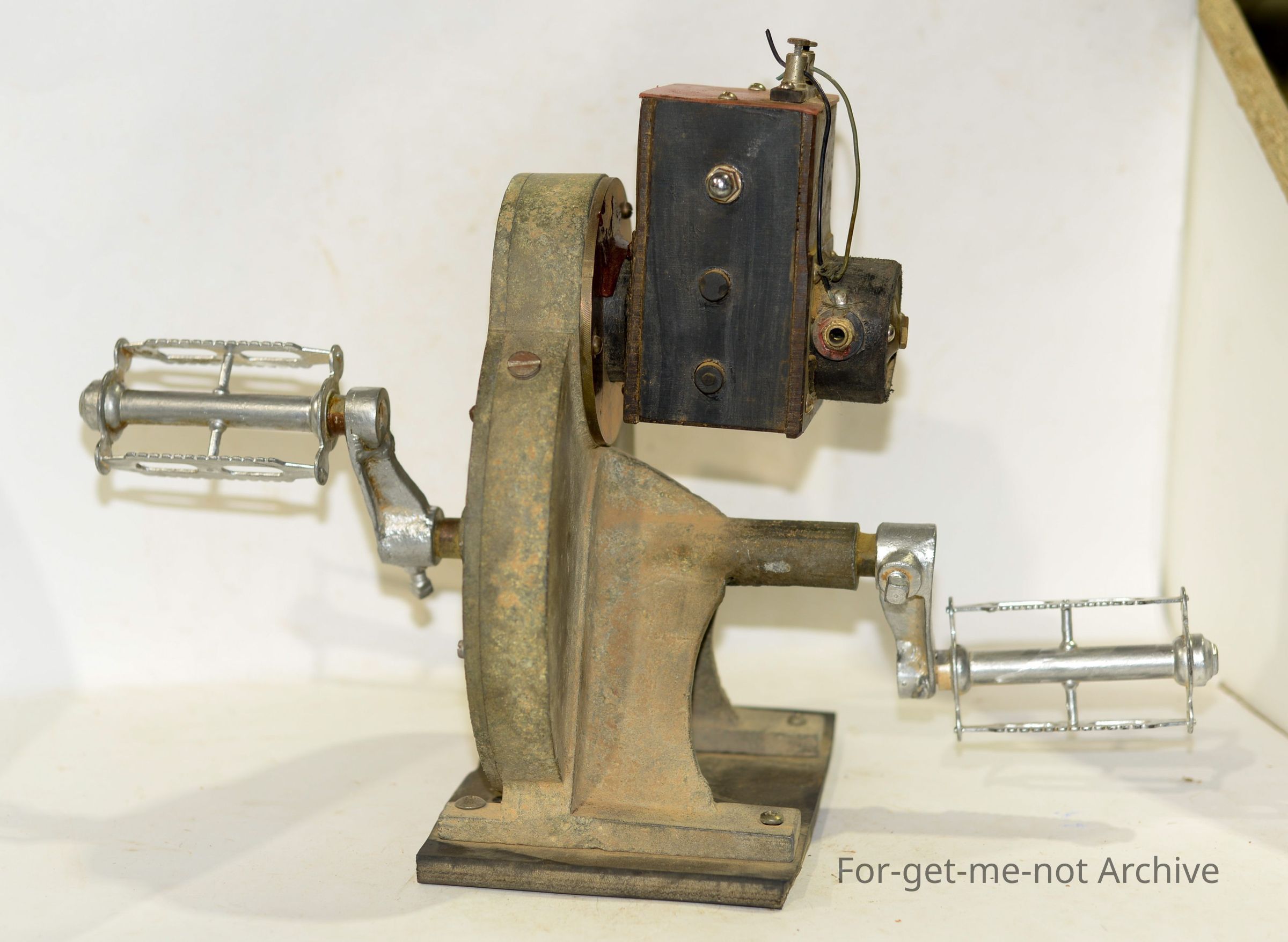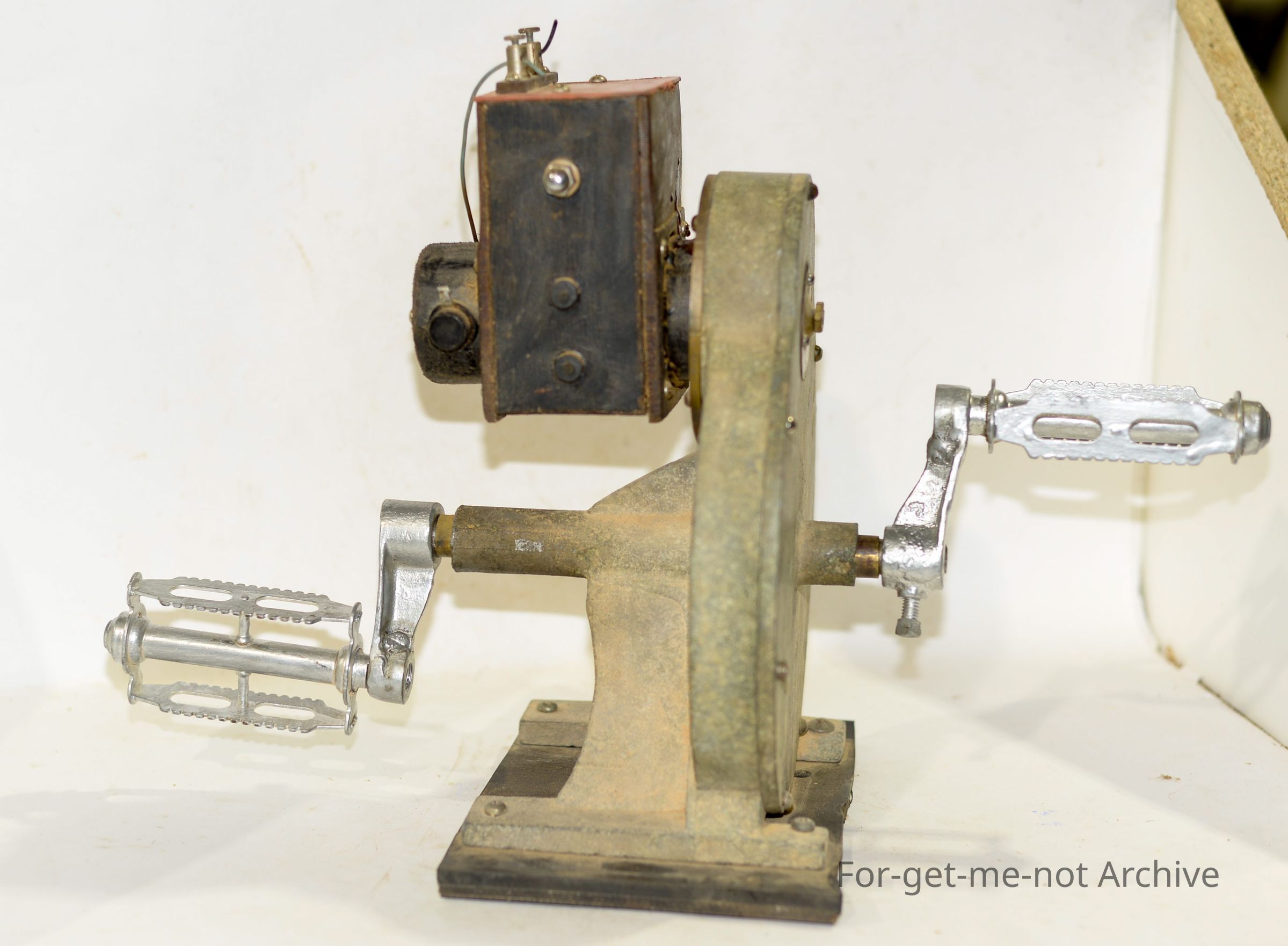 This is a radio set used in isolated outback homesteads to communicate with the Rural Flying doctor service, the unit is pedal powered to produce electricity to then power the valve radio unit From Burke museum collectionCollection