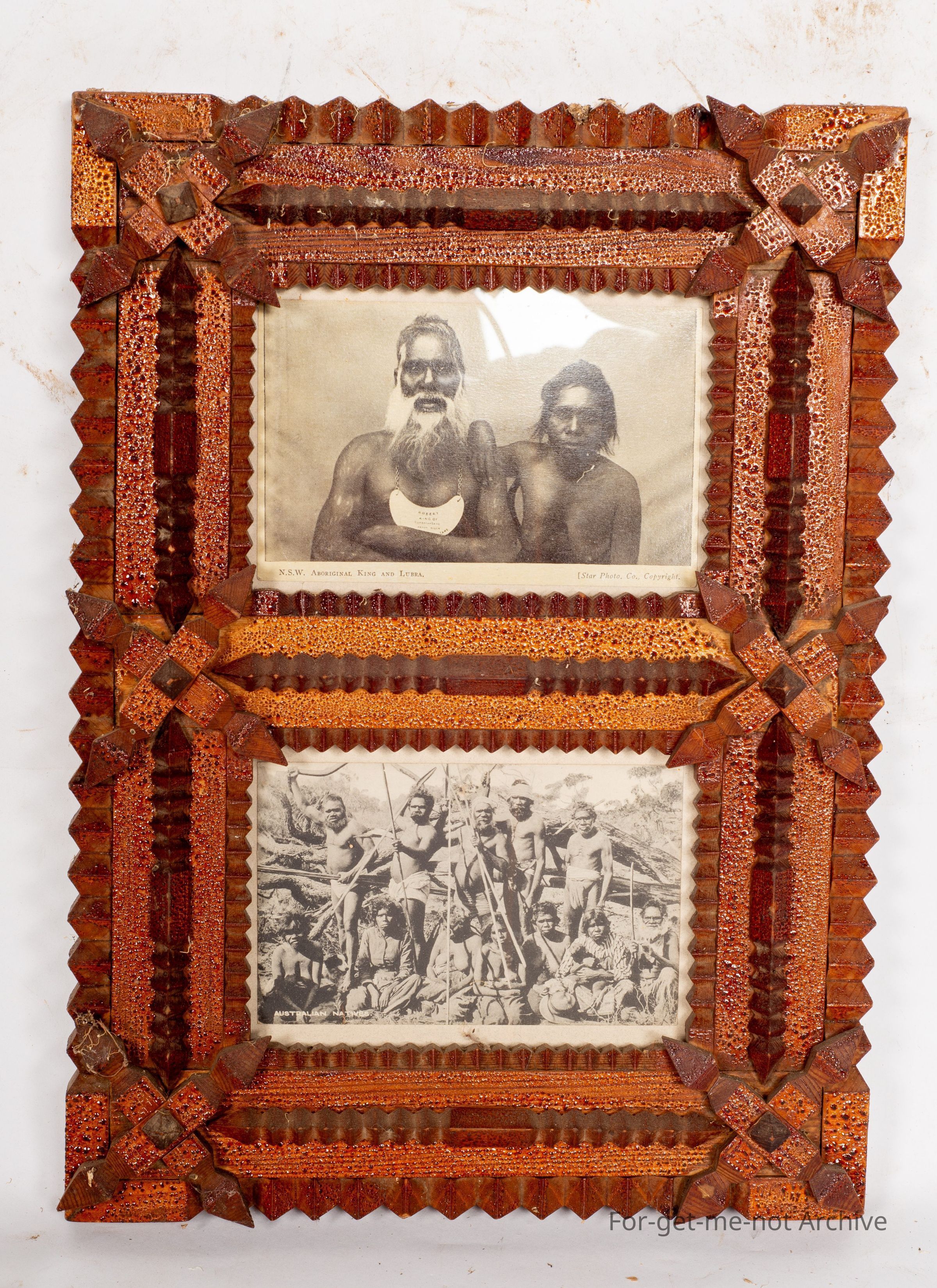 This is a very ornate piece of tram part. Highly decorated. This is holding 2 original Aboriginal postcards, in glorious condition very early