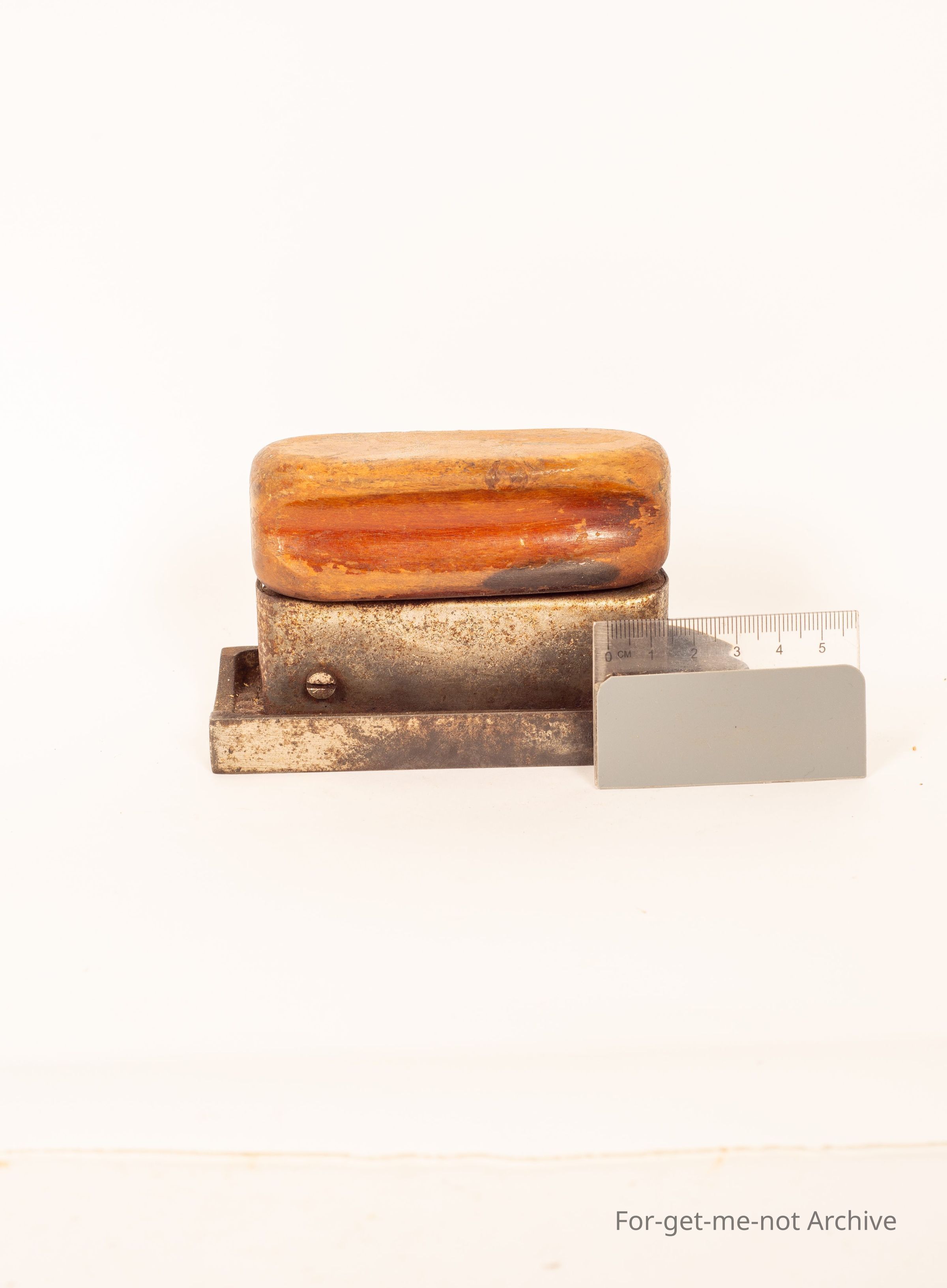 Another travelling Spirit Iron, this time with wooden handle, British Boudoir iron.