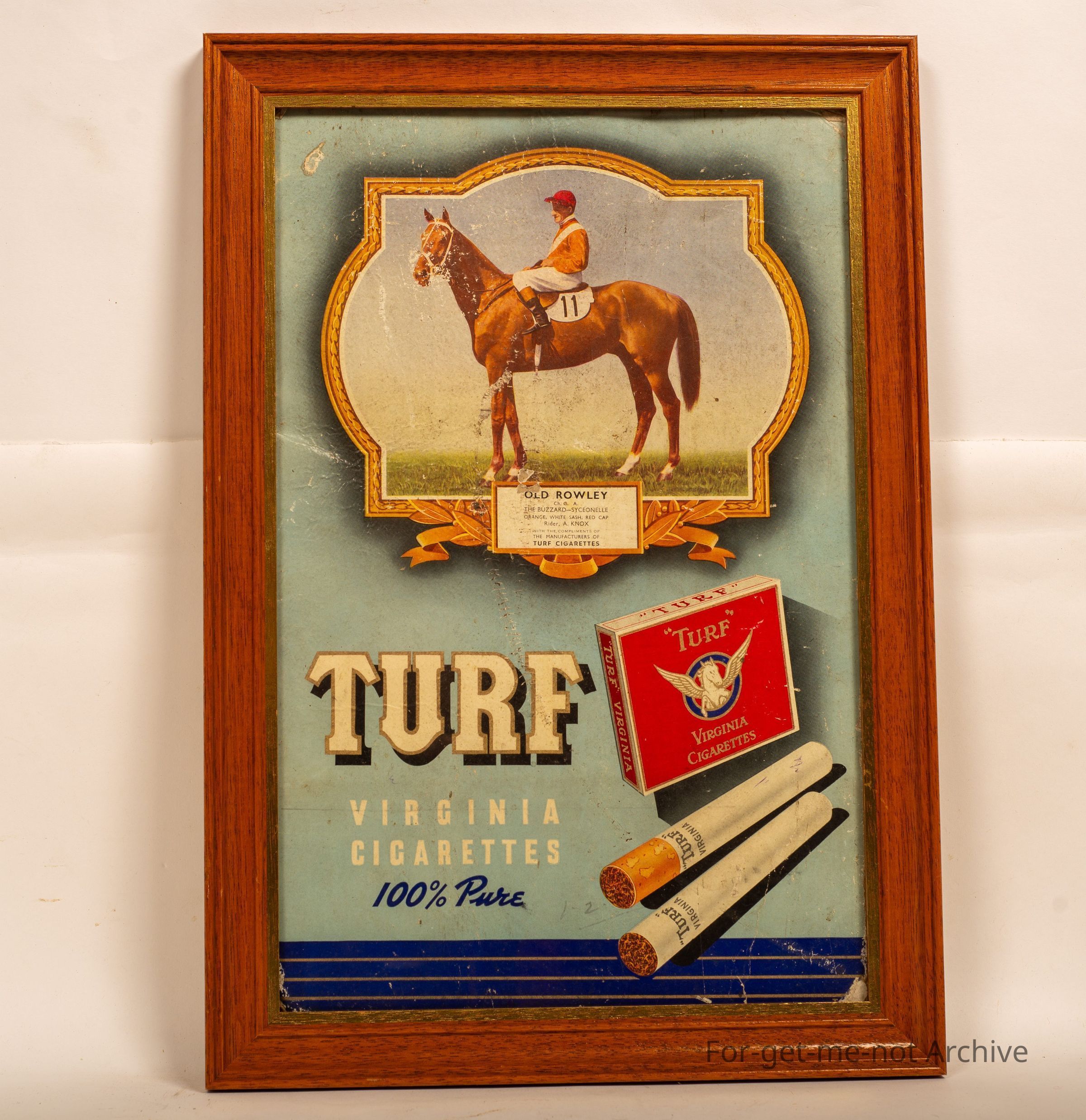 Another framed advertising piece, this time for Turf Virginia Cigarettes with image of old Raleigh Racehorse