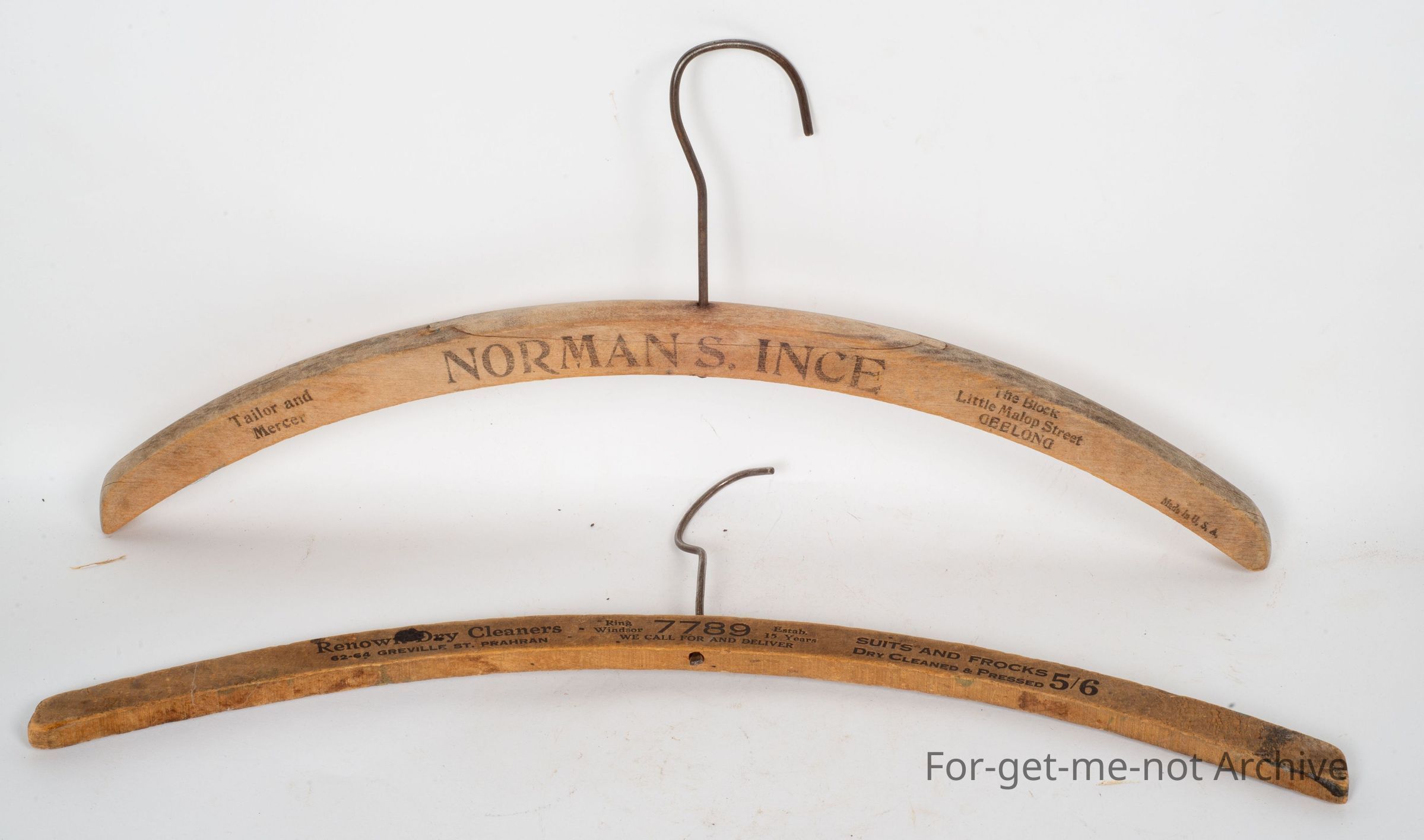 Two advertising coat hangers Norman Ince Tailor Geelong and Renown dry cleaners Prahran