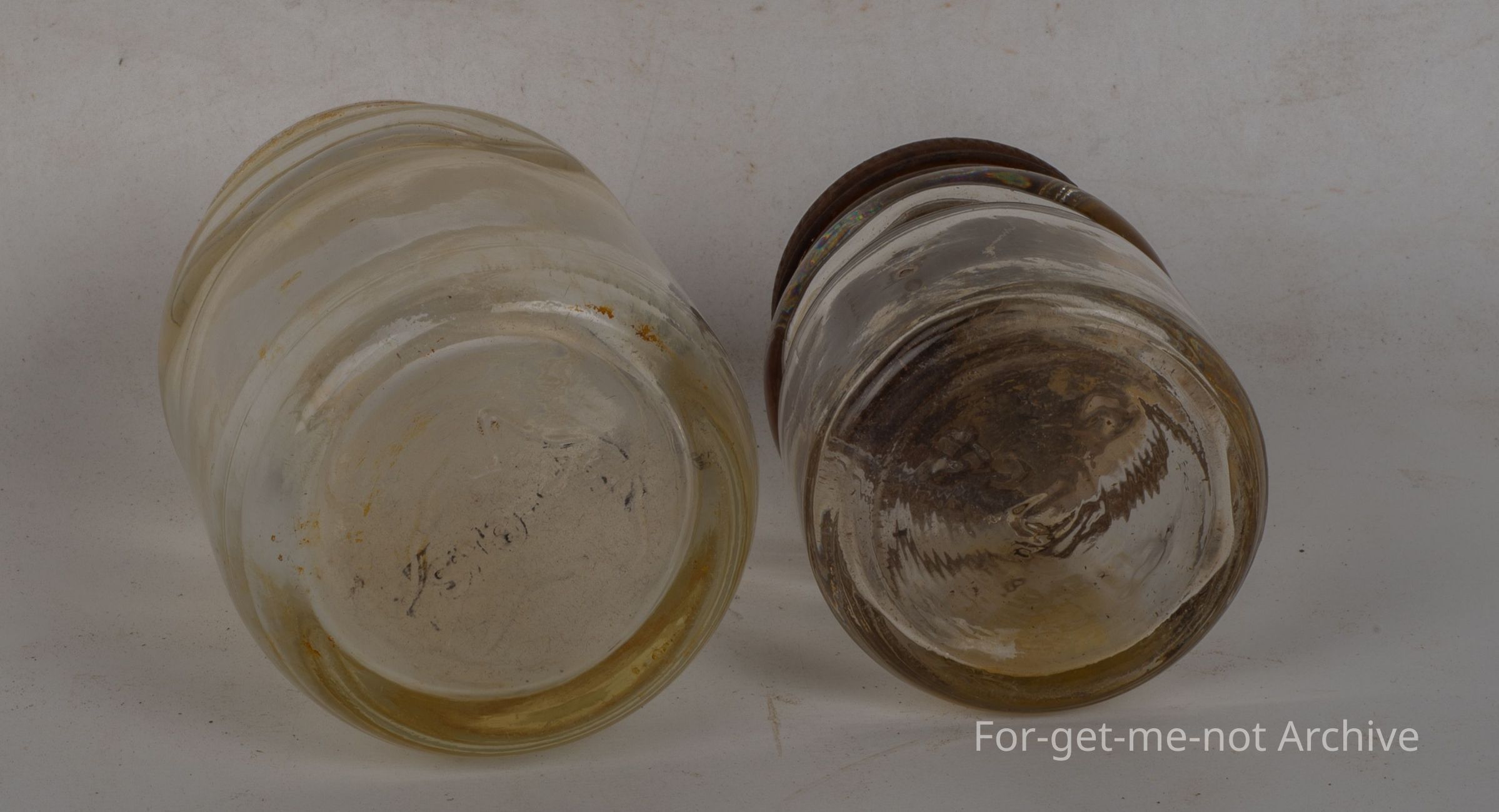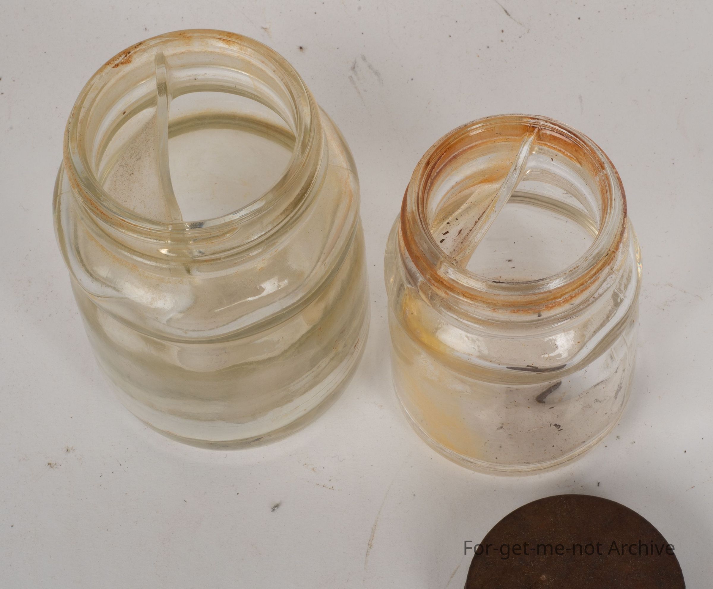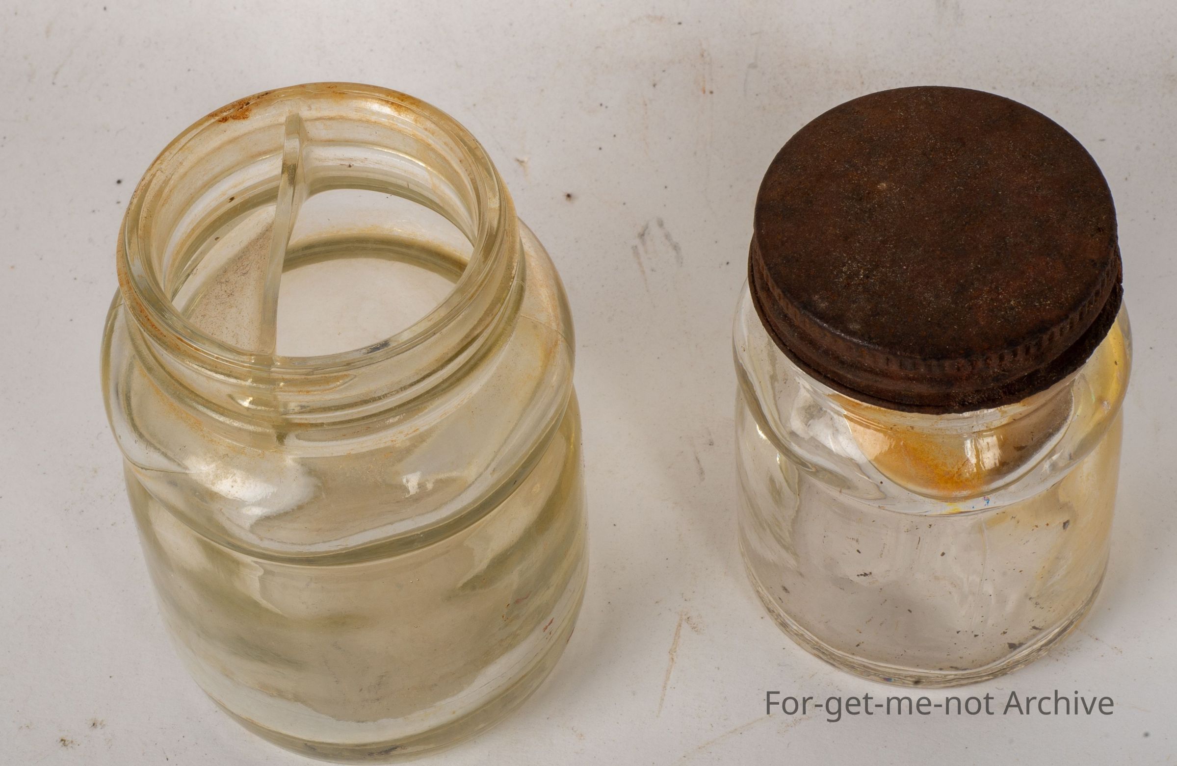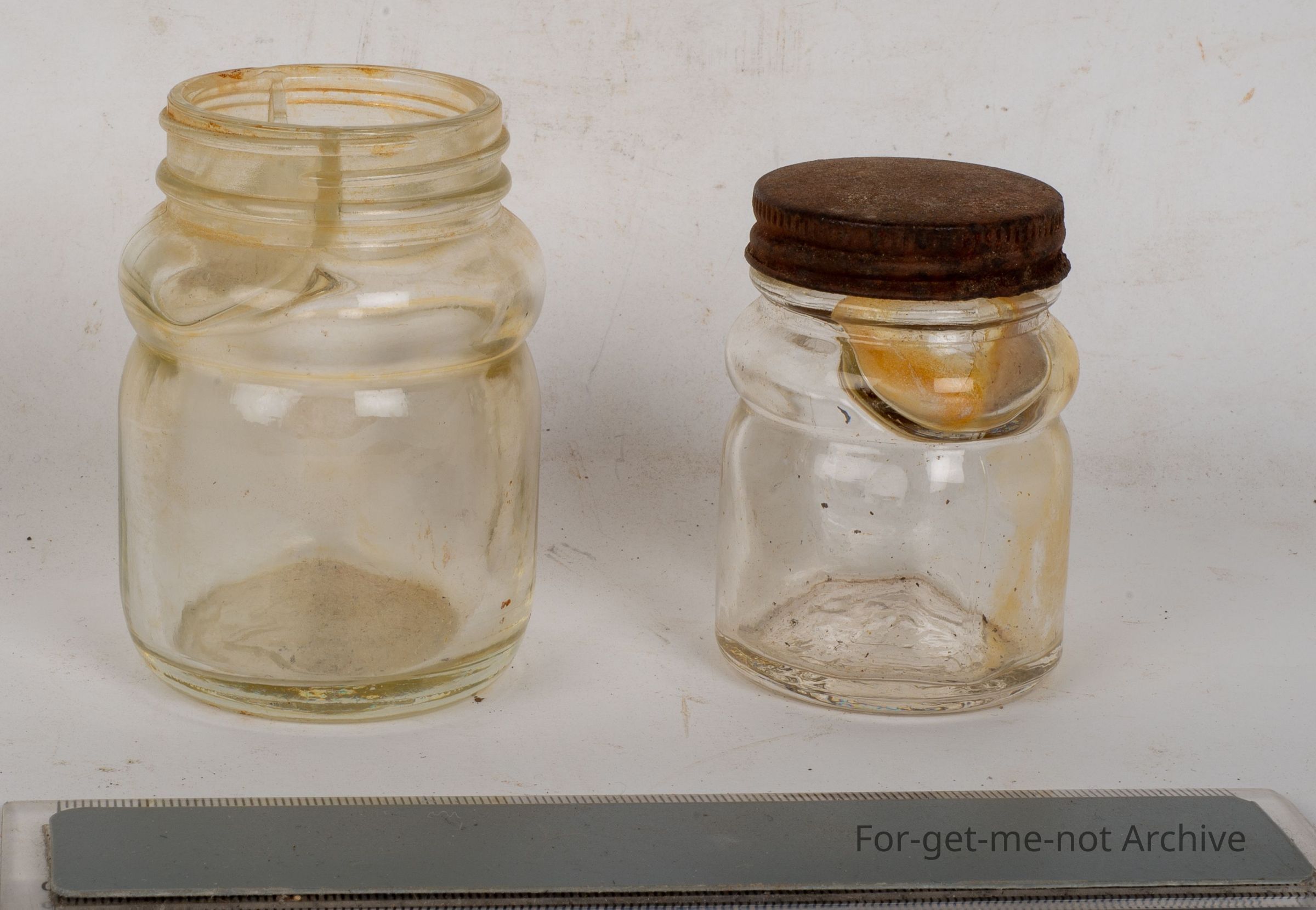 Two bottles different sizes that would have had screw top lids. The bottles also have a unique ink well built inti the inside of the bottles