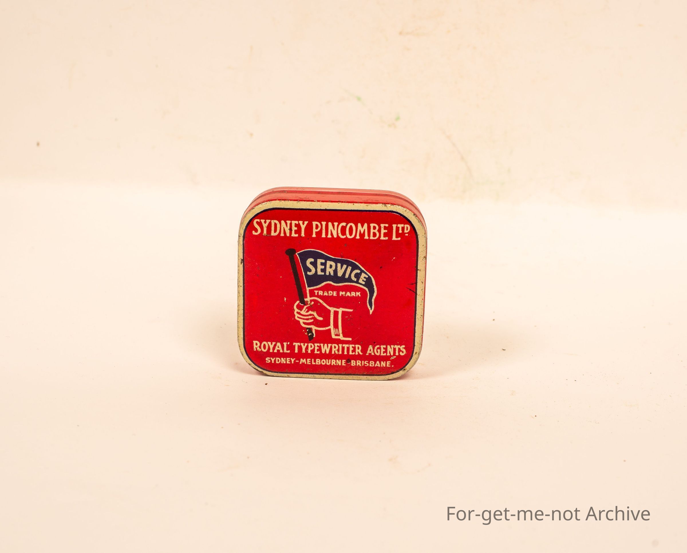 Typewriter tin, Sydney Pimpkin Service. Royal typewriter agents