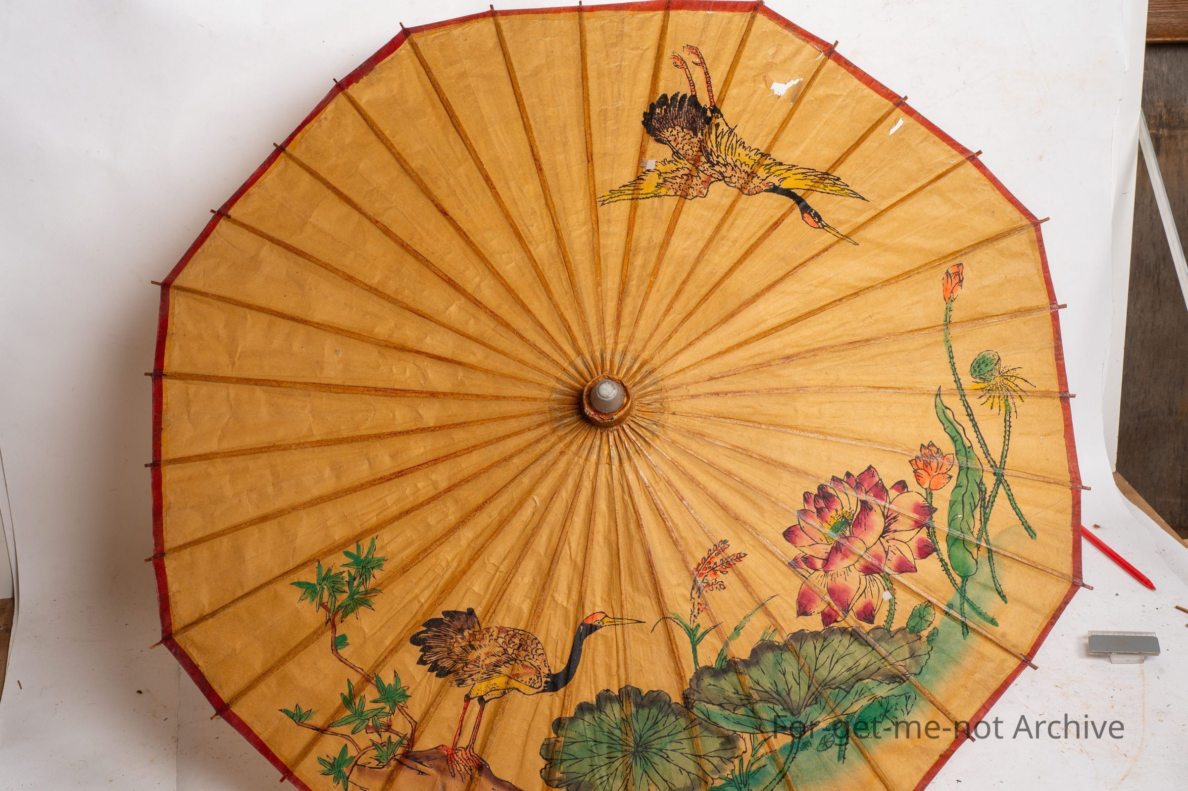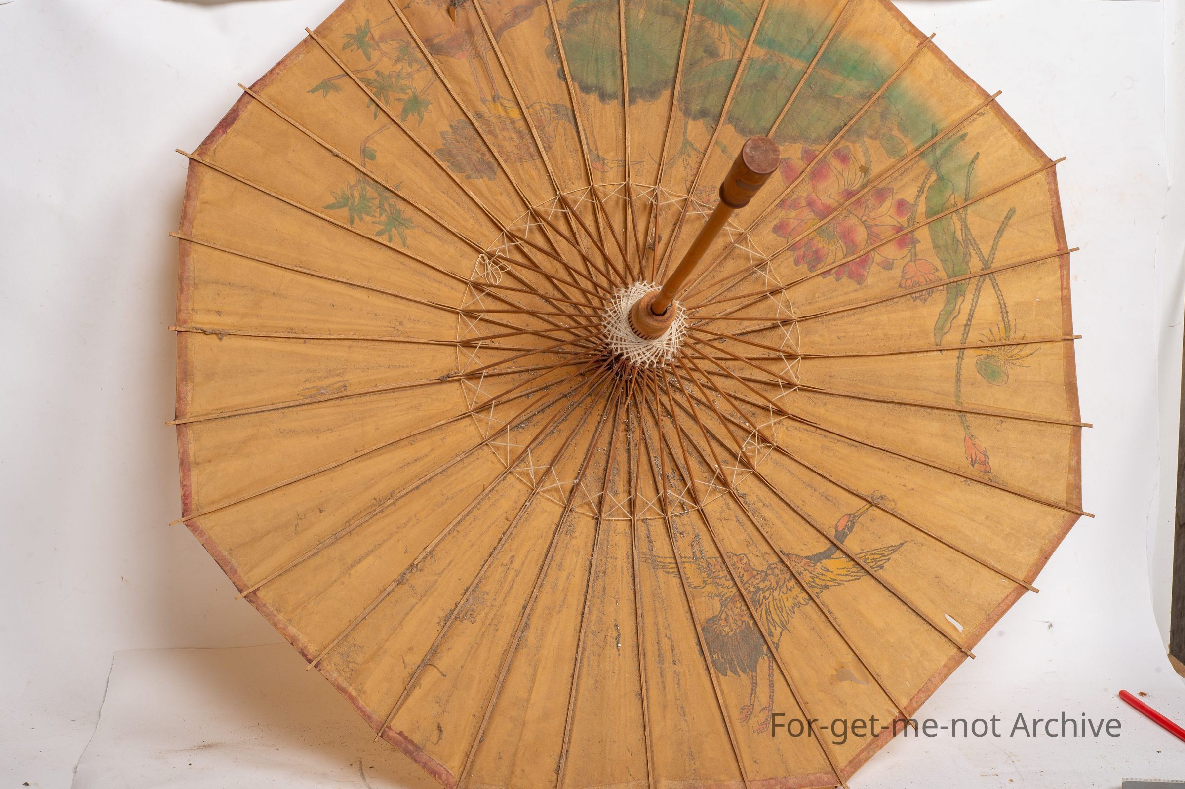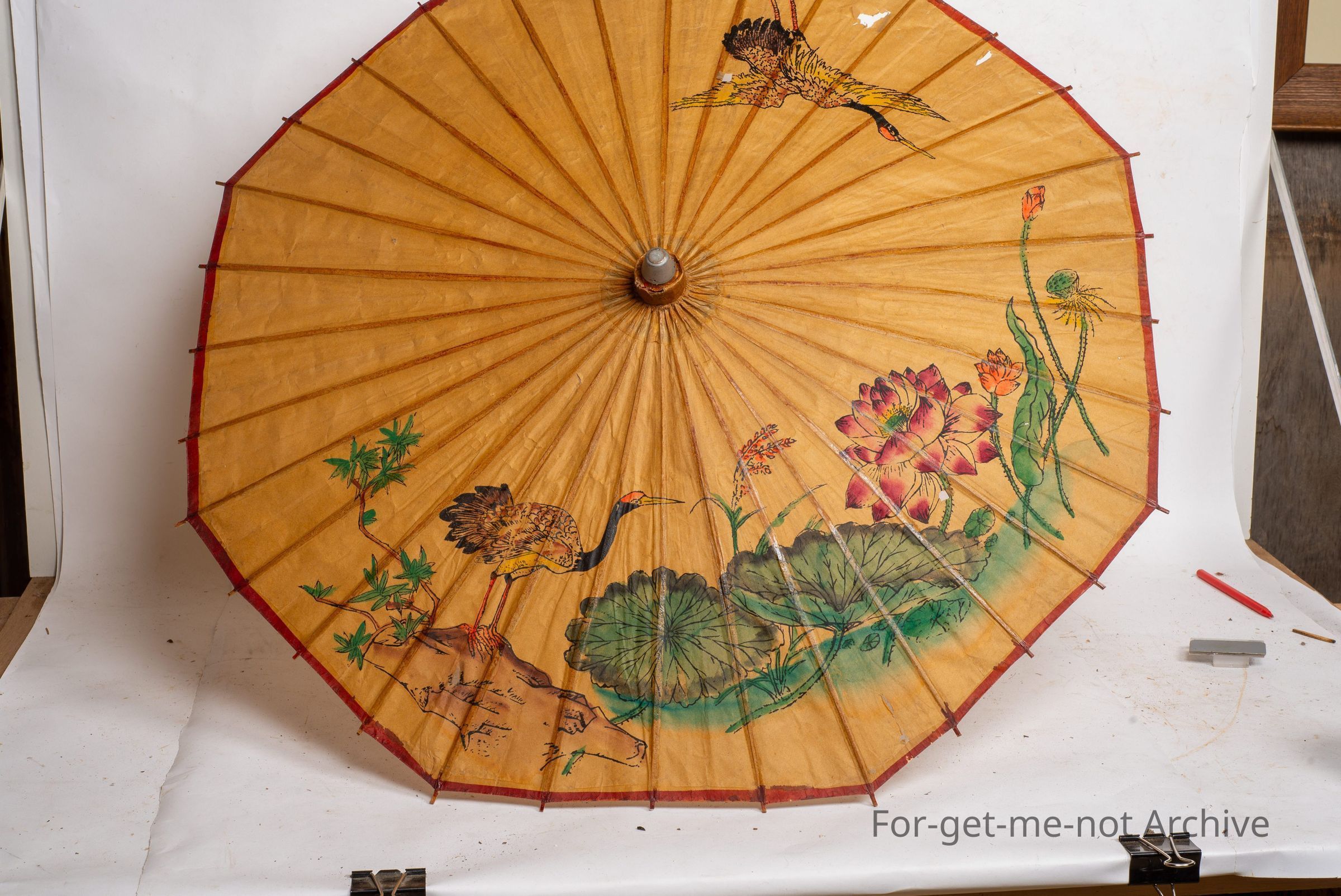 This is a beautiful handmade, possibly Japanese umbrella, all hand painted scenes right around the perimeter. Looks like handmade paper as well. A glorious piece of craftwork. This is a beautiful carved wooden double picture frame, floral design, very skilful, in excellent shape.Collection