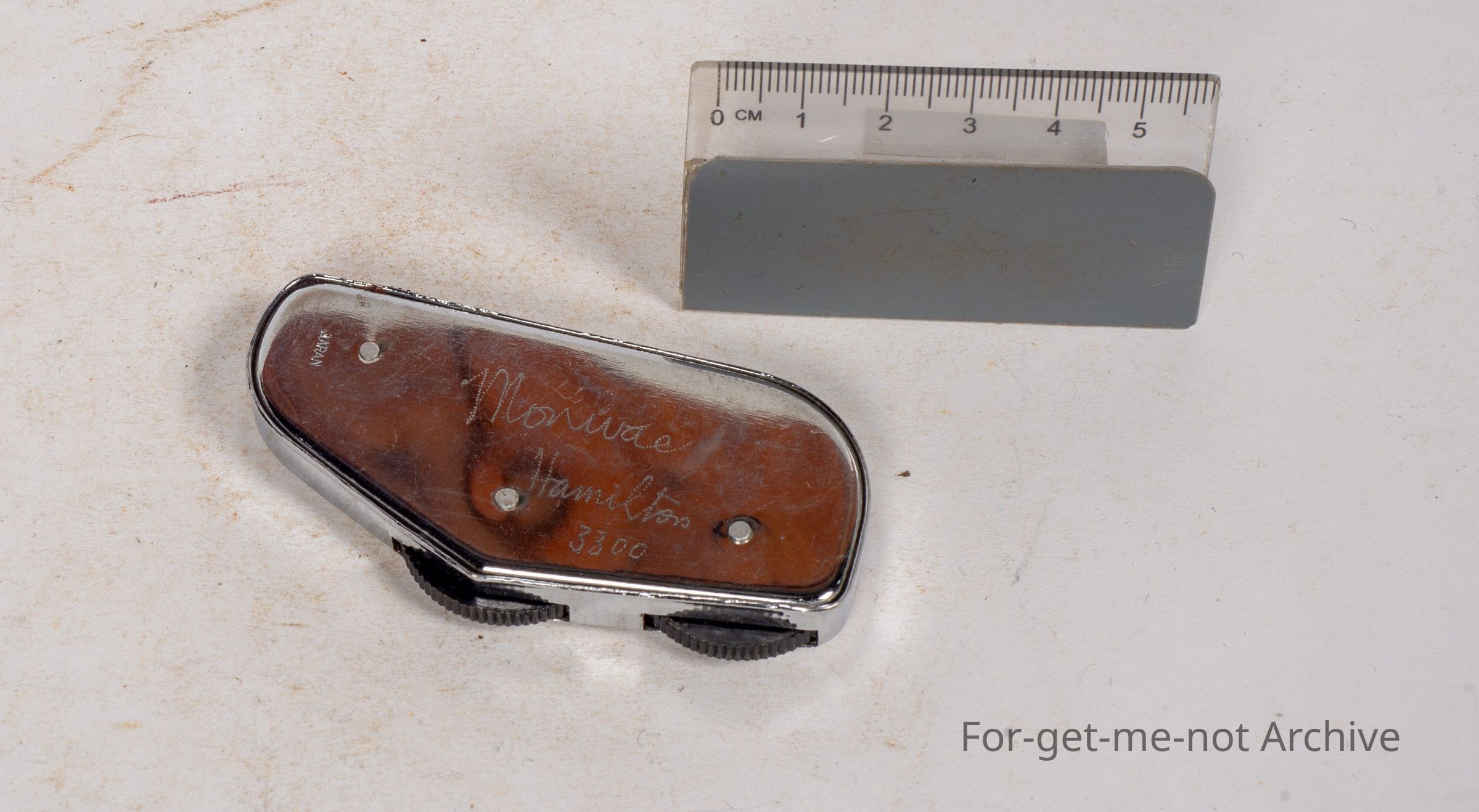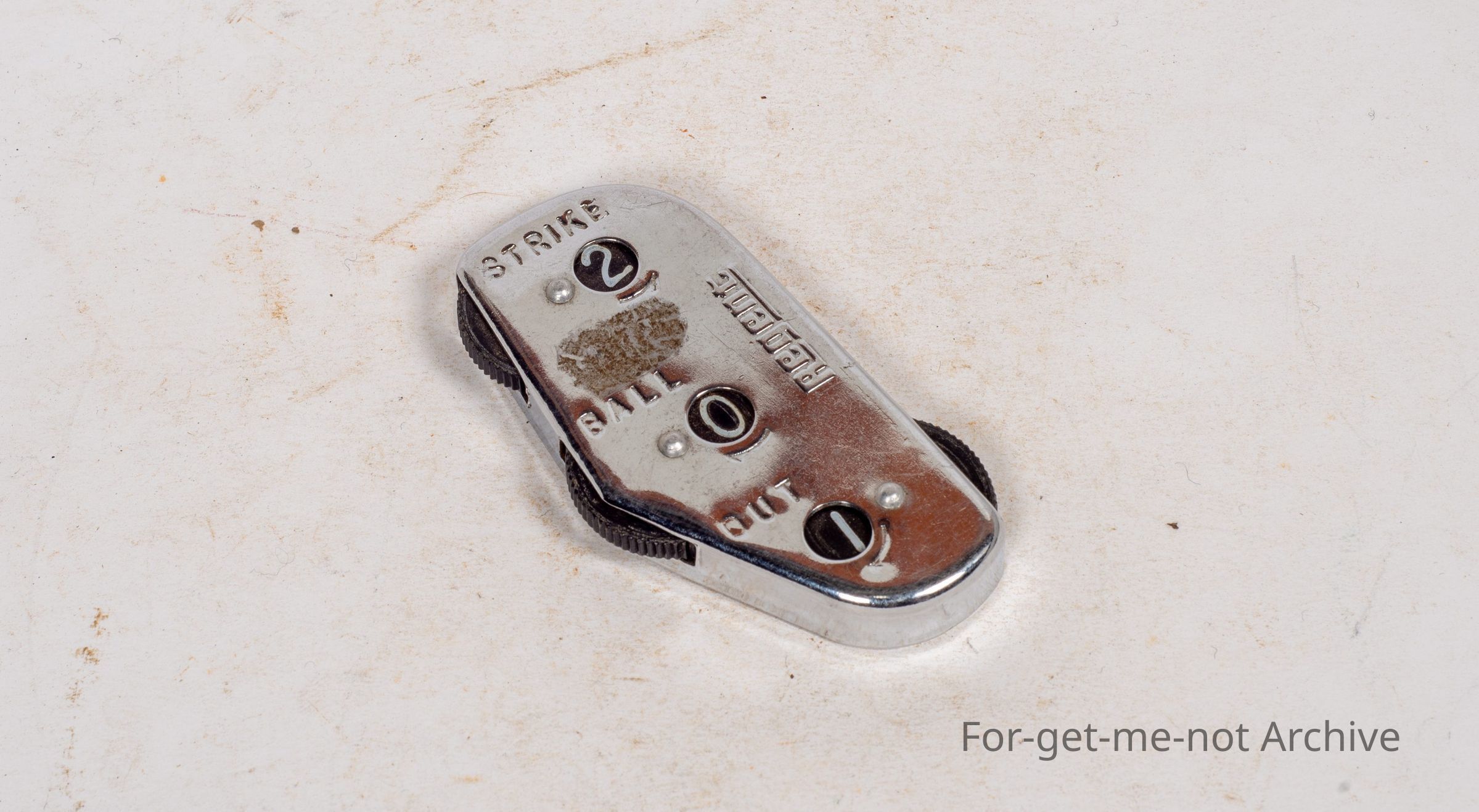Cricket related, another umpires, over counter, this one is metal with the stamping of the manufacturer as Regent. This one, etched on the back, has Monavae Hamilton. This has 3 wheels for the strike, the ball, and out.Collection