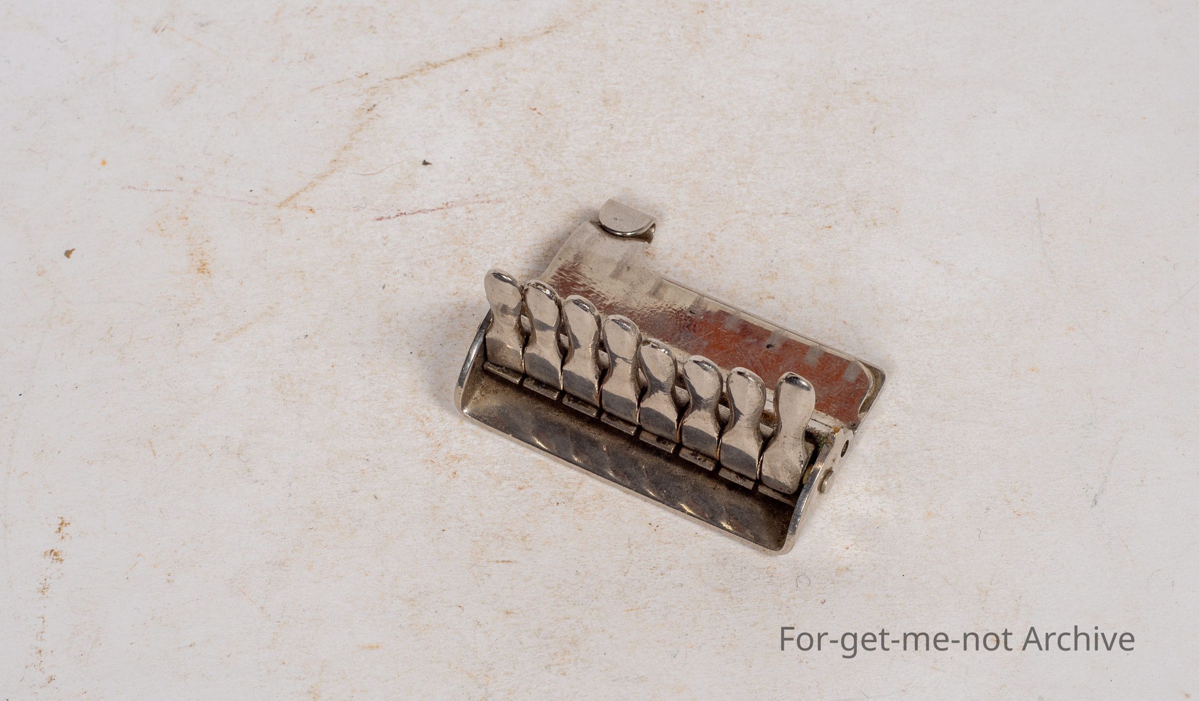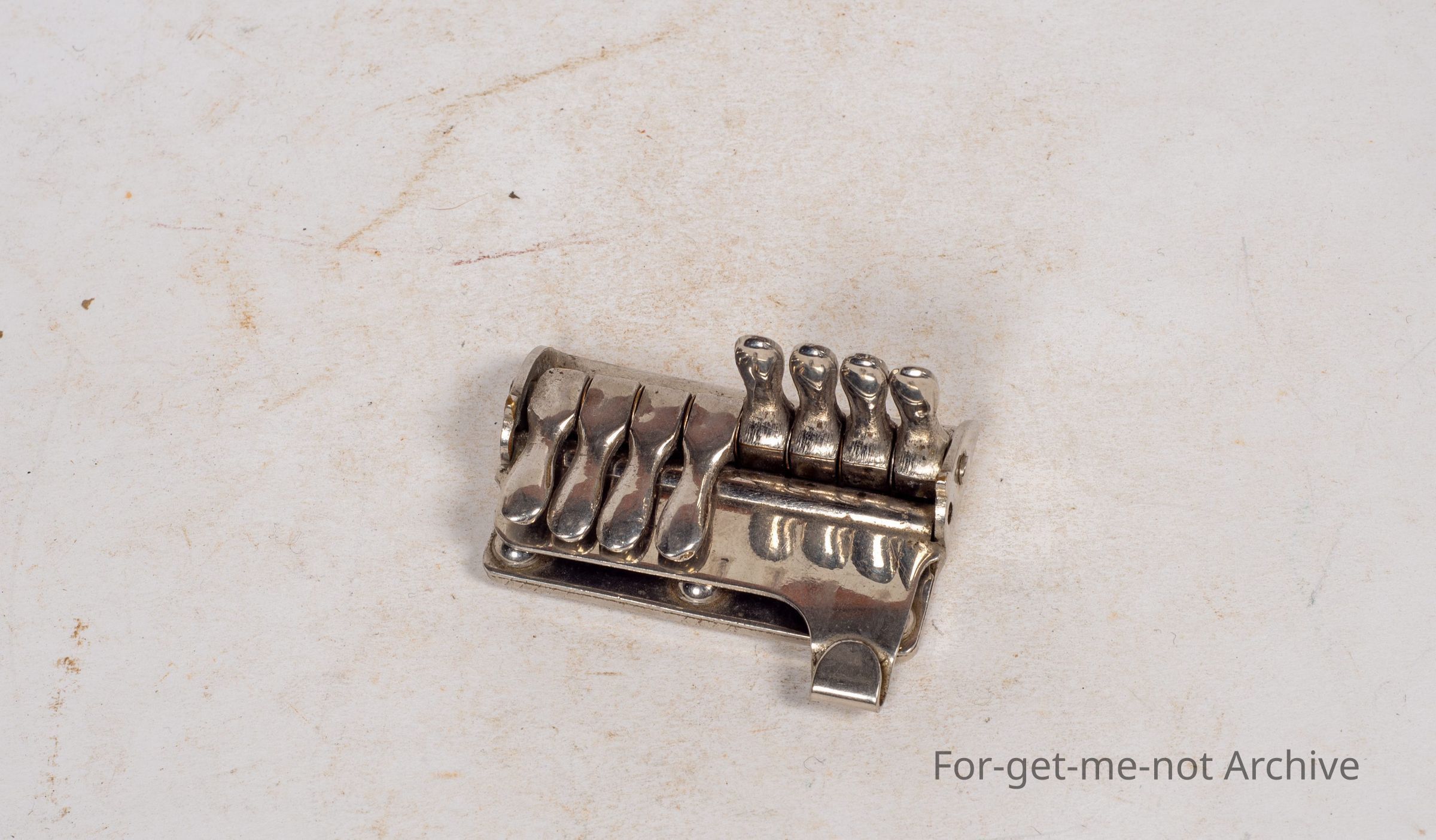 Cricket related. This is an unusual piece because this is, a scorekeeper's over counter which clamped onto the scorer's book. Quite often asked by the field umpire as to where they're up to if he forgot. This this is quite an unusual piece. all nickel plated with the 8 levers for each ball and the clamp part to clamp it onto the score book. A very unusual piece of cricket memorabilia.Collection