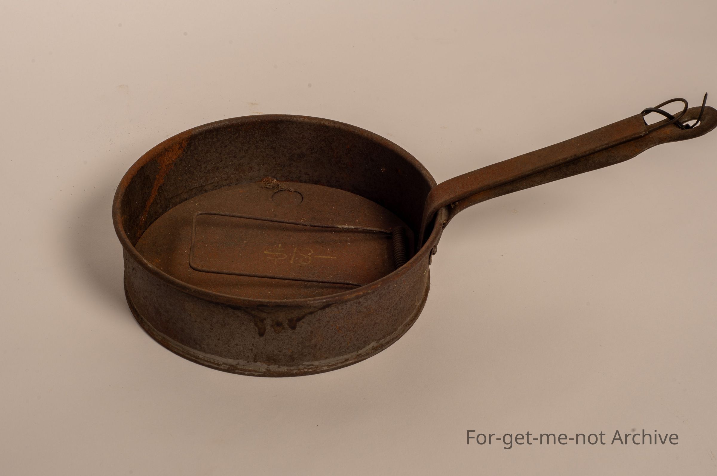 This is a tin, a lightly built tin cooker. It has a spring loaded top in it. Not really certain what it's been made for.