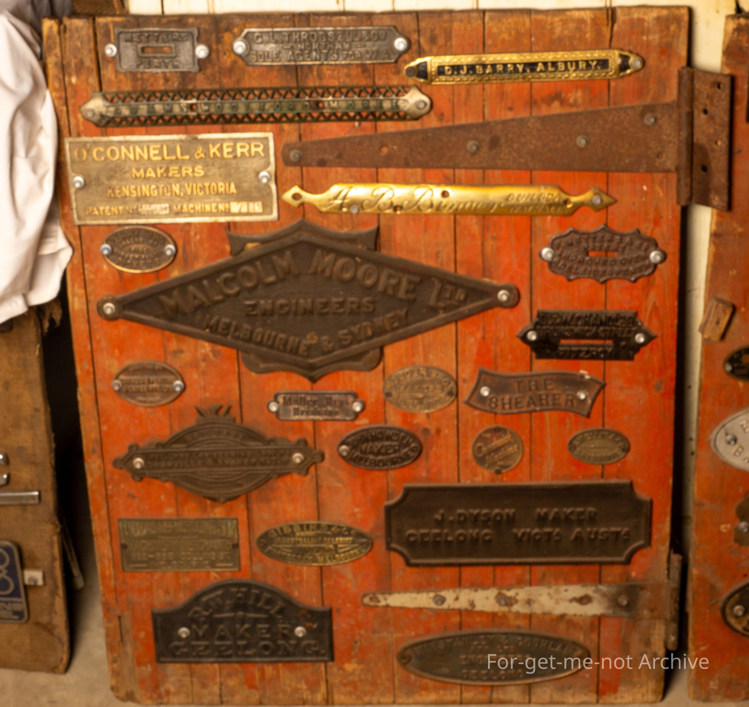 This is a board of various plates from buggy plates to nameplates, 23 in total